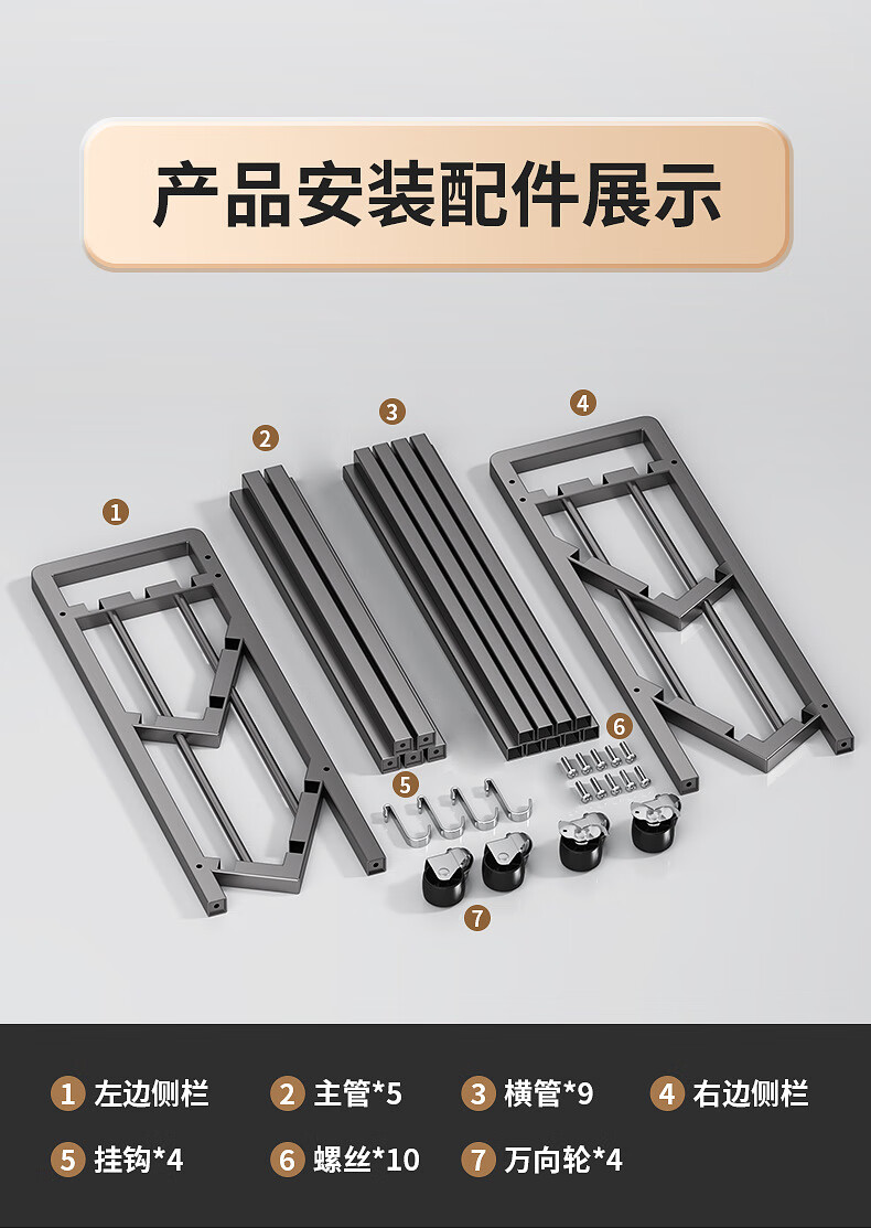 枫尚晾衣架落地伸缩晾衣杆免装折叠晒被架加厚铝合金阳台衣架落地立式