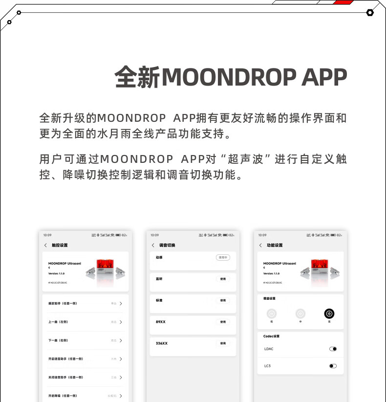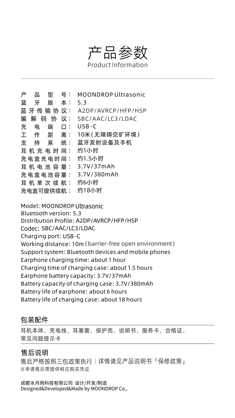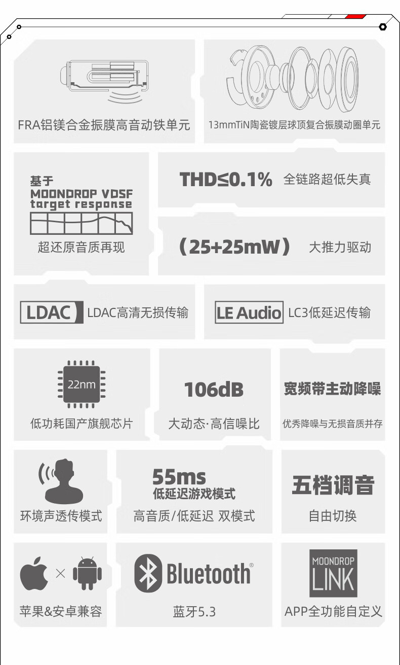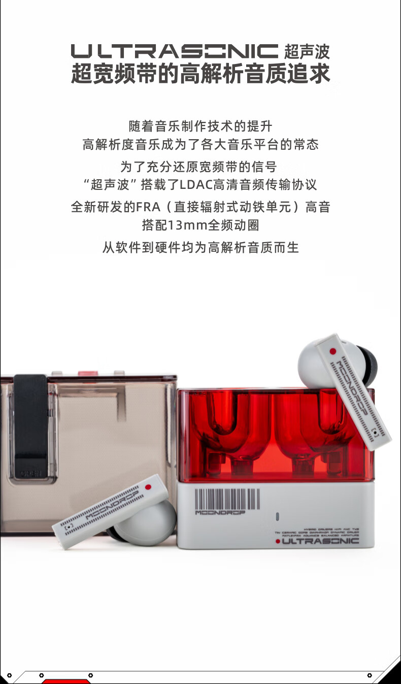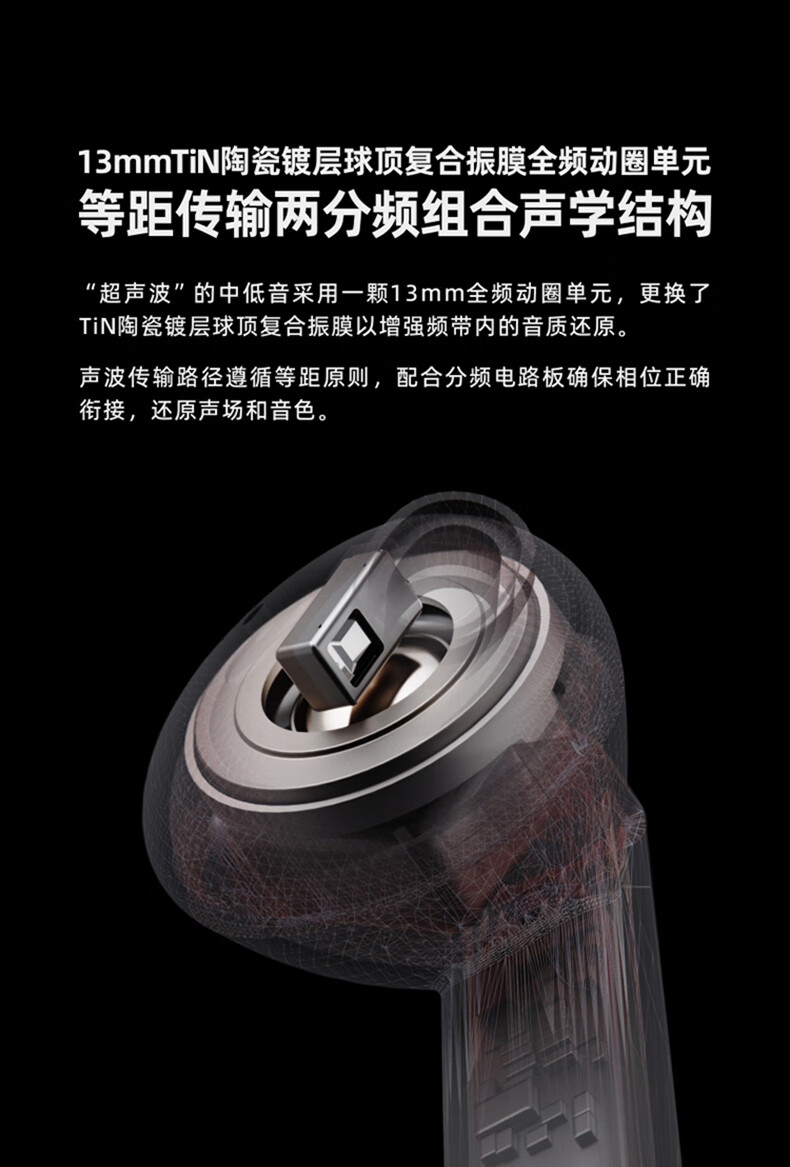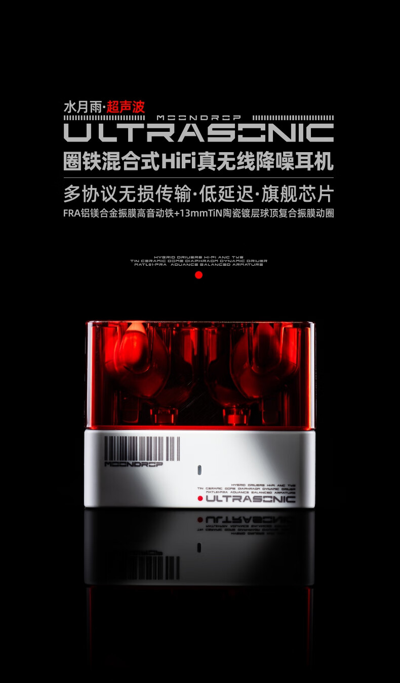 水月雨超声波UltraSonic 圈铁混合式HIFI真无线蓝牙5.3主动降噪耳机运动游戏耳塞 超声波
