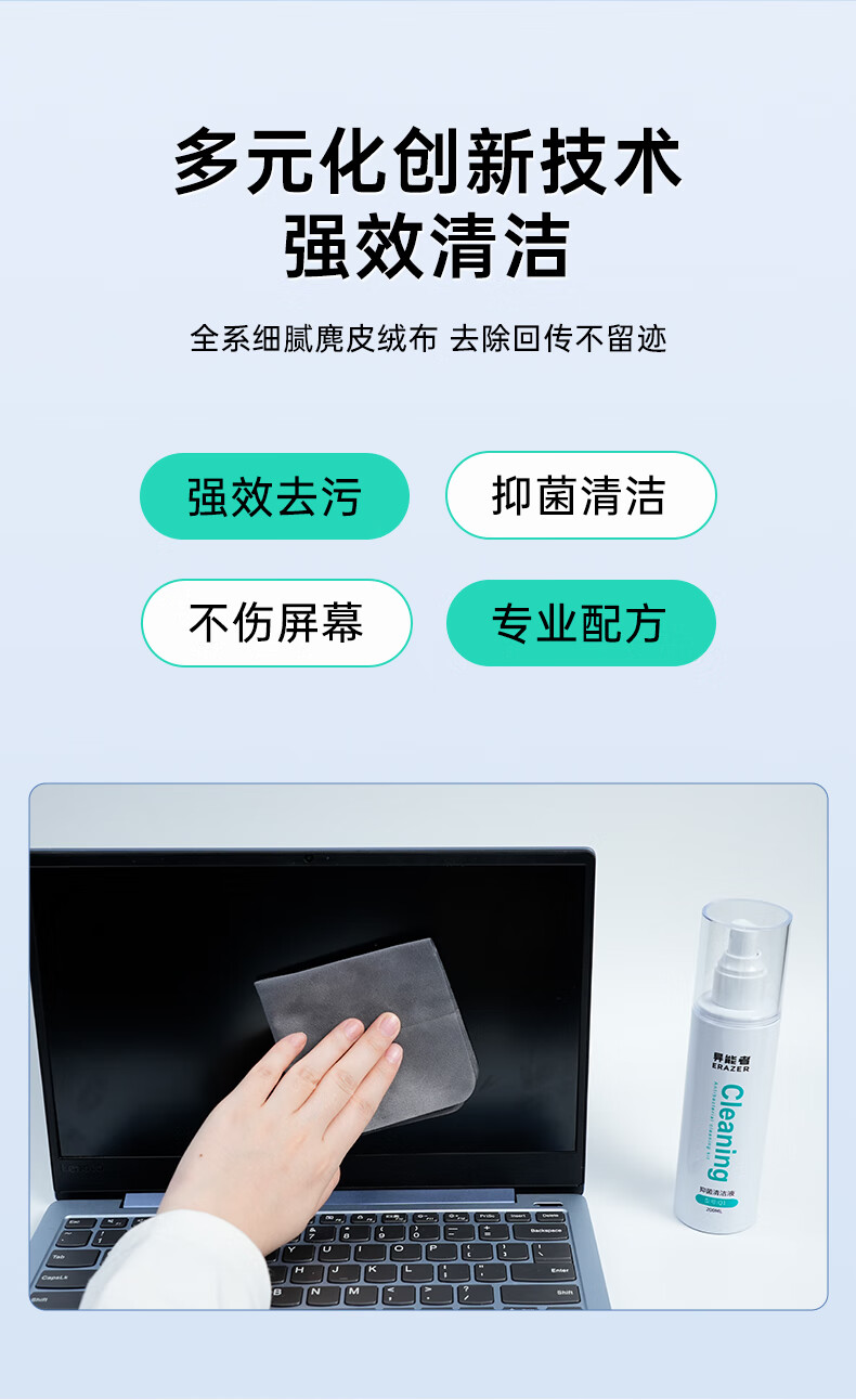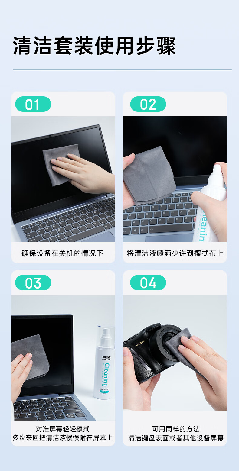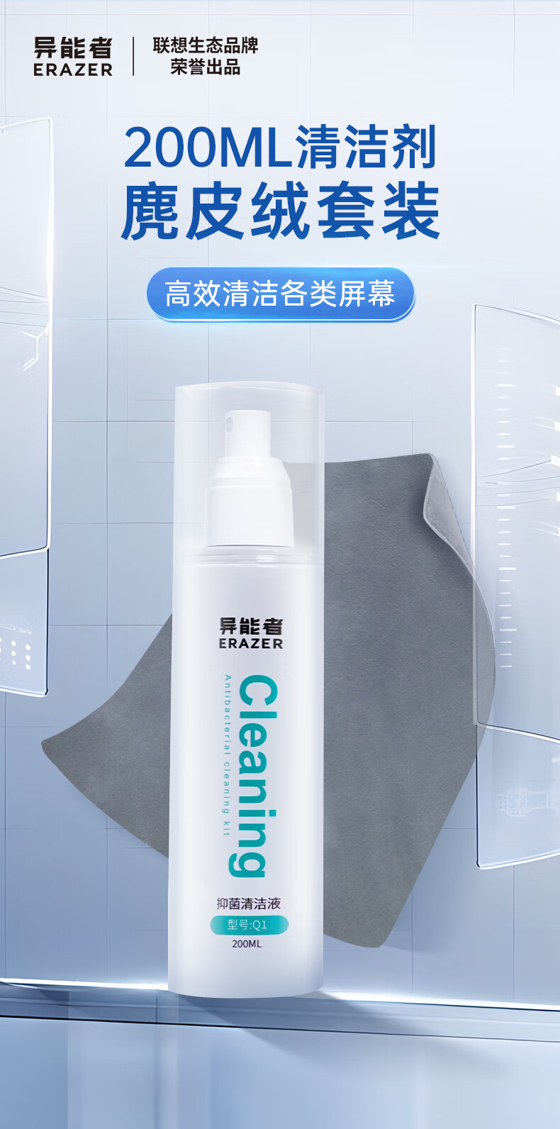 联想生态品牌异能者笔记本电脑抑菌清洁剂鹿绒布套装擦拭布手机平板显示器液晶电视眼镜专用清洁液喷雾