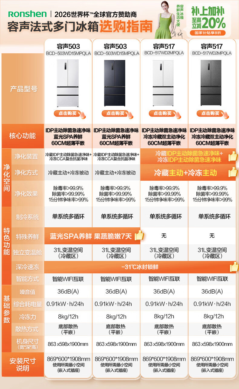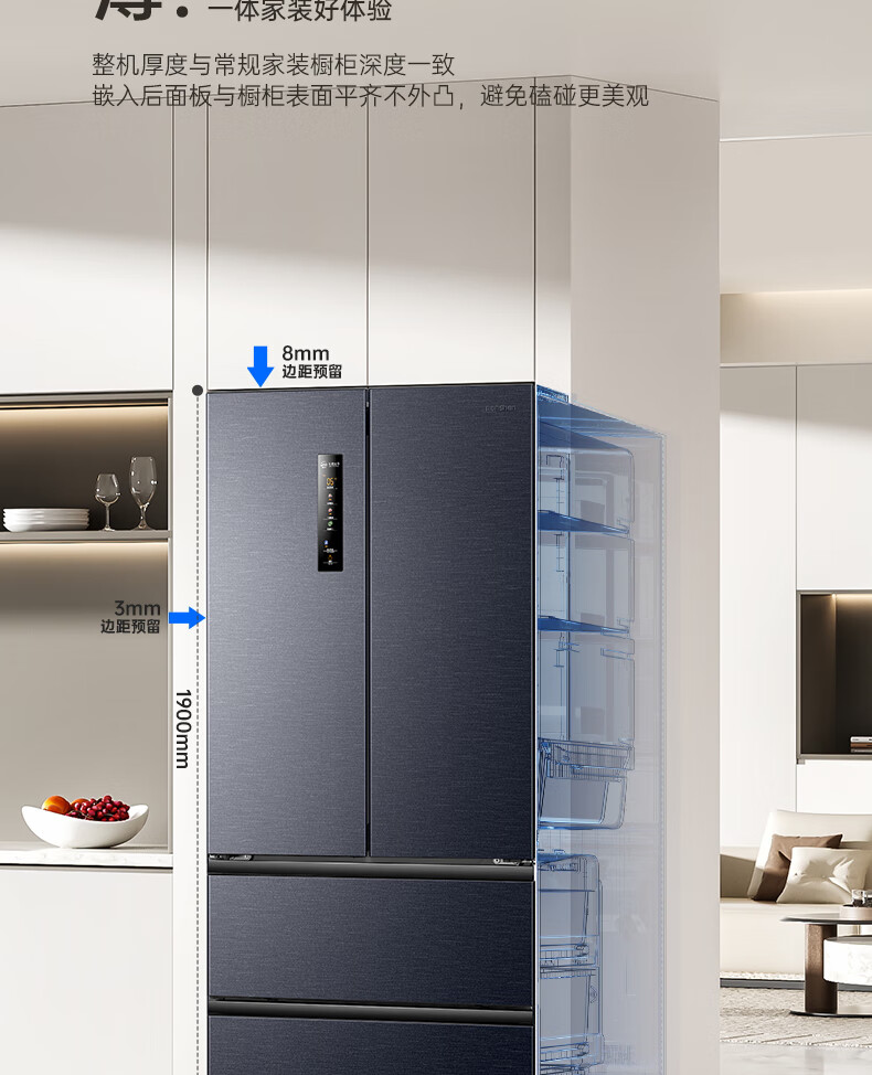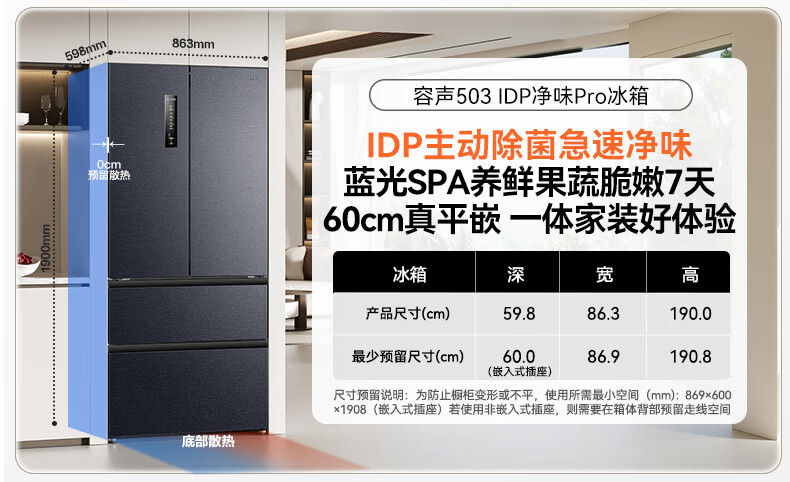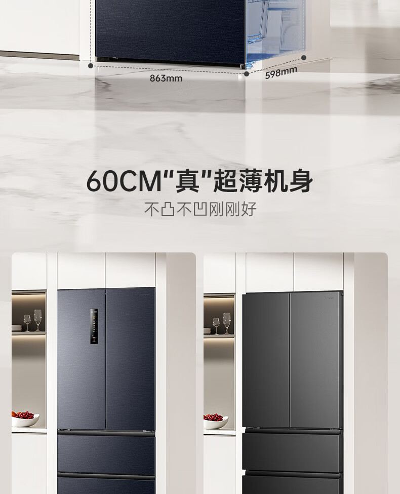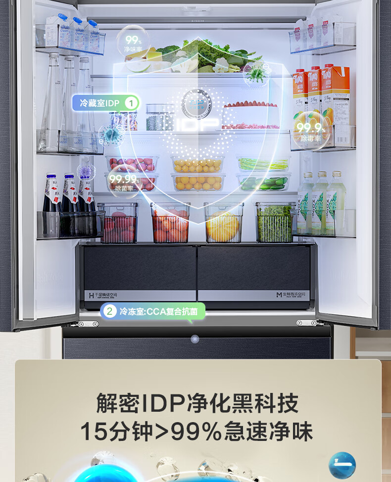 容声IDP净味503pro法式多门四开门超薄零嵌入式电冰箱家用一级节能效无霜国家补贴BCD-503WD15MPQLA灰