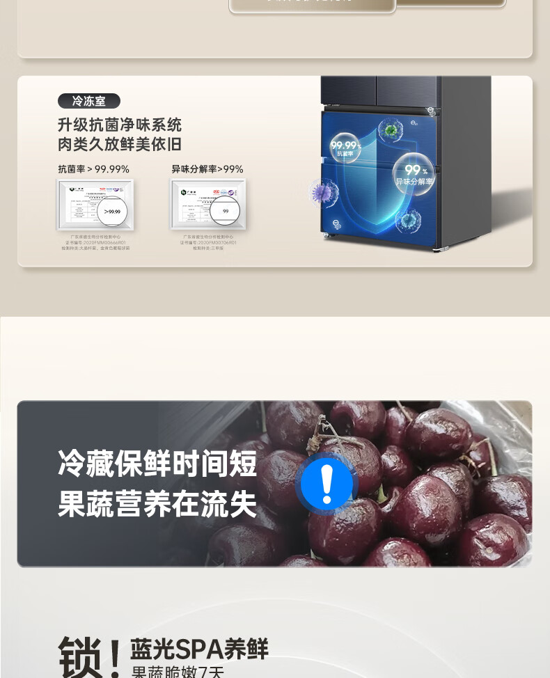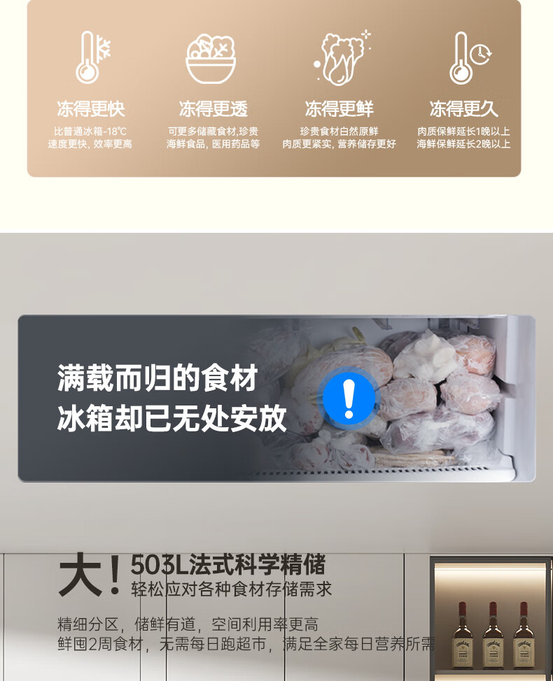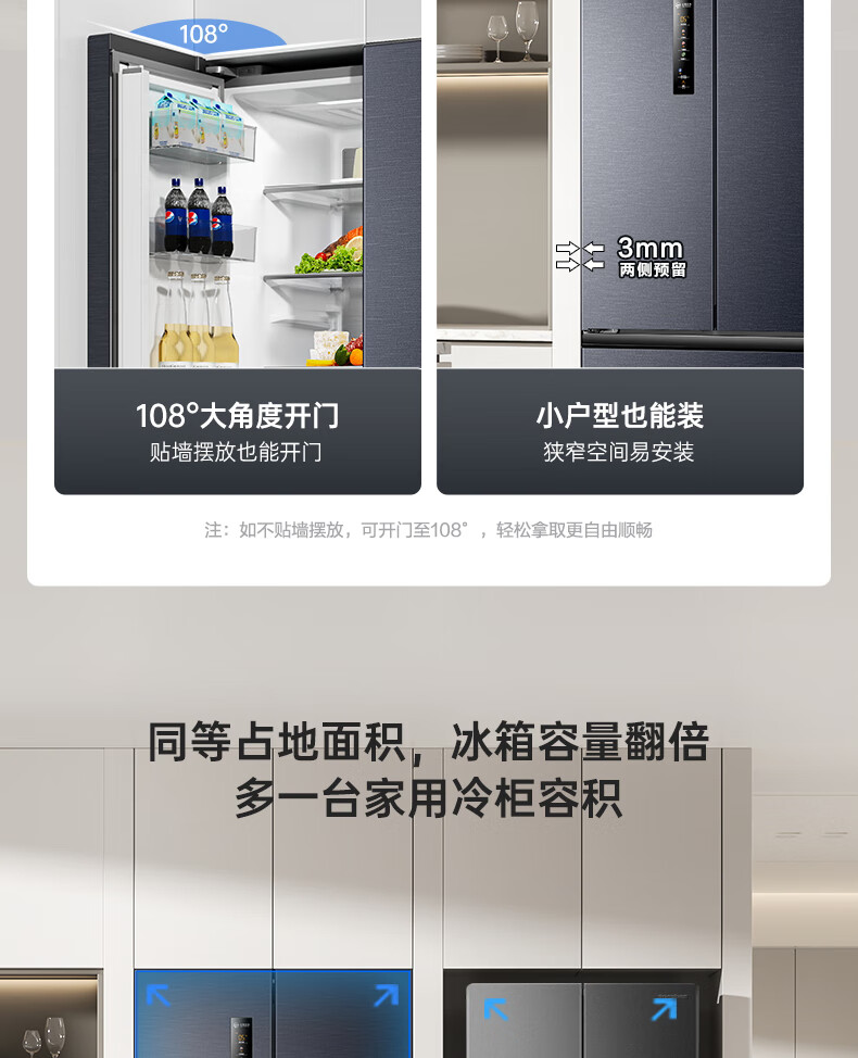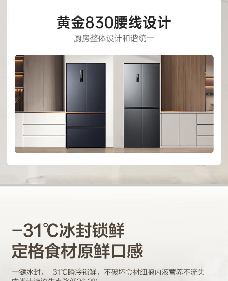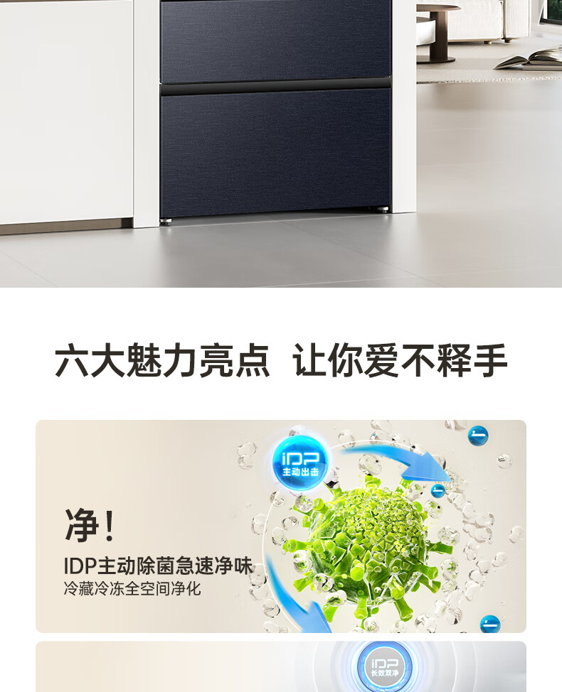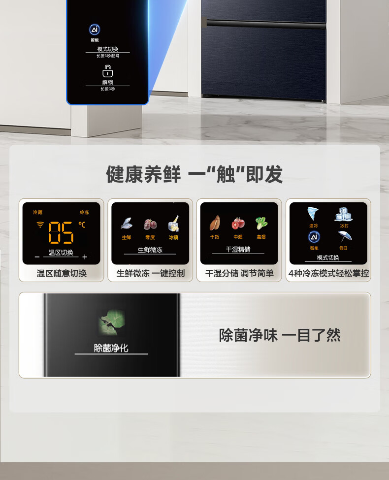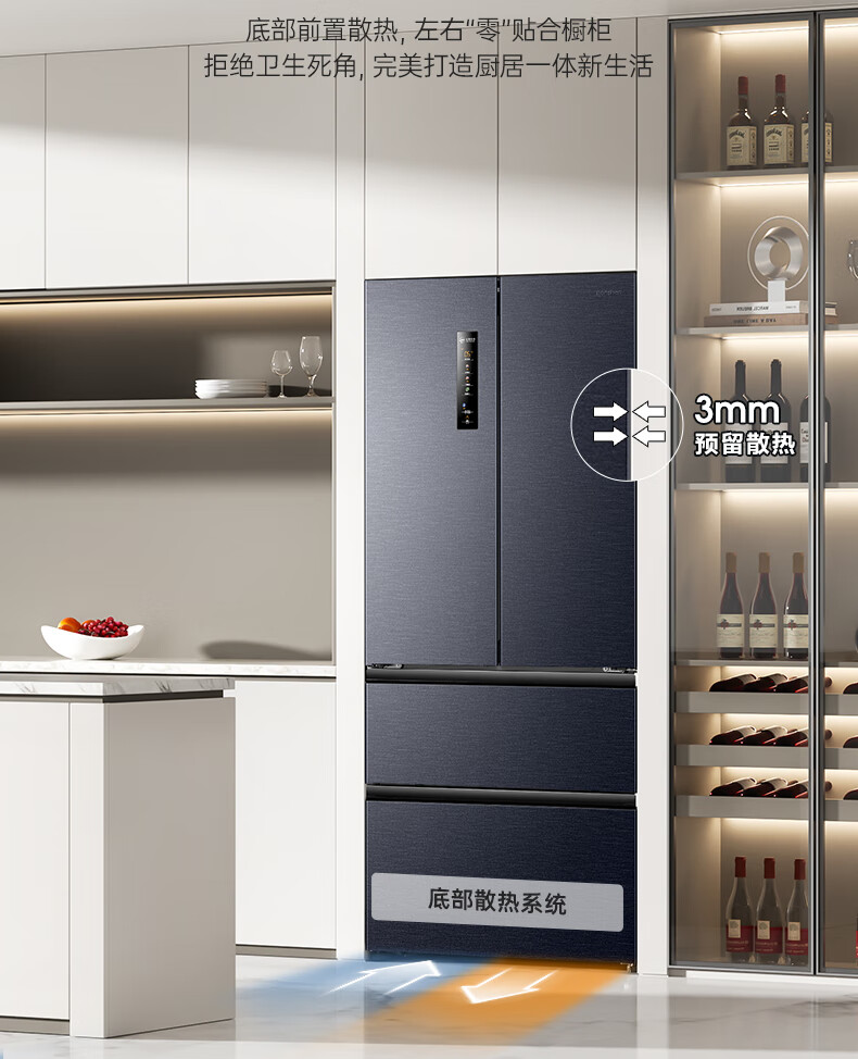 统帅(Leader)海尔出品三门三温三开门家用电冰箱218升 一级双变频风冷无霜黑金净化宿舍租房办公室国家补贴20% 【省电王】2天仅约1度电 冰箱