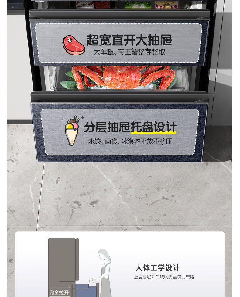 海尔(Haier)国家补贴20%太白310升风冷无霜黑金净化三档变温抽屉式三开门家用电冰箱一级能效节能变温以旧换新 【咨询领补贴】BCD-310WGHD3E7WV