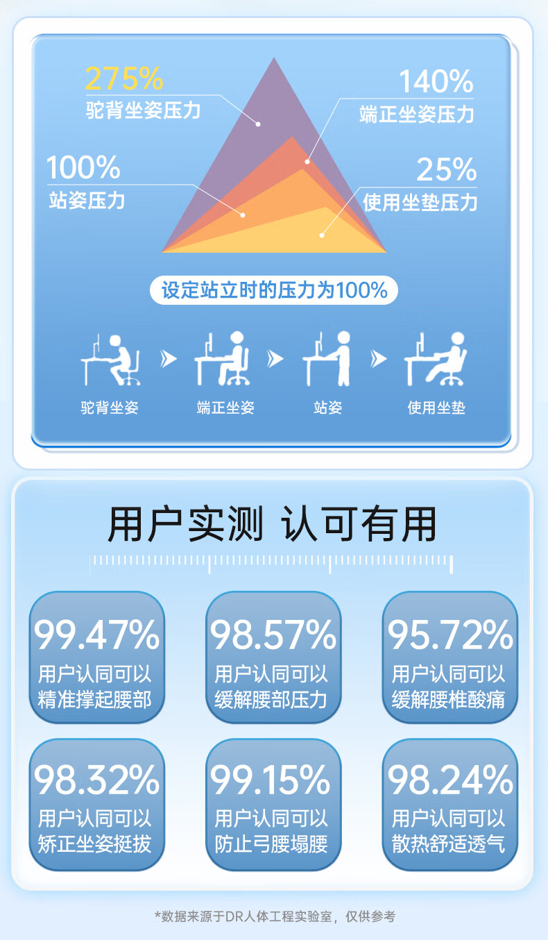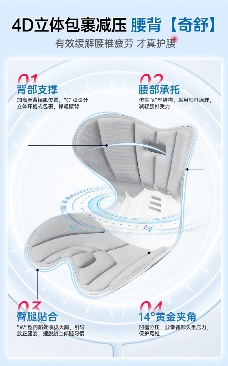 DR.SCT护腰坐垫人体工学久坐椅神器护腰支撑靠背垫腰托哺乳驼背矫坐姿F1