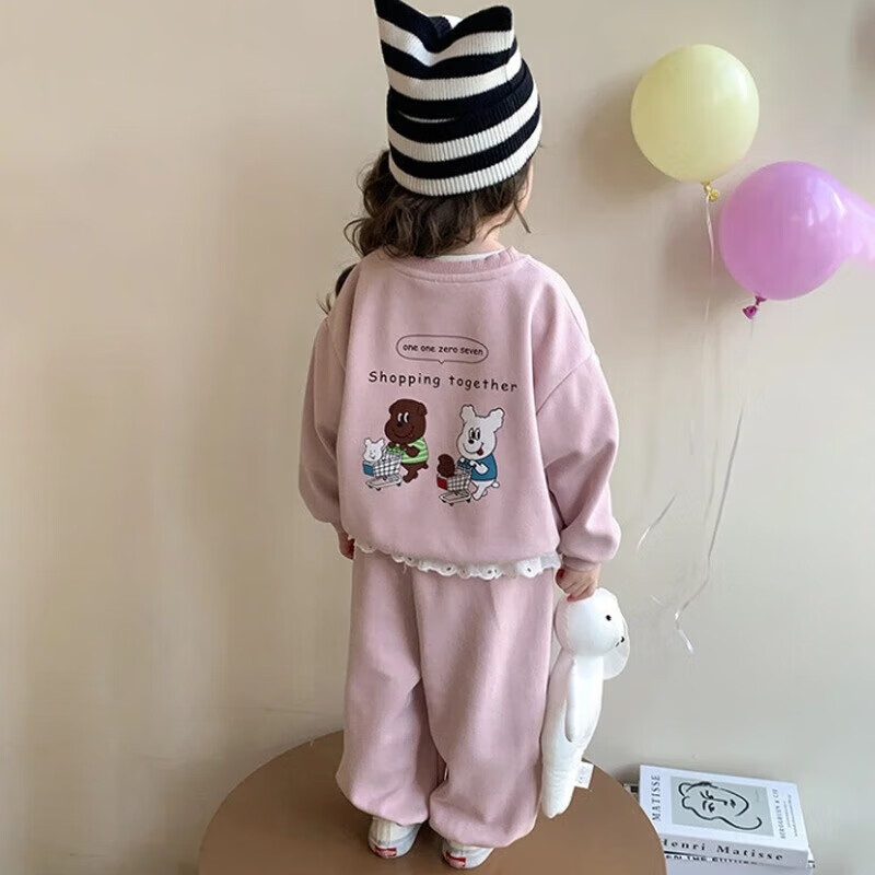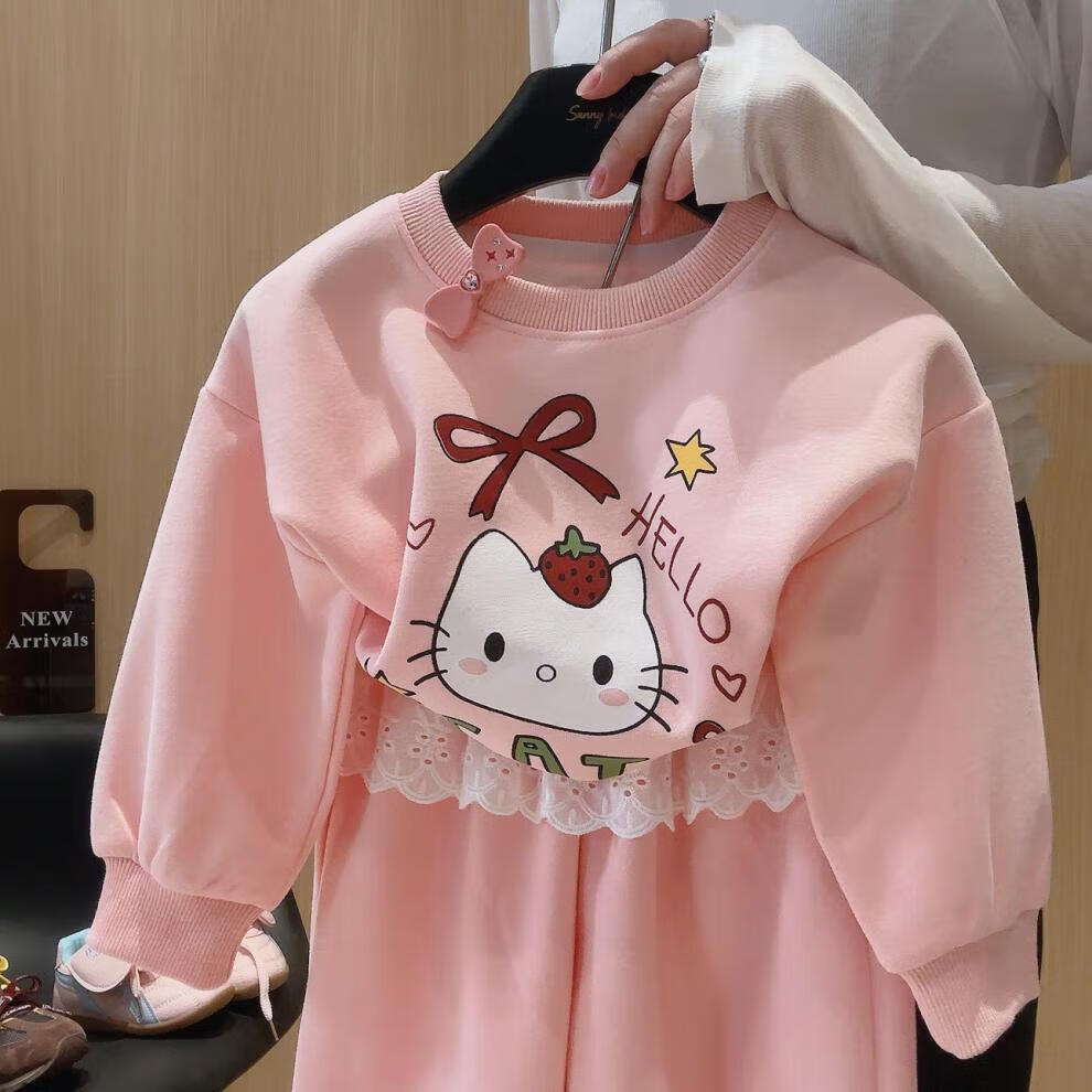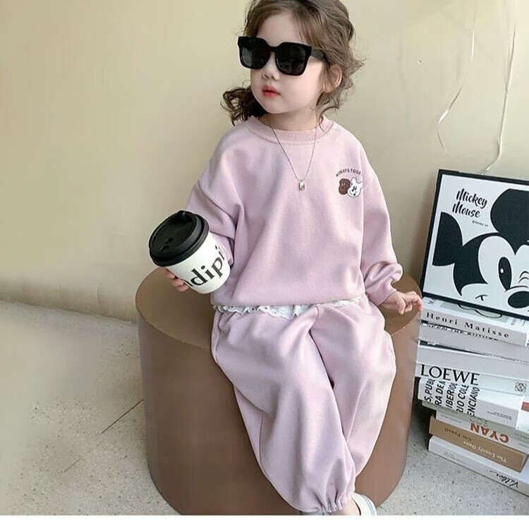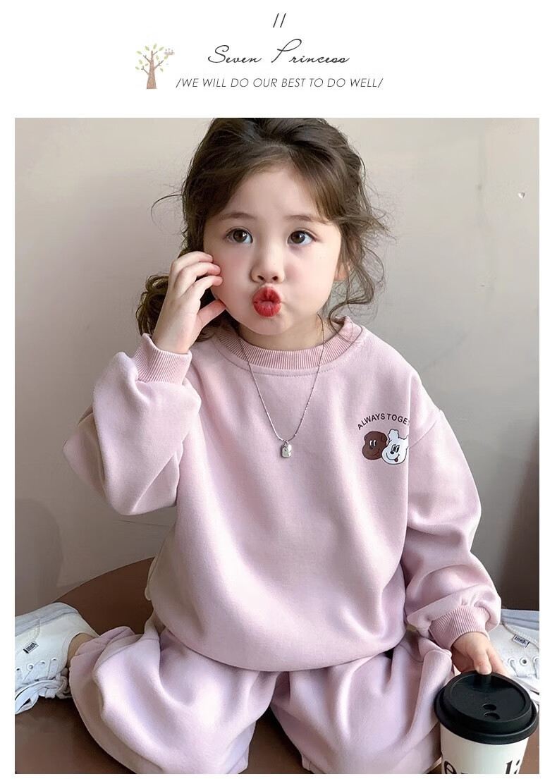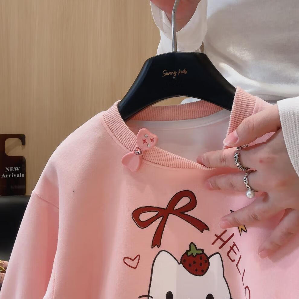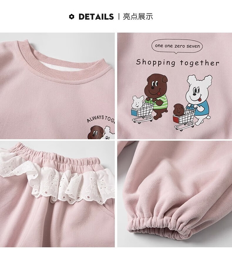 小猪班纳(PEPCO)女童卫衣套装可爱卡通印花秋季新款儿童洋气秋装宝宝屁帘裤两件套 KB双狗印花套装-粉色 130 (建议身高115-125cm)