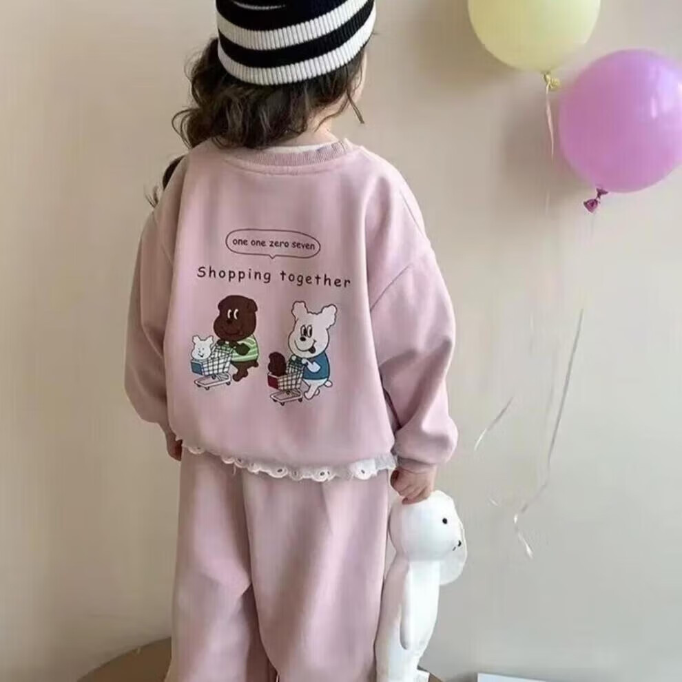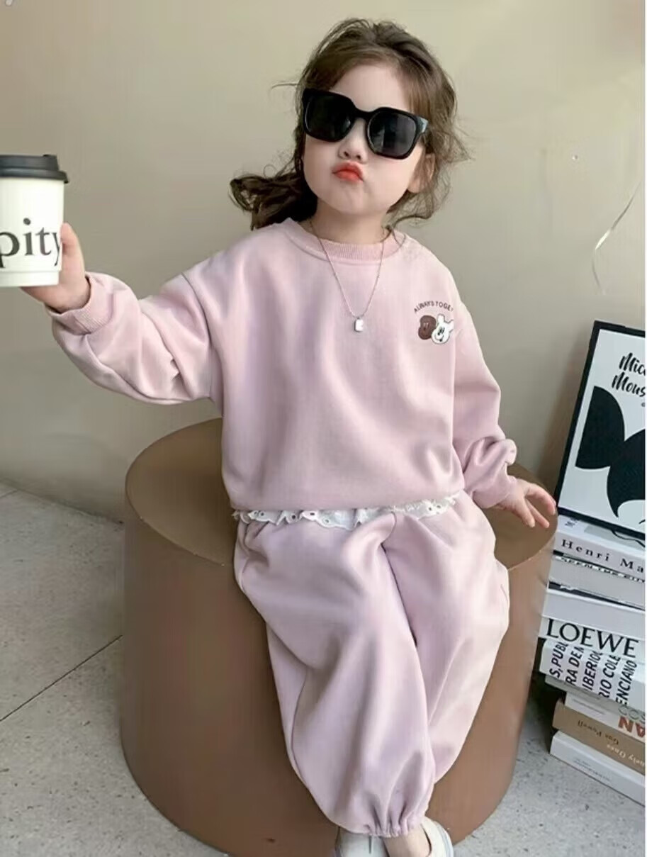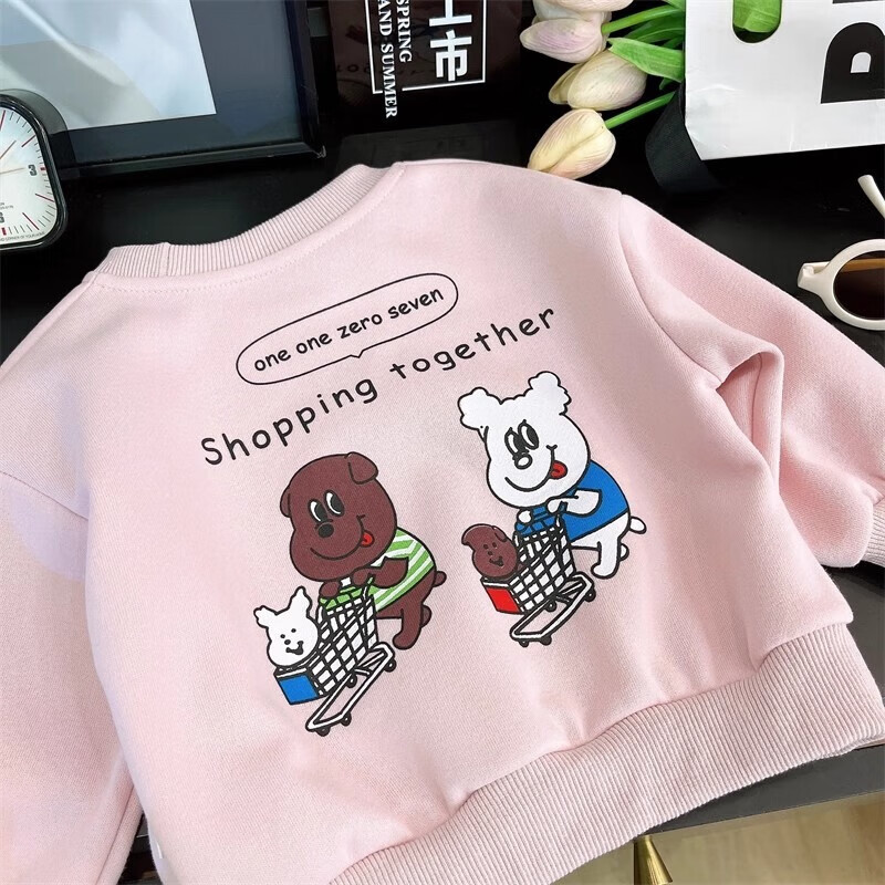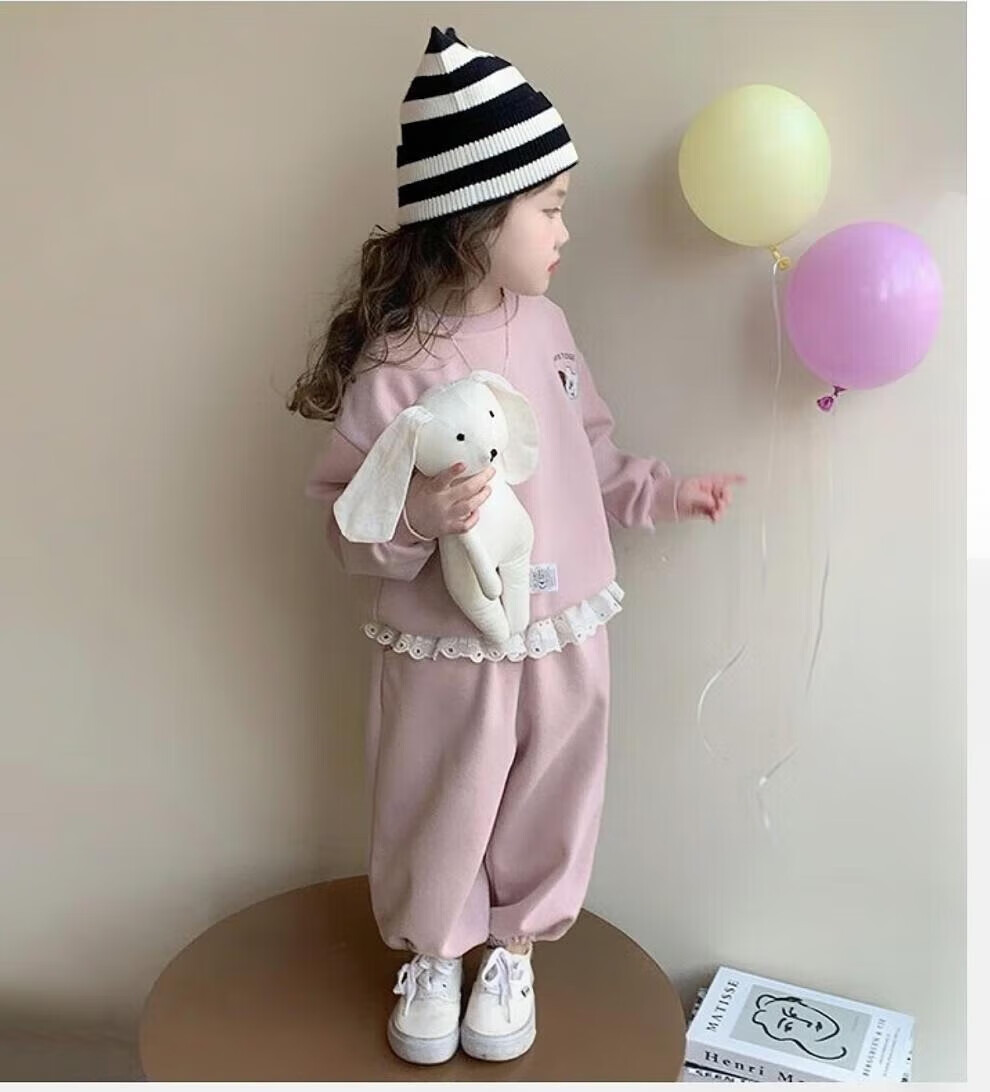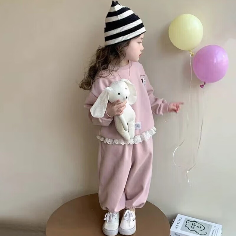 小猪班纳(PEPCO)女童卫衣套装可爱卡通印花秋季新款儿童洋气秋装宝宝屁帘裤两件套 KB双狗印花套装-粉色 130 (建议身高115-125cm)