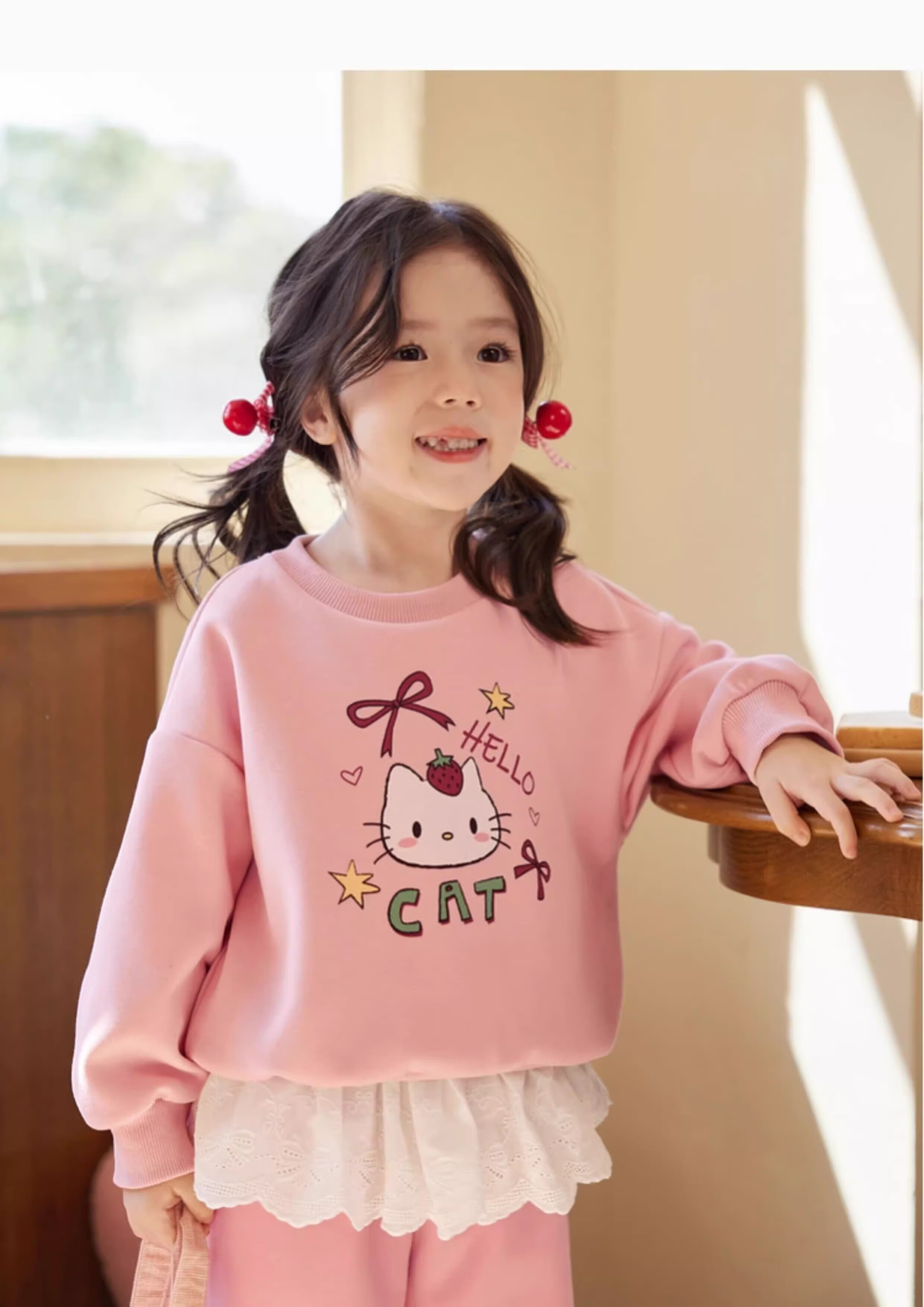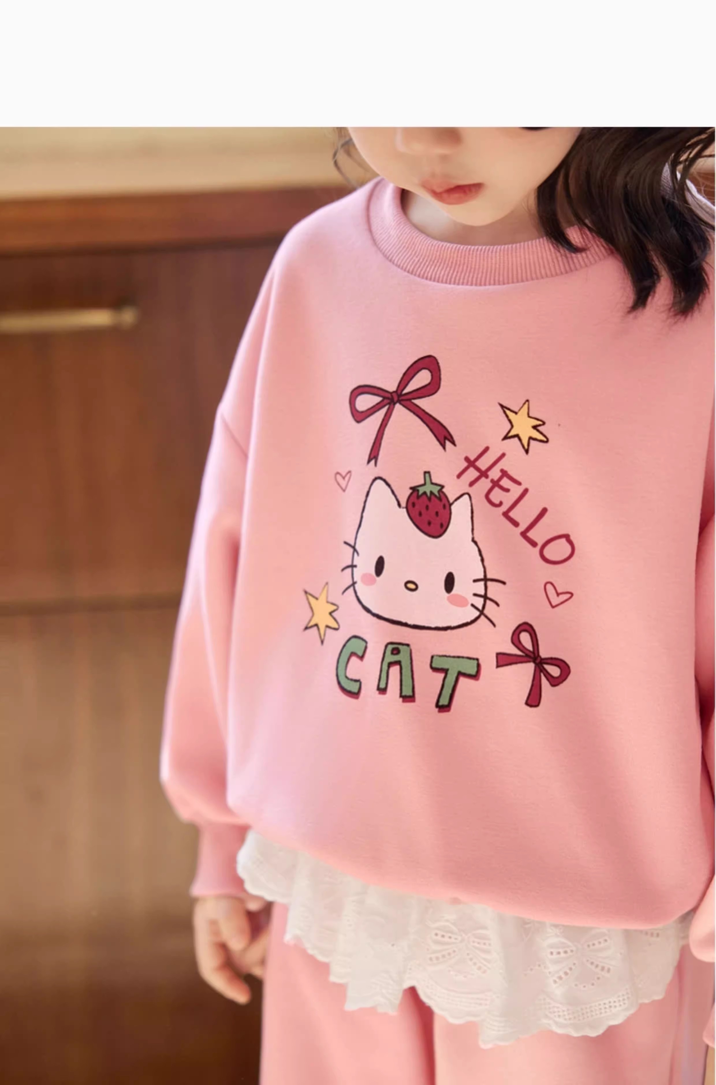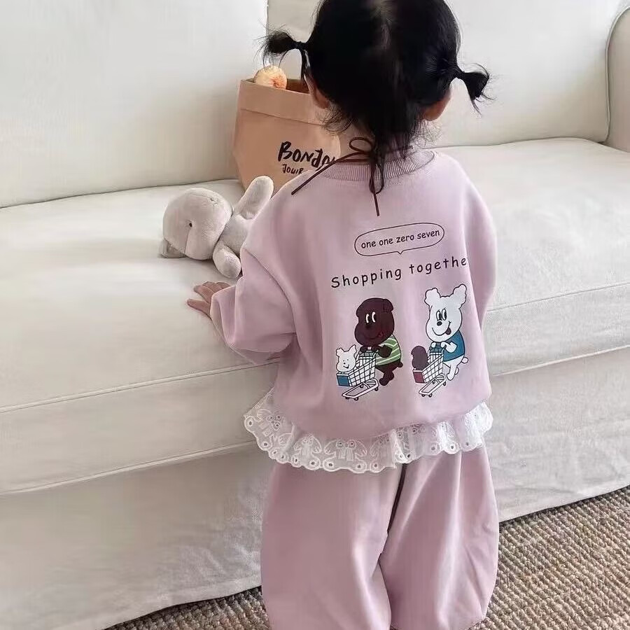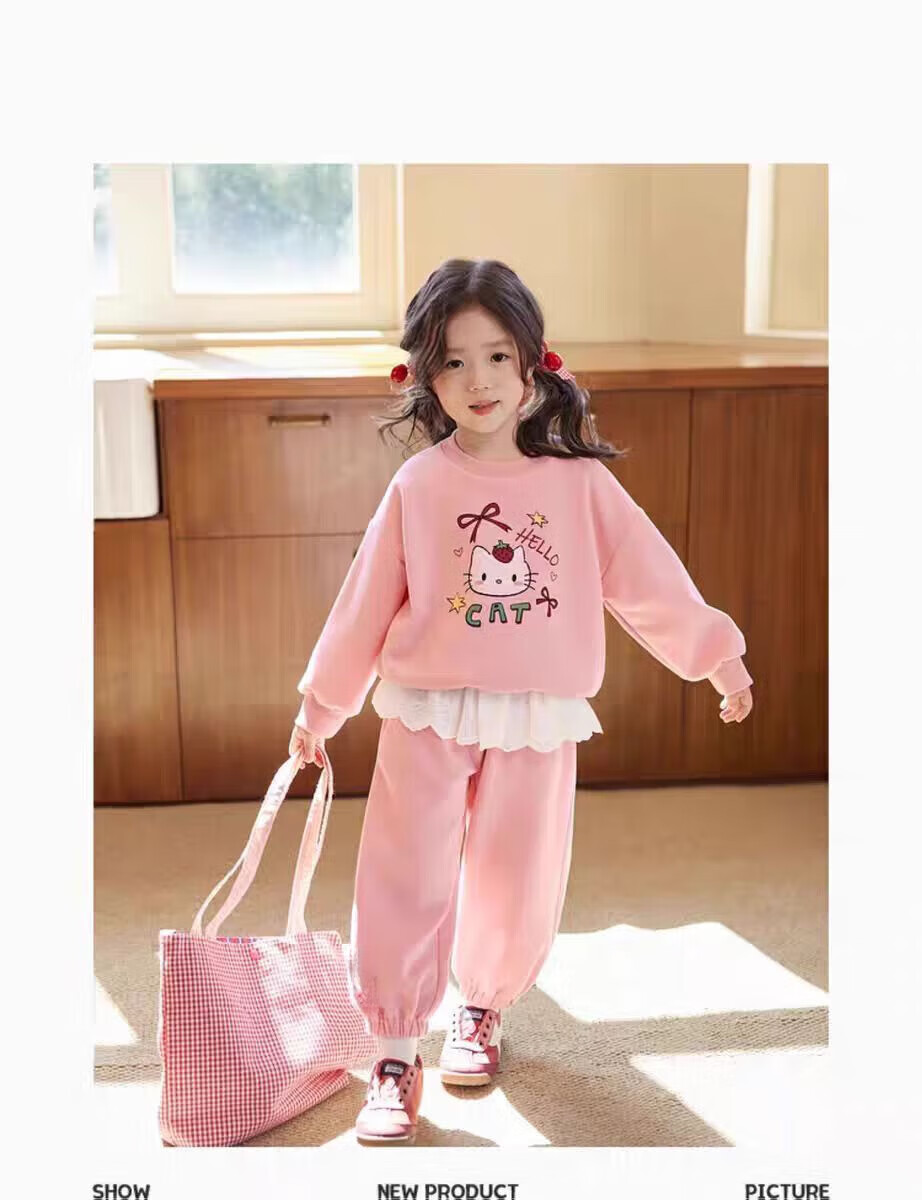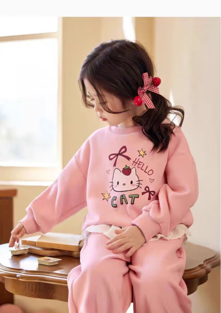 小猪班纳(PEPCO)女童卫衣套装可爱卡通印花秋季新款儿童洋气秋装宝宝屁帘裤两件套 KB双狗印花套装-粉色 130 (建议身高115-125cm)