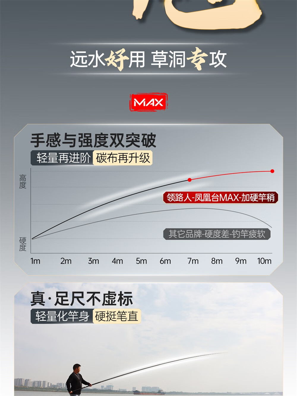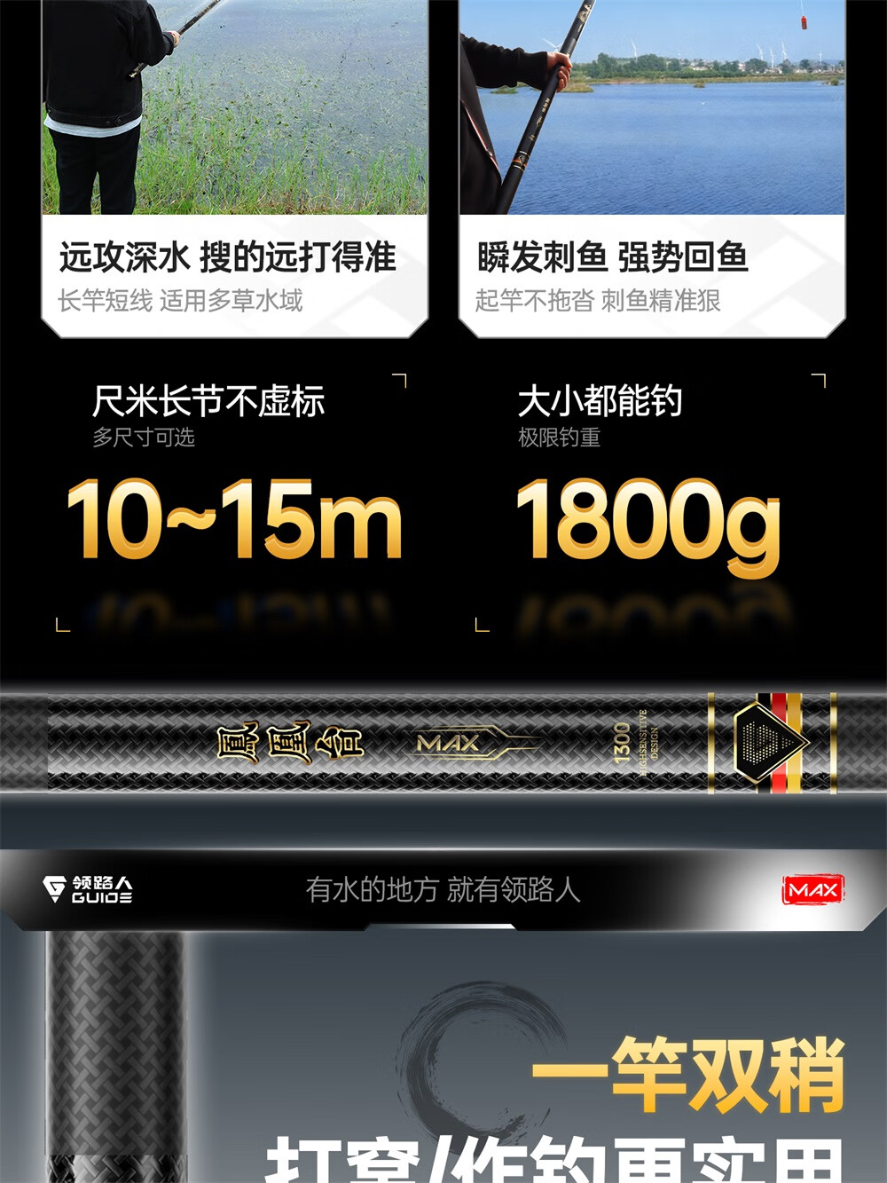 领路人凤凰台MAX炮竿传统钓长杆超轻超硬钓鱼手竿十大12/13米台钓竿品牌 13m