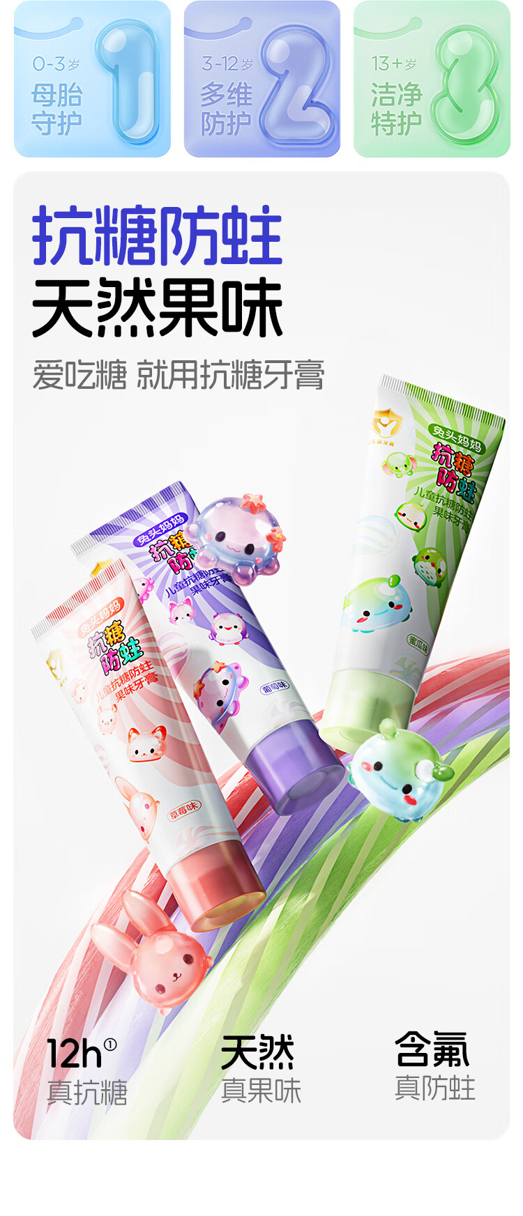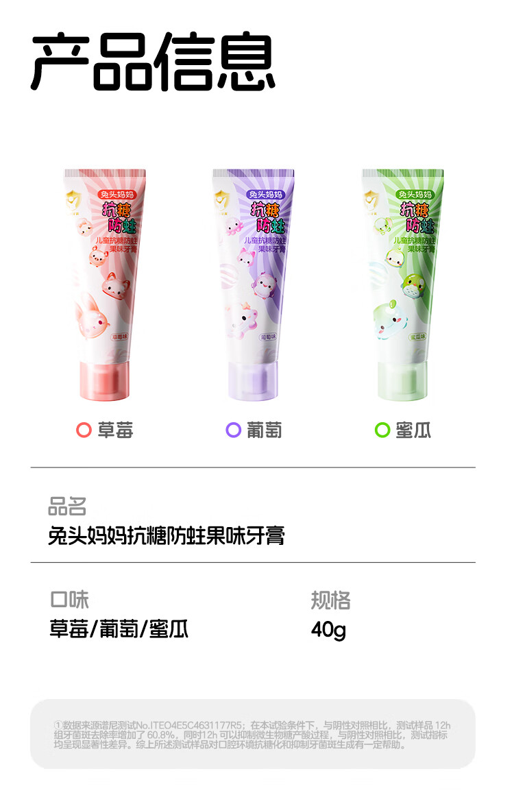 兔头妈妈抖音爆款儿童抗糖防蛀果味牙膏草莓葡萄味2支装 3-6-12岁