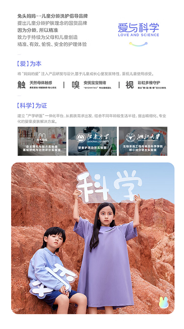 兔头妈妈儿童洗面奶 宝宝洁面乳洁面泡护肤清洁洗脸舒缓卸防晒3-12岁90ml