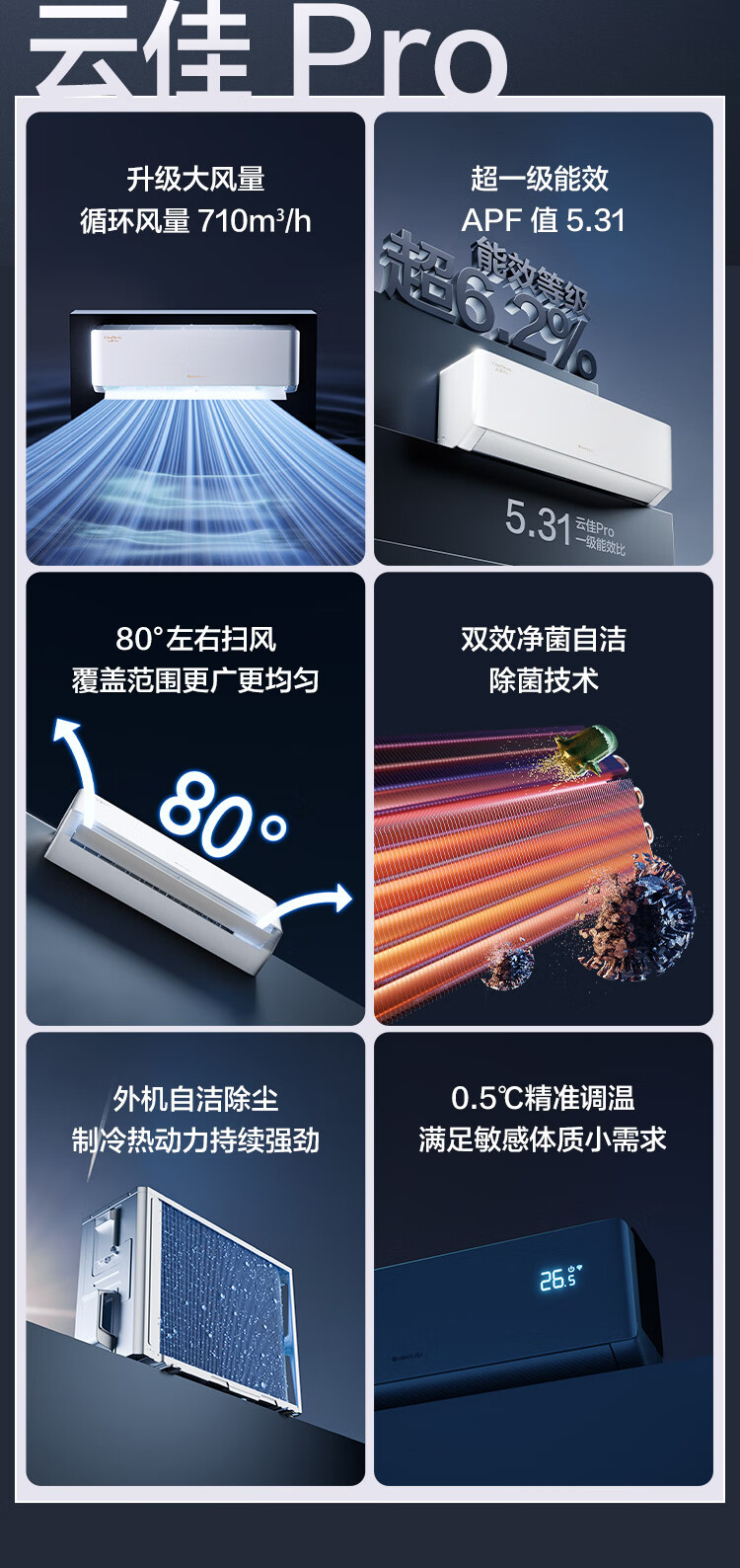 格力【空调套装】新一级能效 变频冷暖自清洁家用卧室空调组合套装【两室】一站购齐 大1匹云佳pro*2