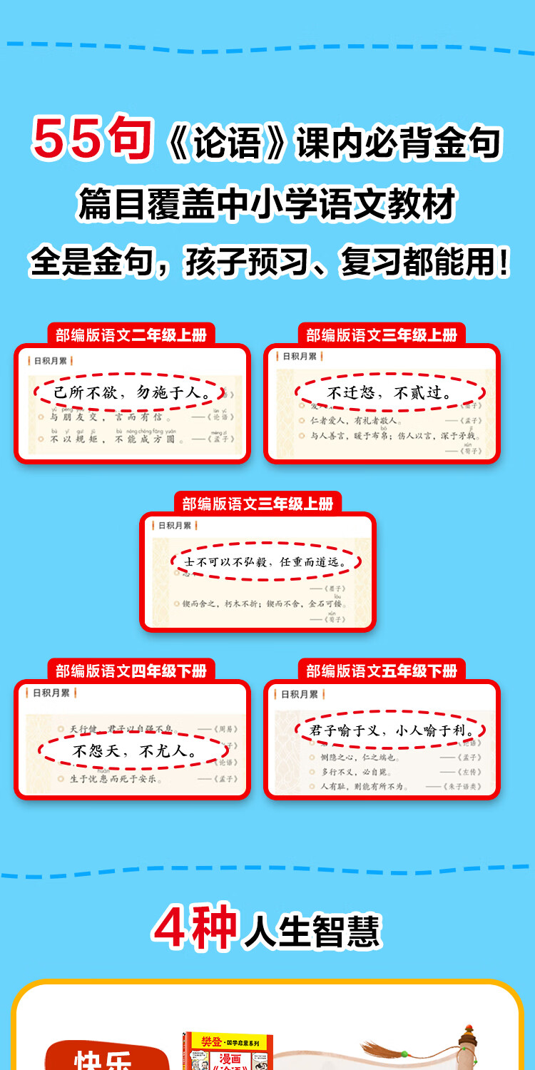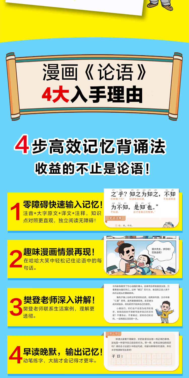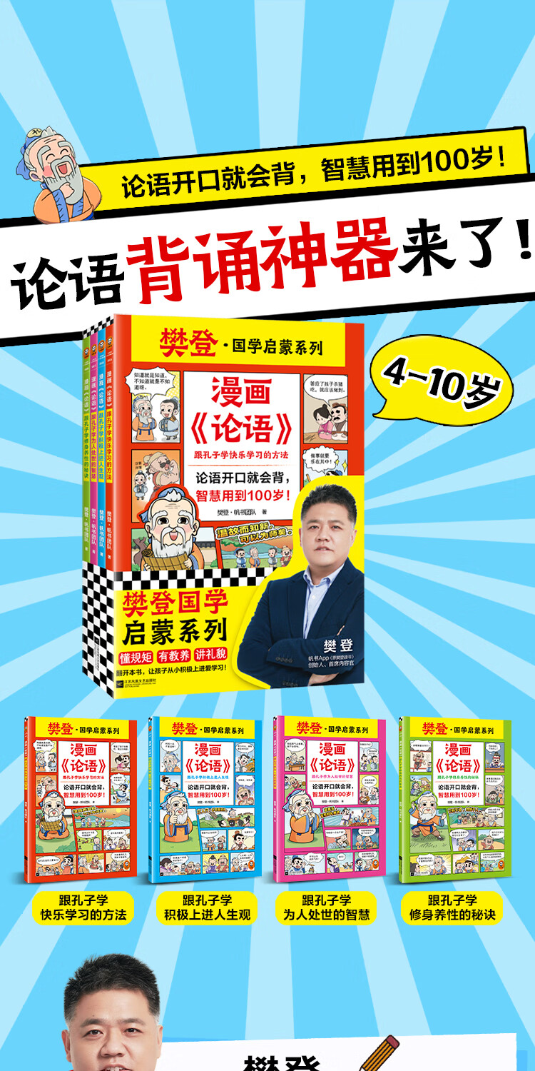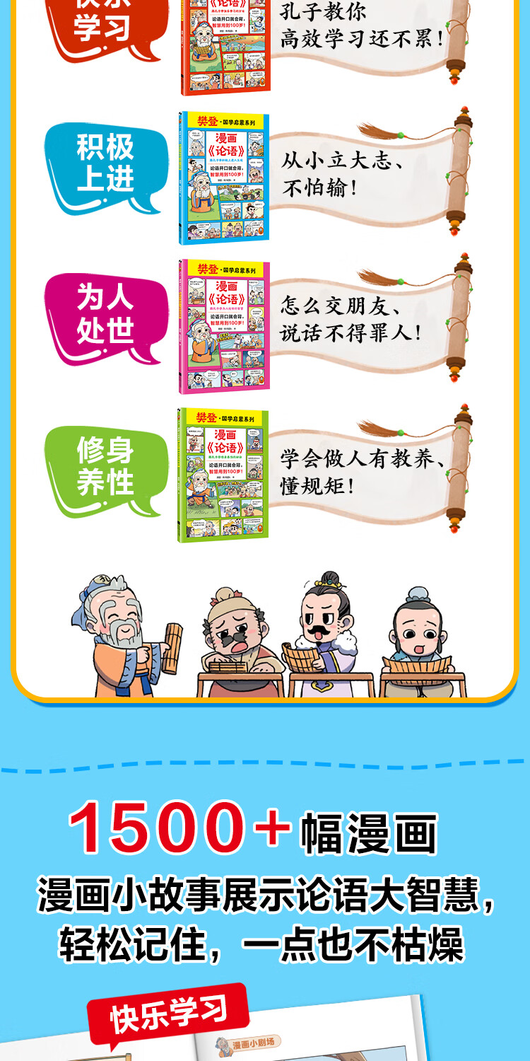漫画《论语》全4册 论语开口就会背,智慧用到100岁!小读客少儿国学漫画文库 《论语》(全4册)