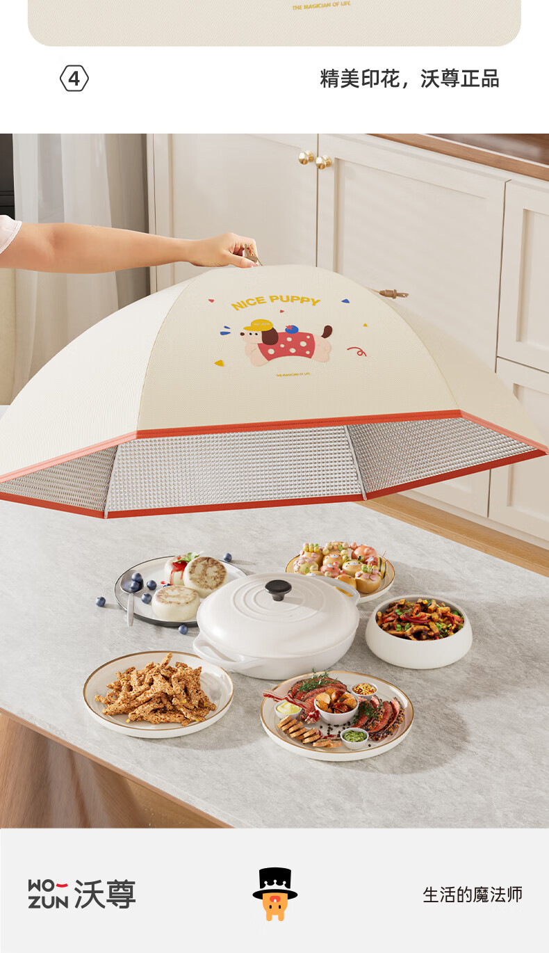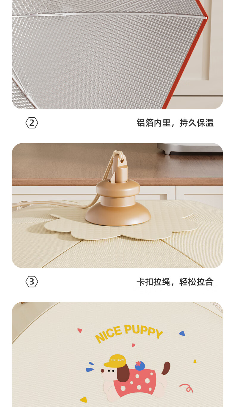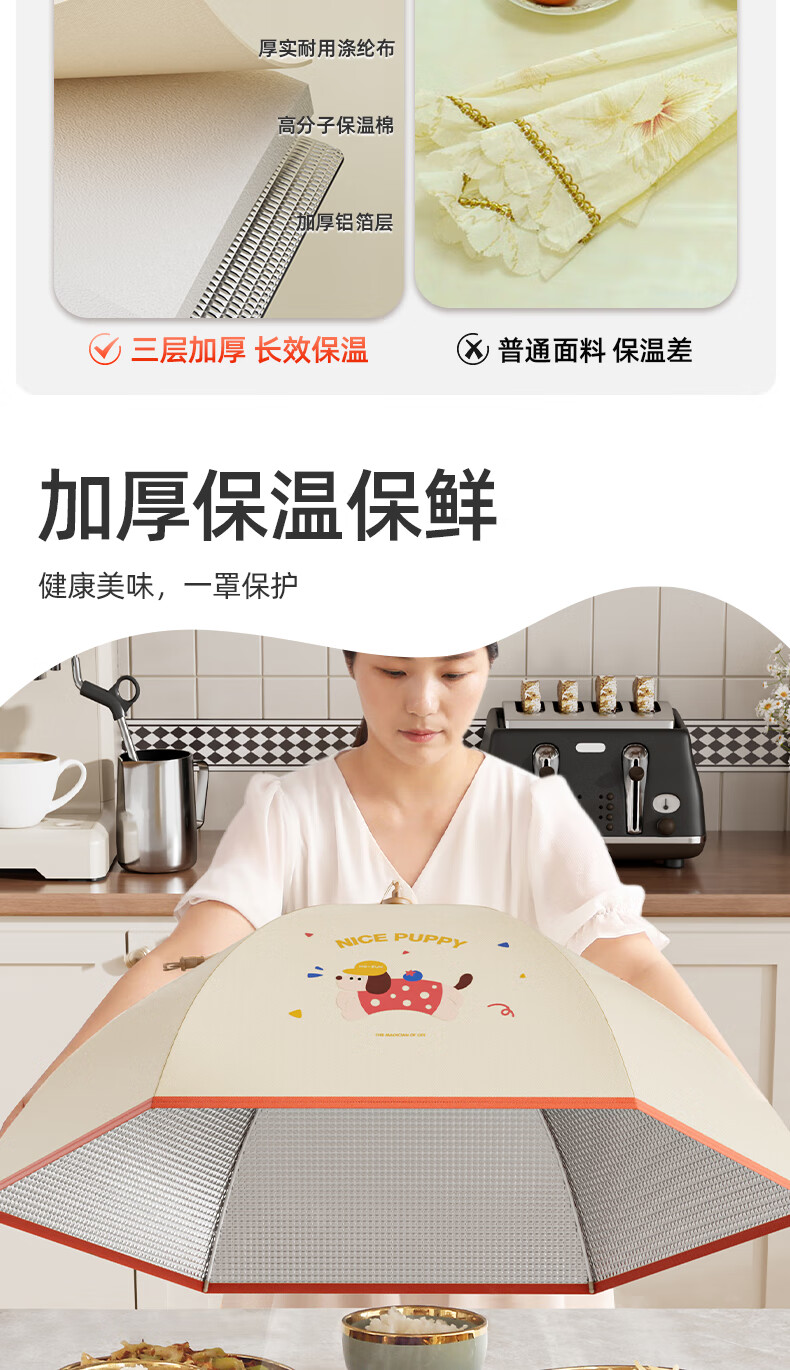 沃尊保温菜罩饭菜保温罩菜神器菜盖罩2025新款家用冬天餐桌剩菜食物罩 【粉色腊肠狗】三层加厚款方形中号