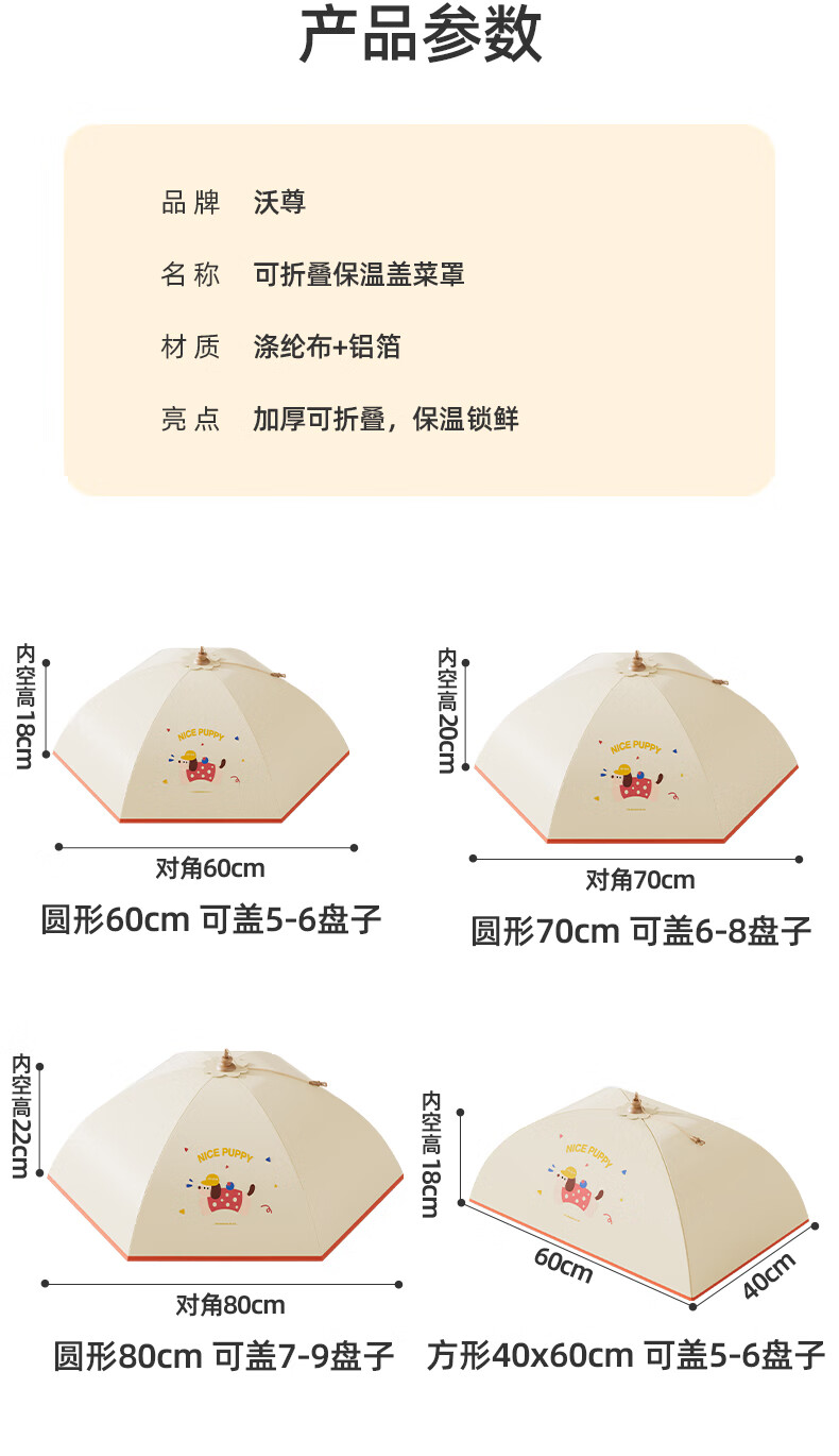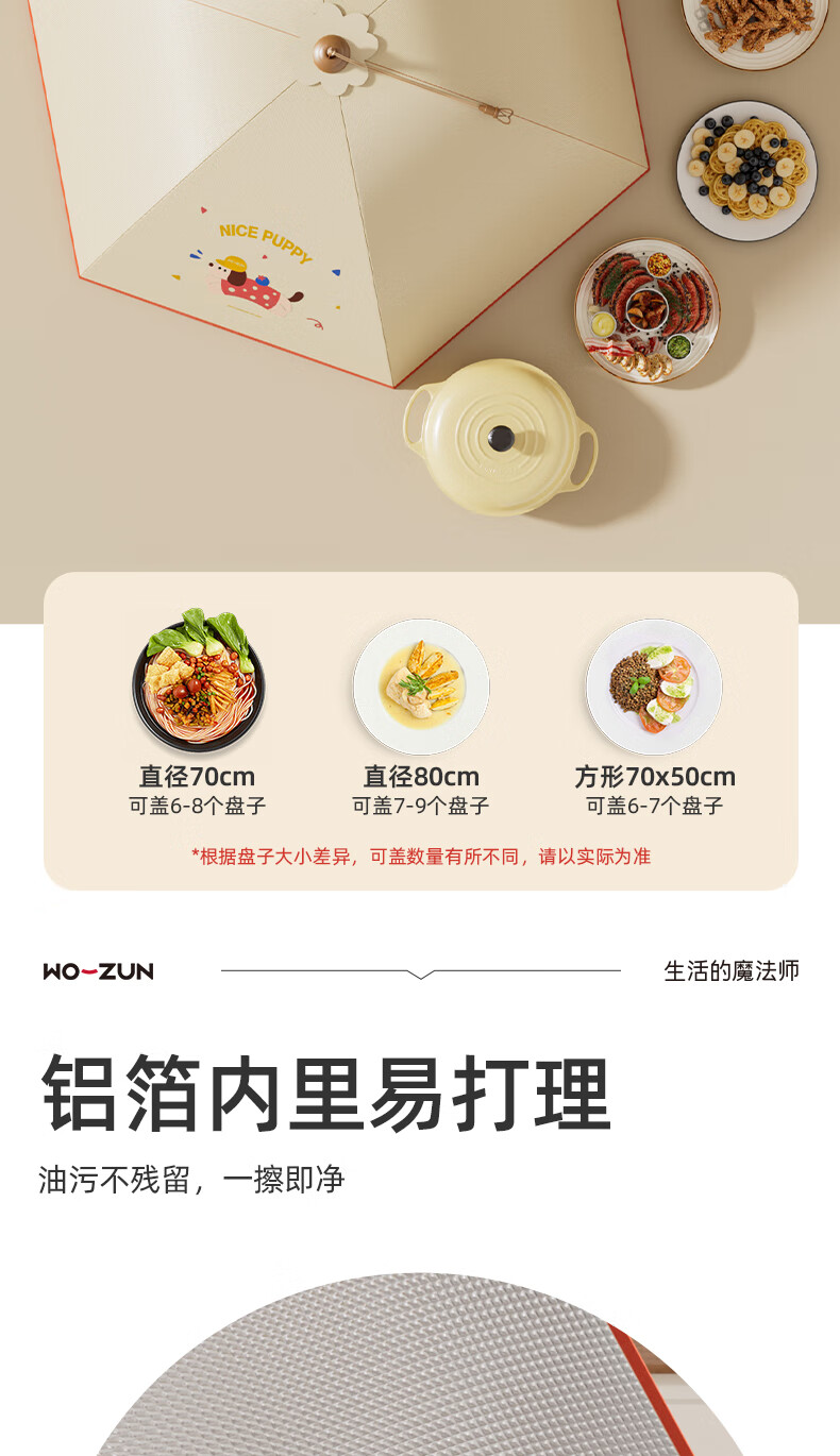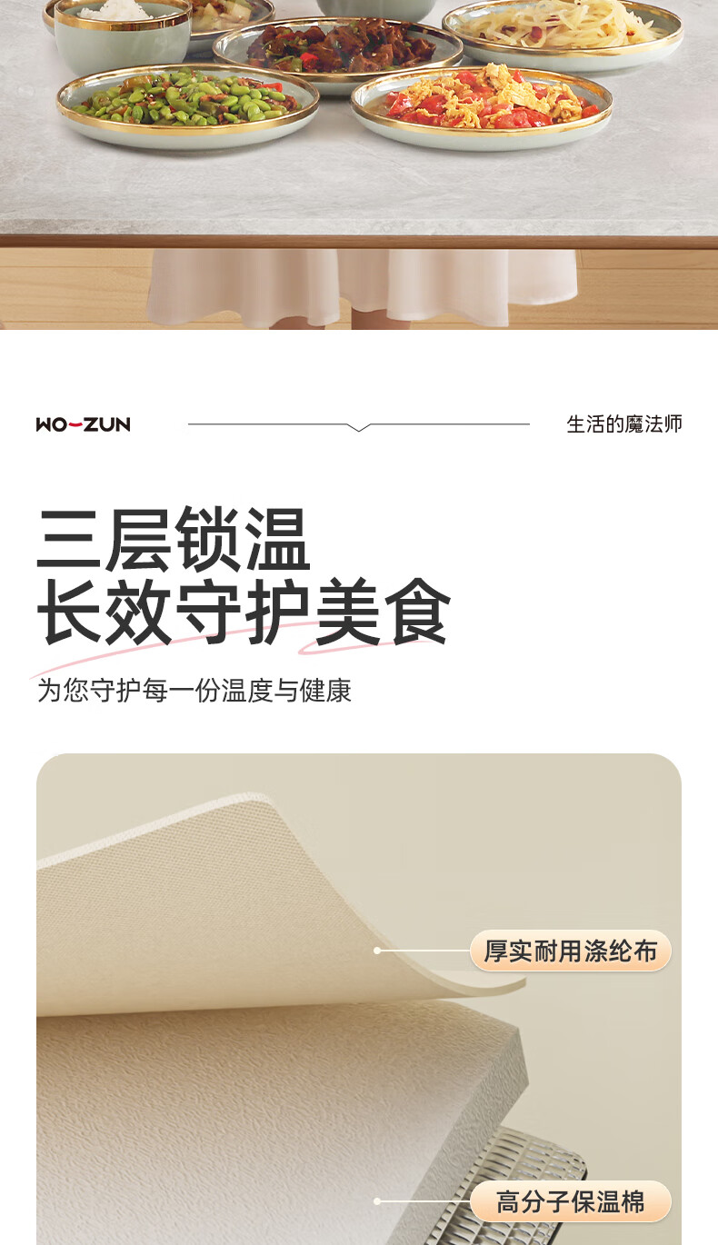 沃尊保温菜罩饭菜保温罩菜神器菜盖罩2025新款家用冬天餐桌剩菜食物罩 【粉色腊肠狗】三层加厚款方形中号
