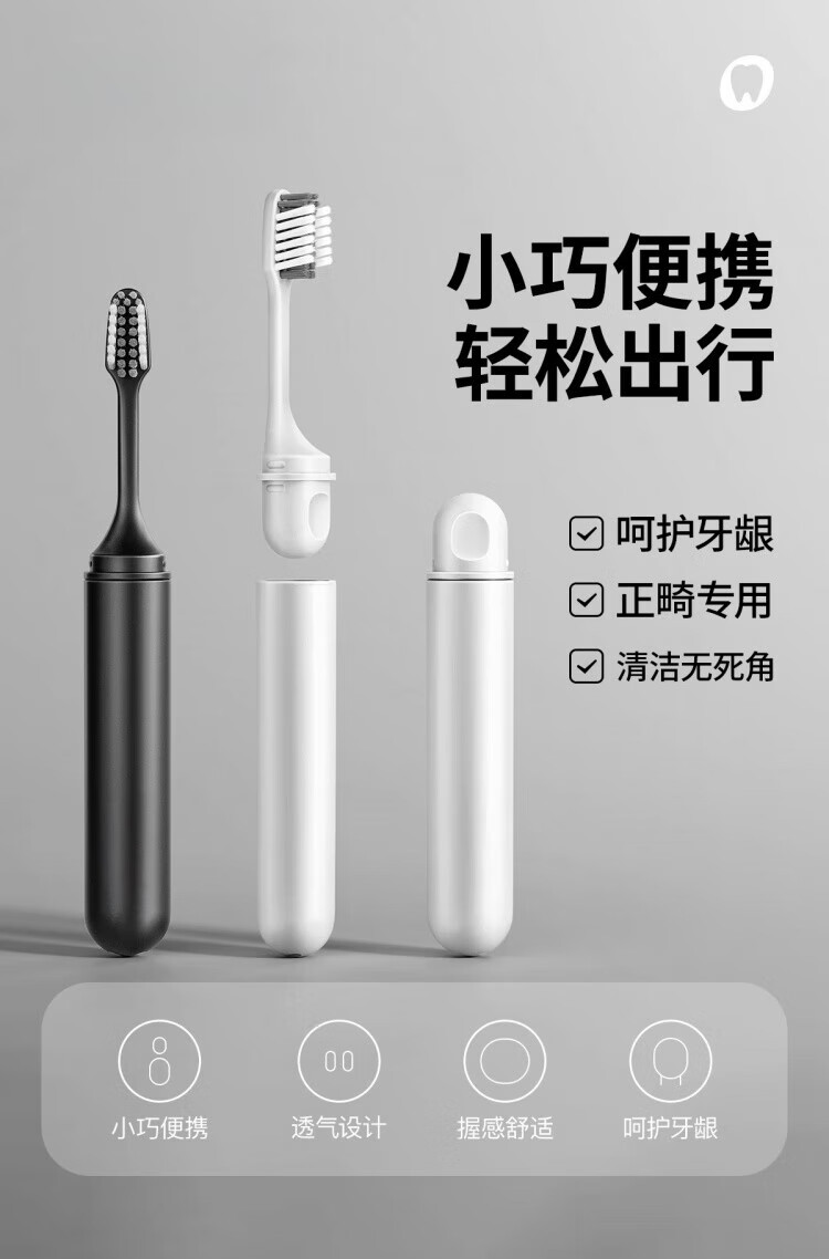 DEATKN德国旅行折叠牙刷便携牙刷旅行套装洗漱用品超软毛成人牙刷牙 【】白色+黑色 4支