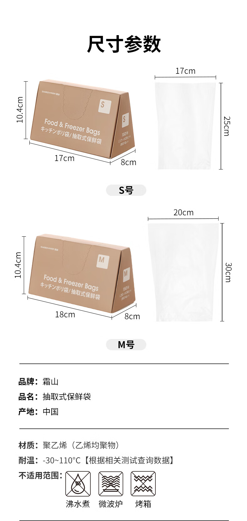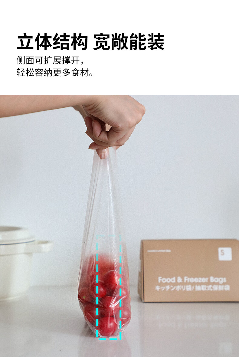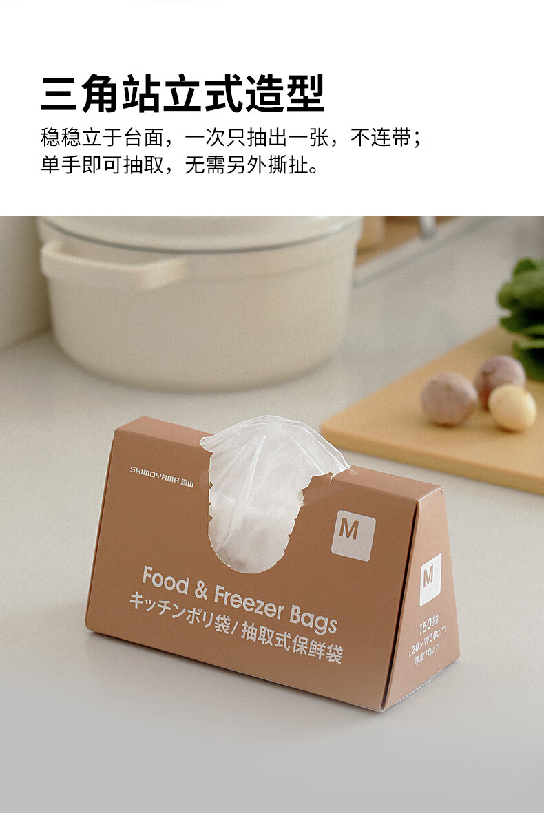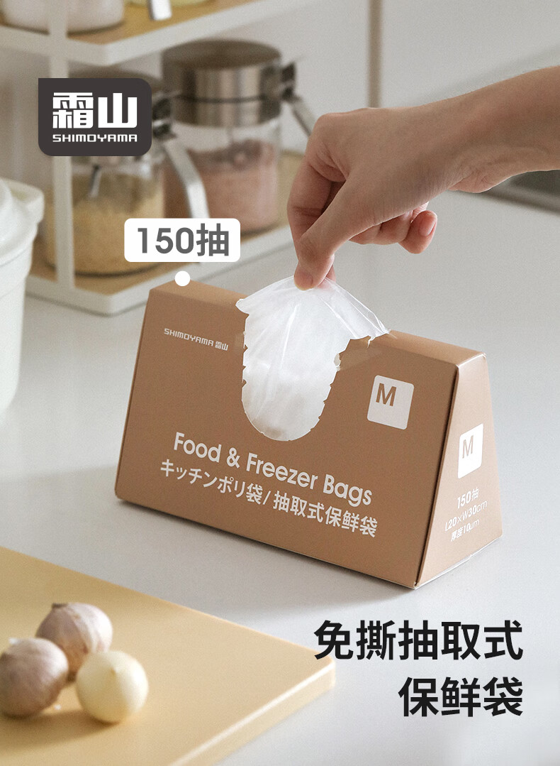 霜山保鲜袋食品级冰箱食材冷藏一次性食品袋厨房免撕抽取式塑料袋 【M号150抽】长30*宽20cm