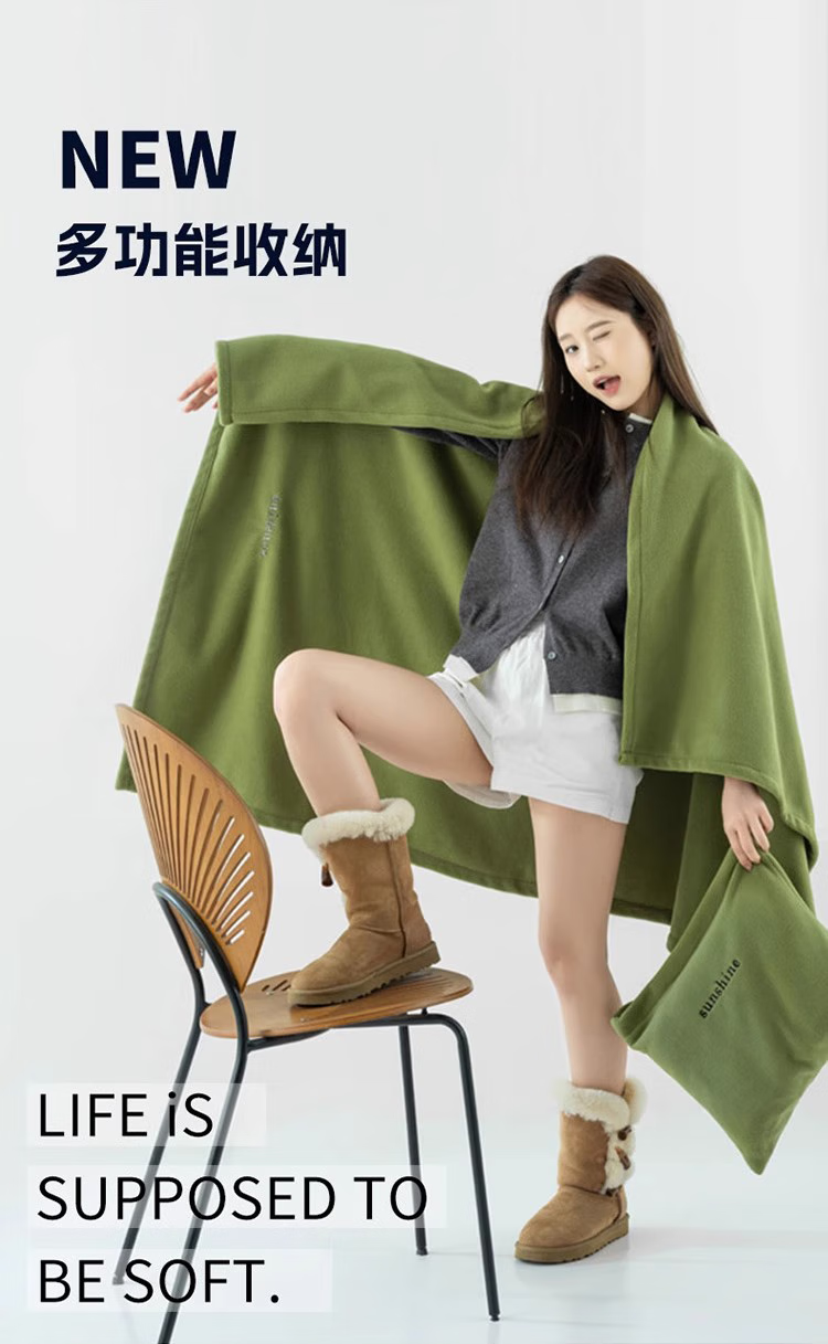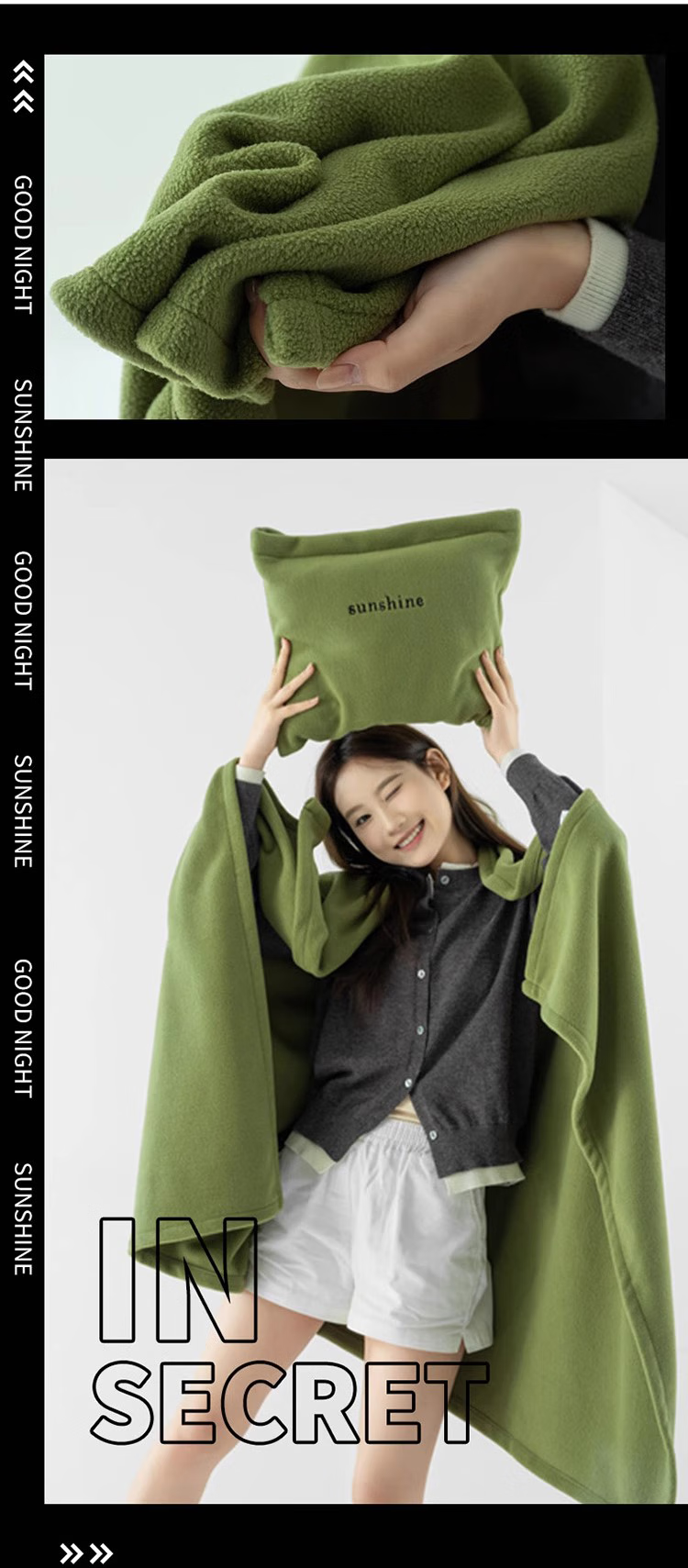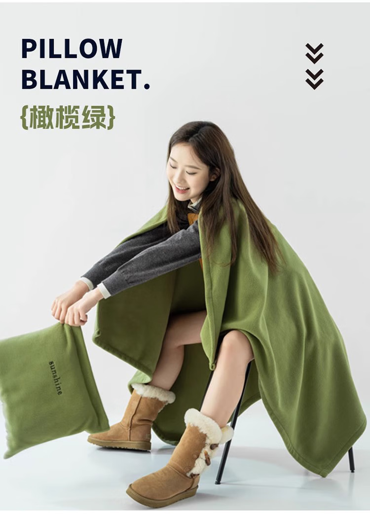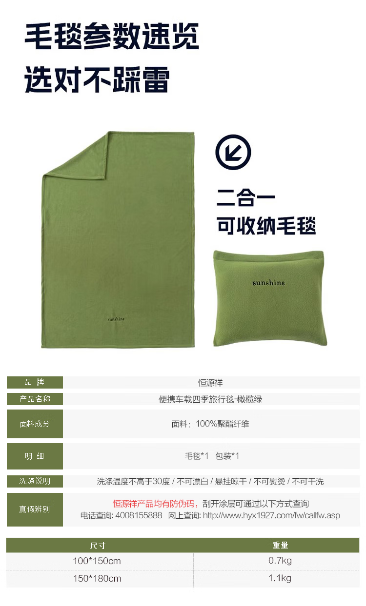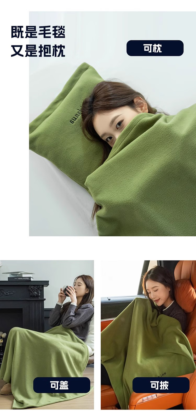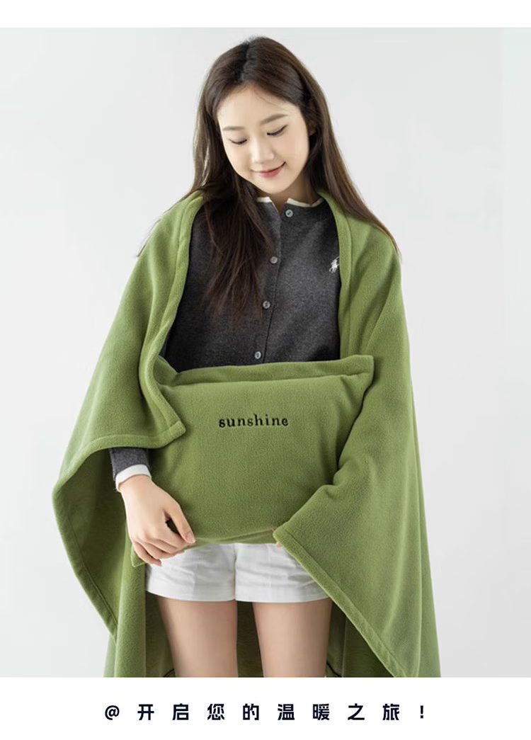 恒源祥便携车载四季旅行毯飞机盖毯车载毯时尚午睡毯空调被沙发毯子 便携车载四季旅行毯-樱花粉 100cm*150cm