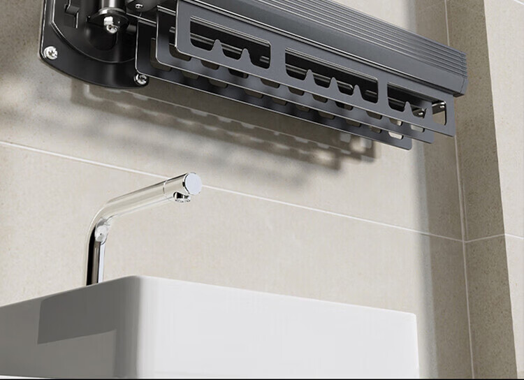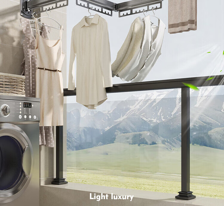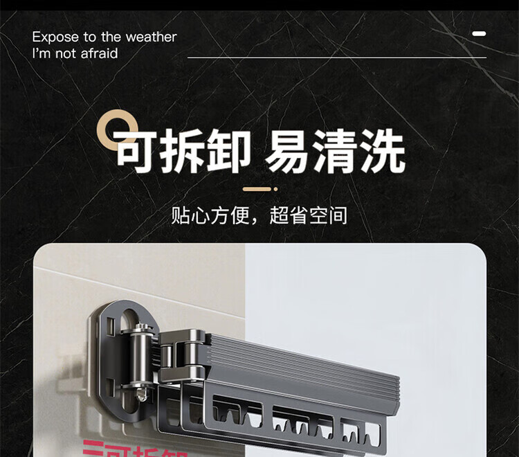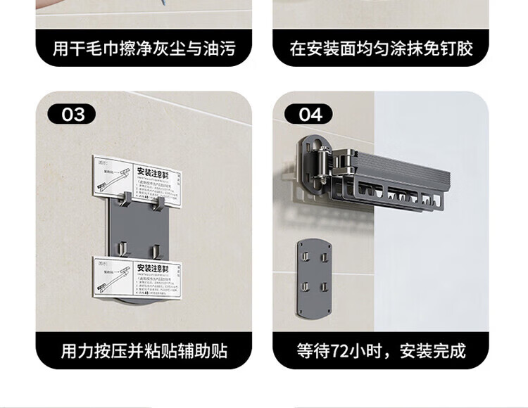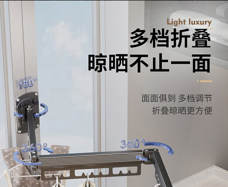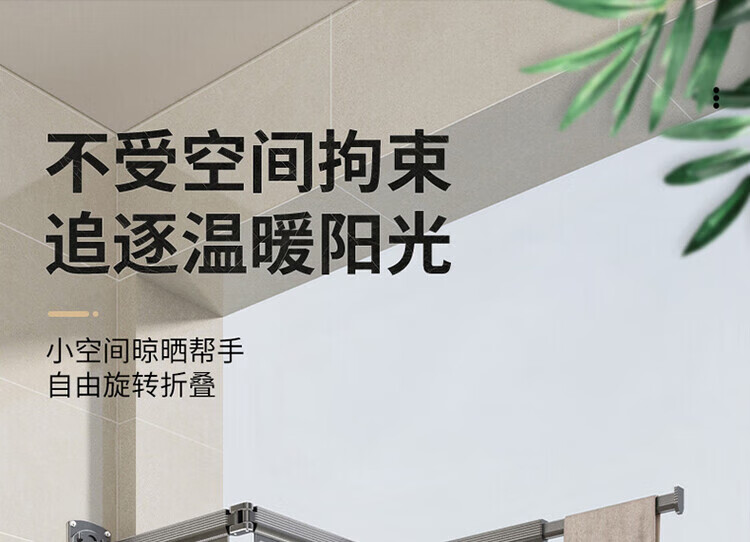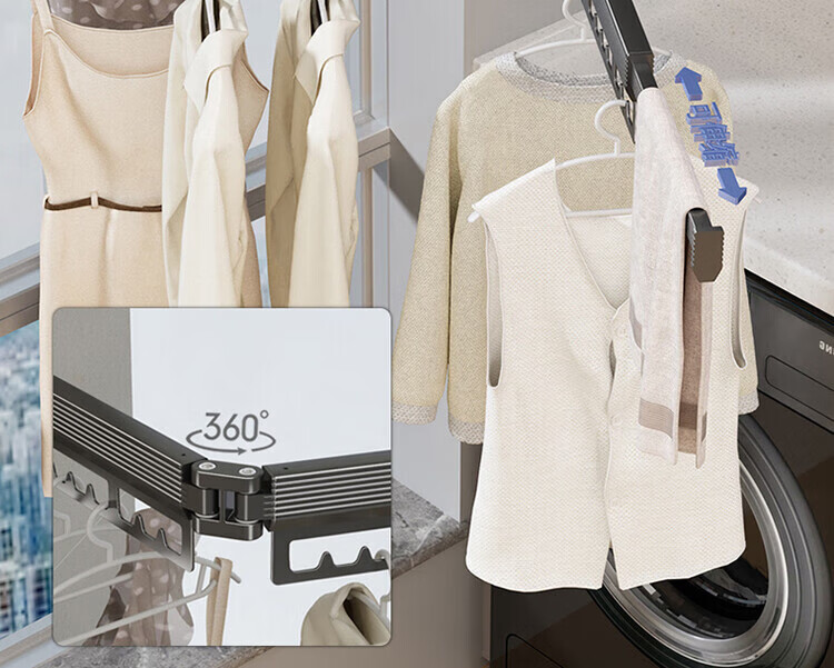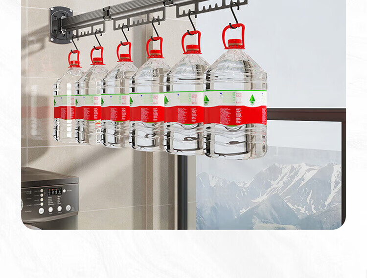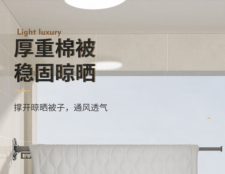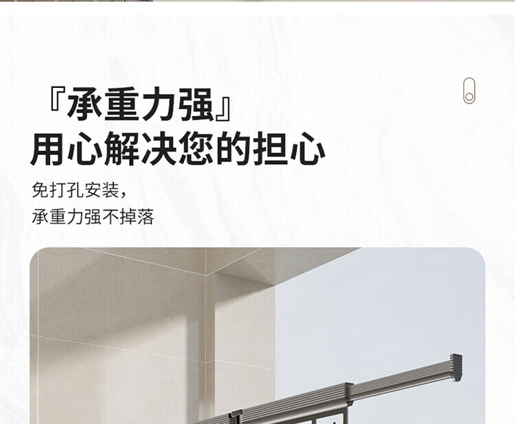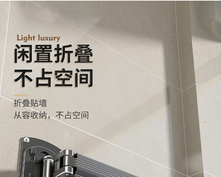 户璃德国隐形折叠晾衣架阳台家用壁挂式室内晾衣杆免打孔晒被子 【白】三折叠-带伸缩杆