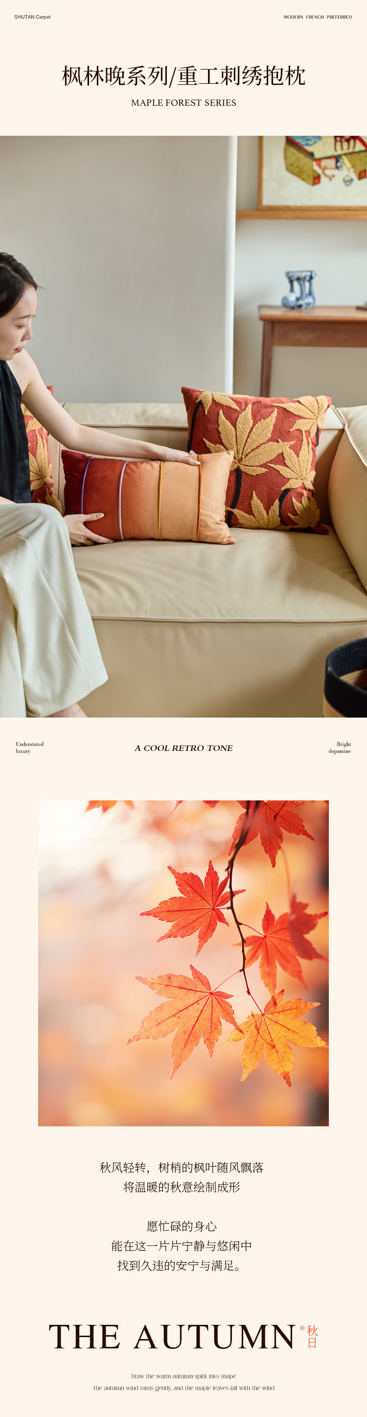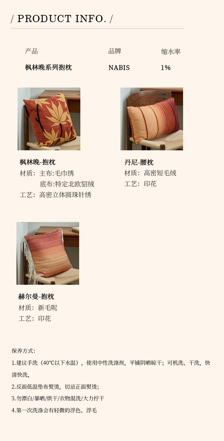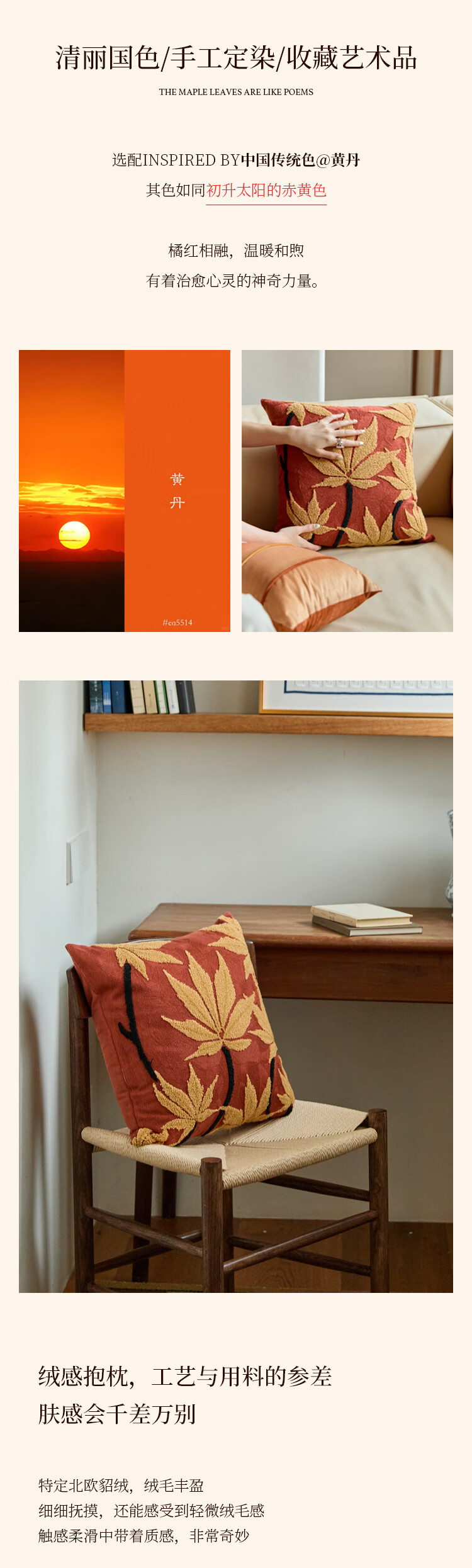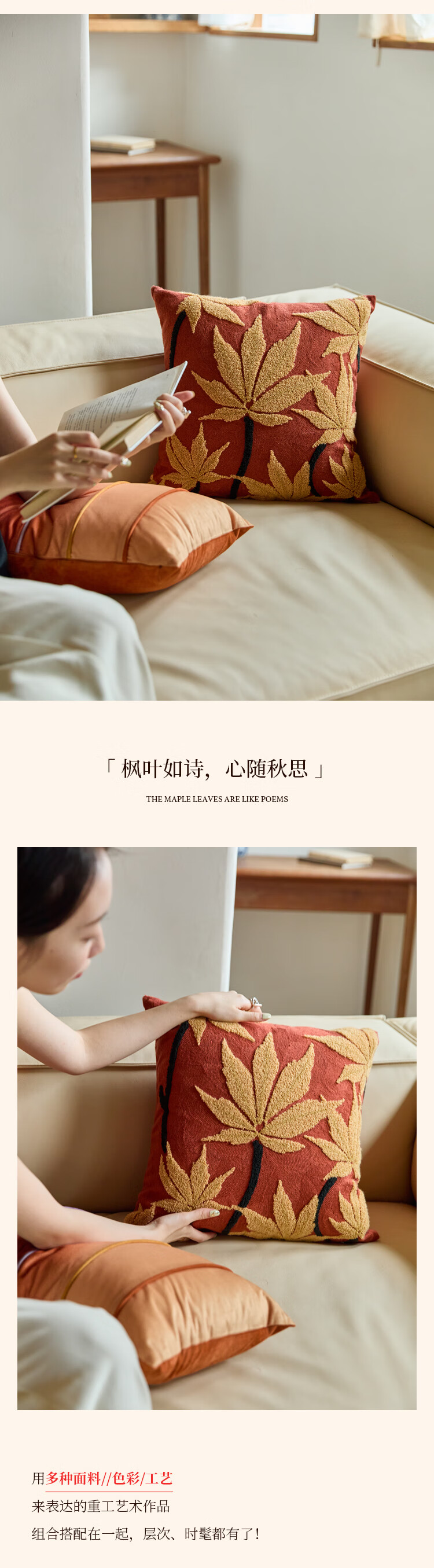 蜡笔派(Nabis)【孤品25折】蜡笔派枫林晚抱枕简约客厅沙发靠垫感床头靠枕 赫尔曼-抱枕 45cm*45cm 枕套 (不含芯)