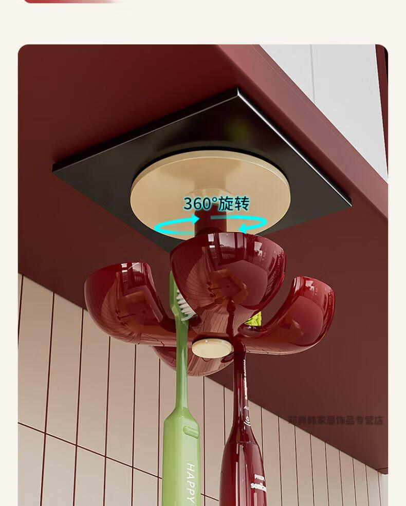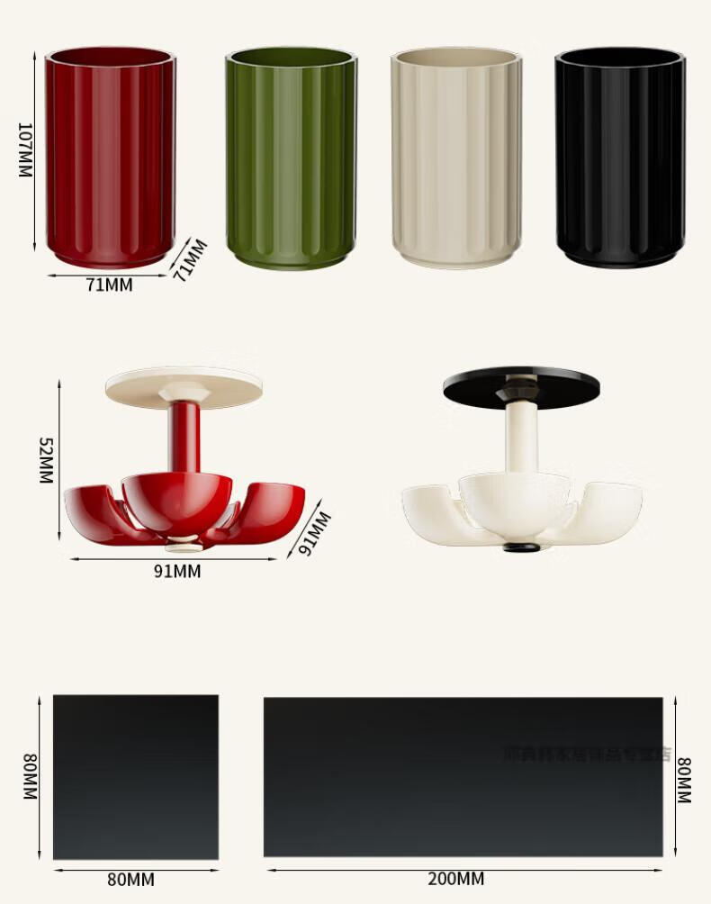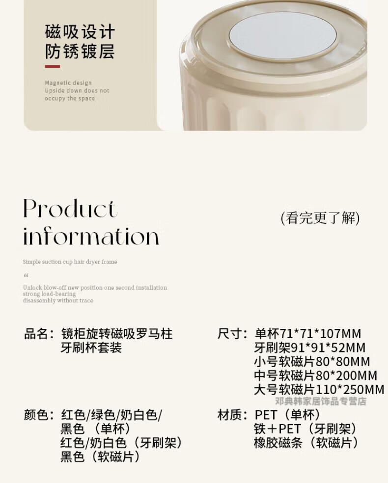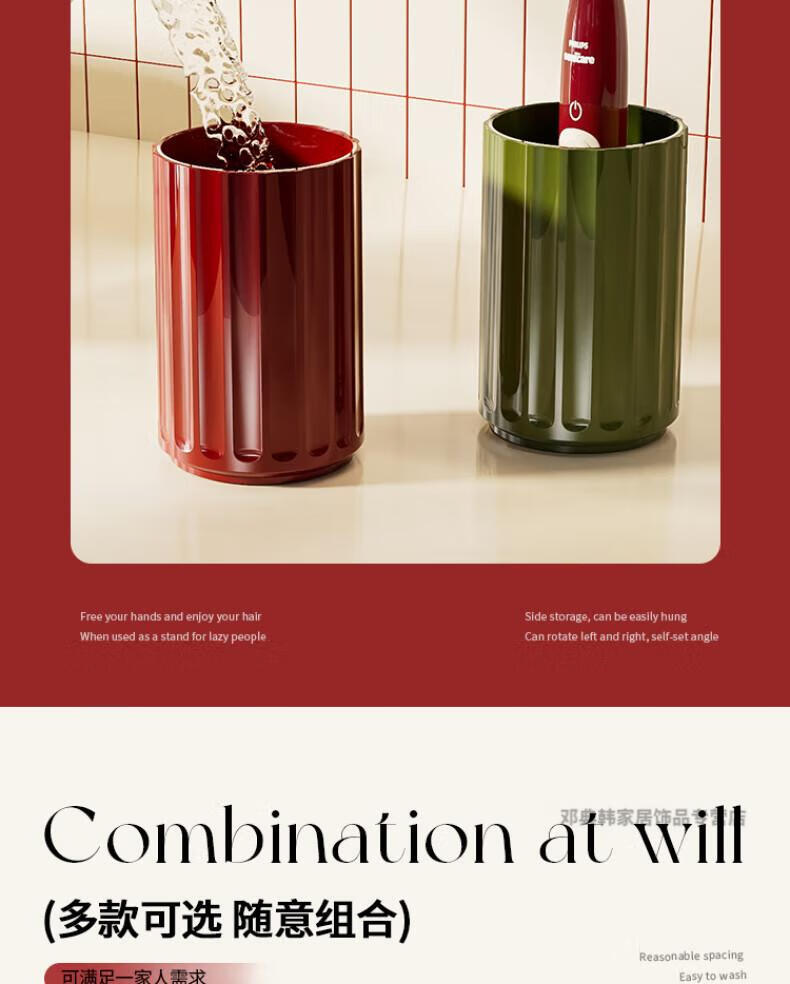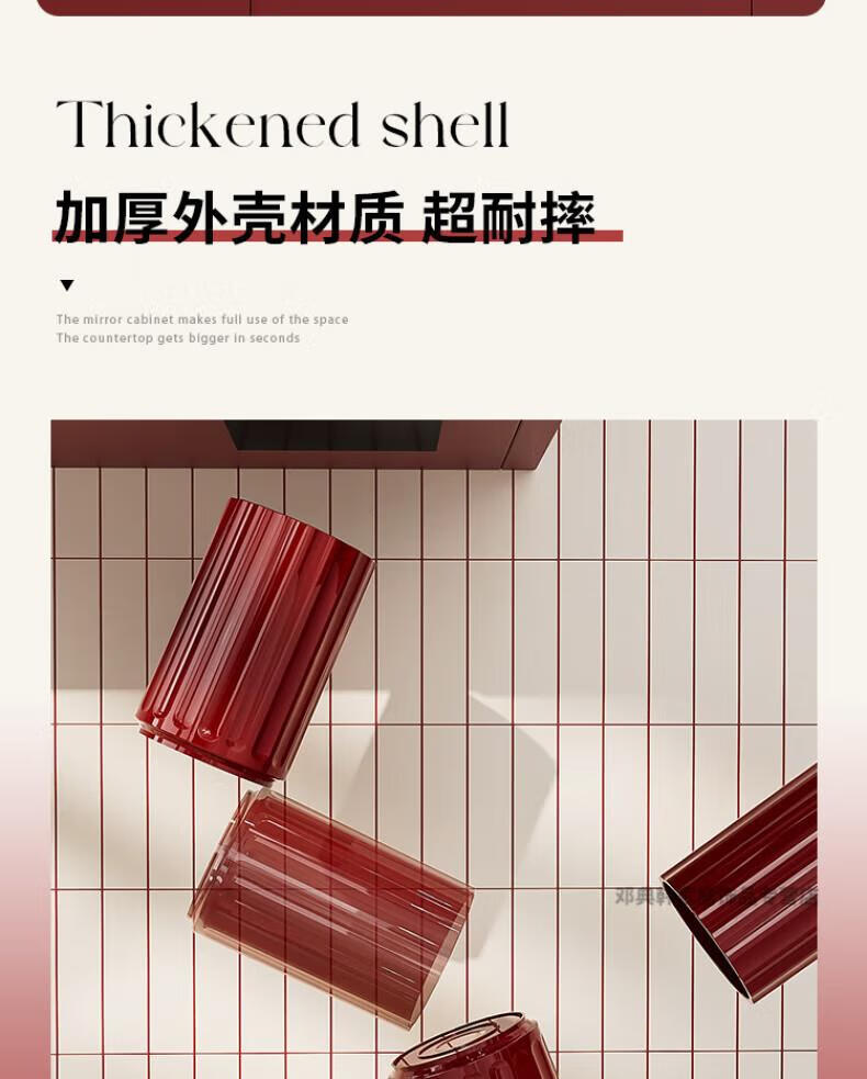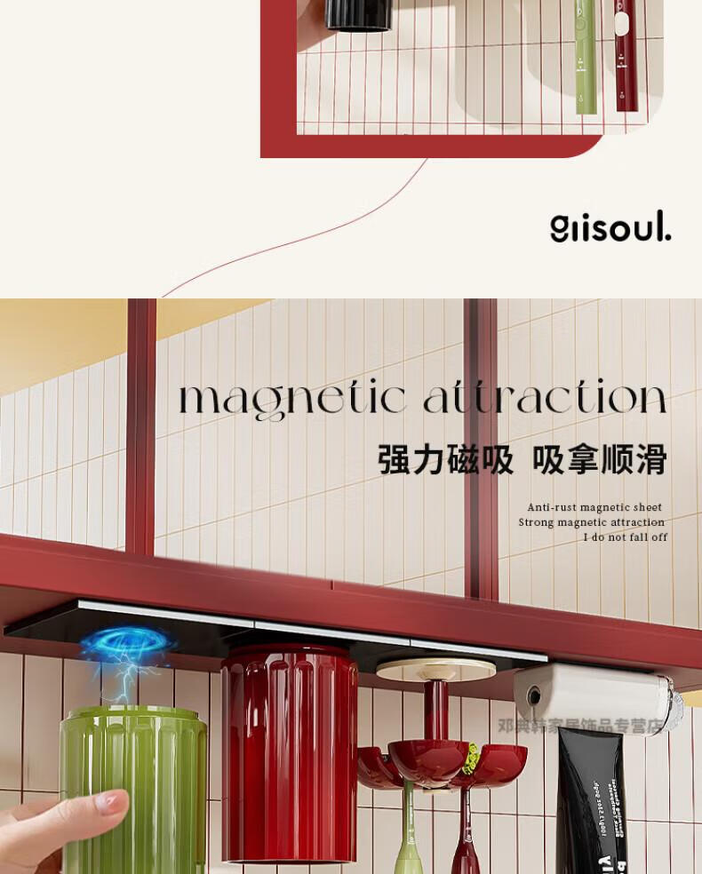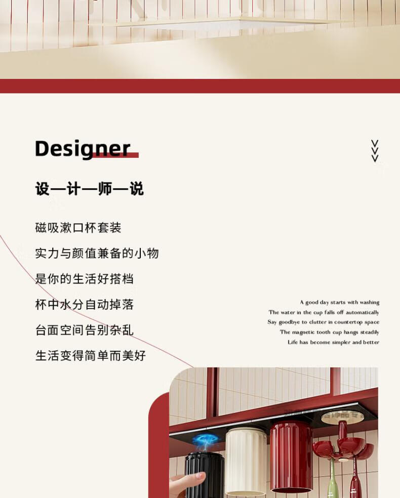 DEATKN德国镜柜磁吸漱口杯牙刷置物架一家四口倒挂电动牙刷牙杯收纳挂架 【双人套组】红绿杯+红牙刷架+3小号磁吸贴