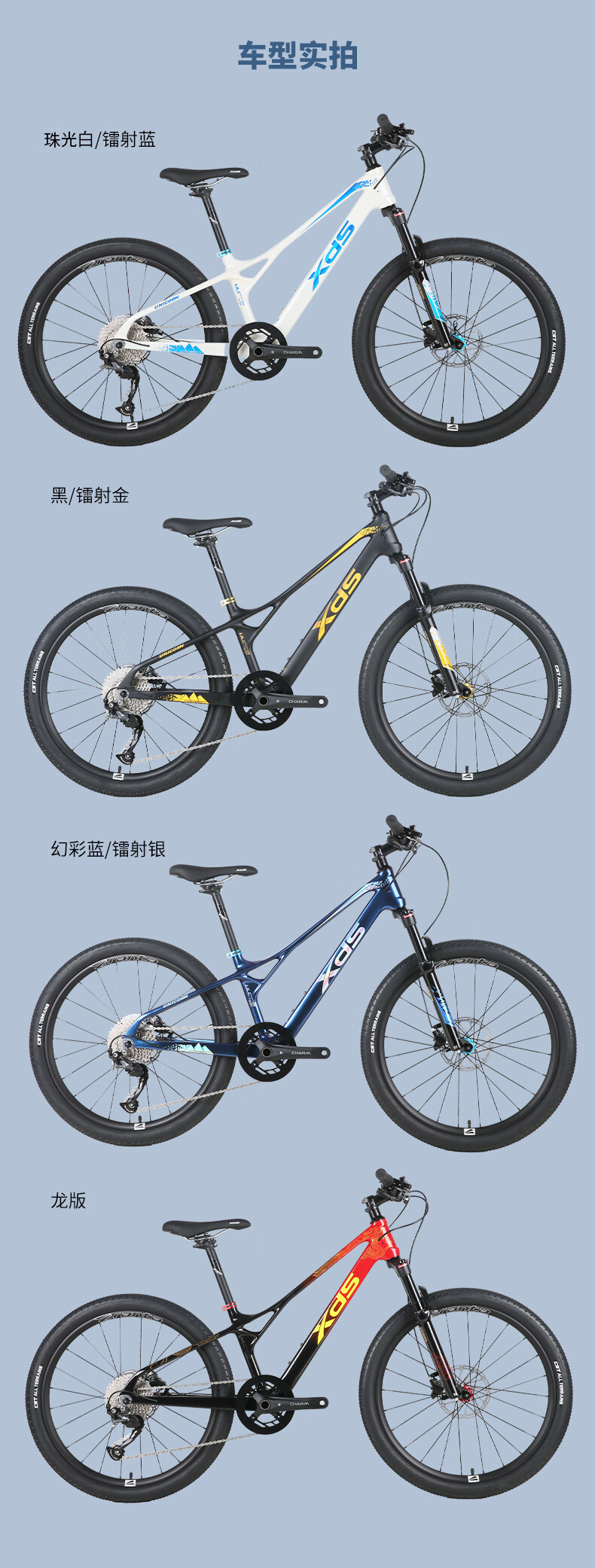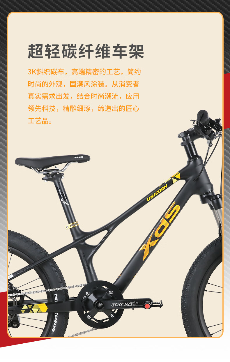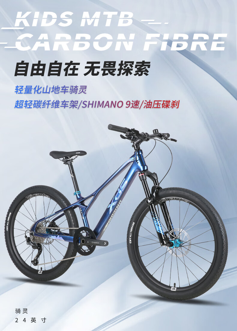 喜德盛青少年山地自行车骑灵碳纤维车架油压碟刹8速9速 黑镭射金 24寸