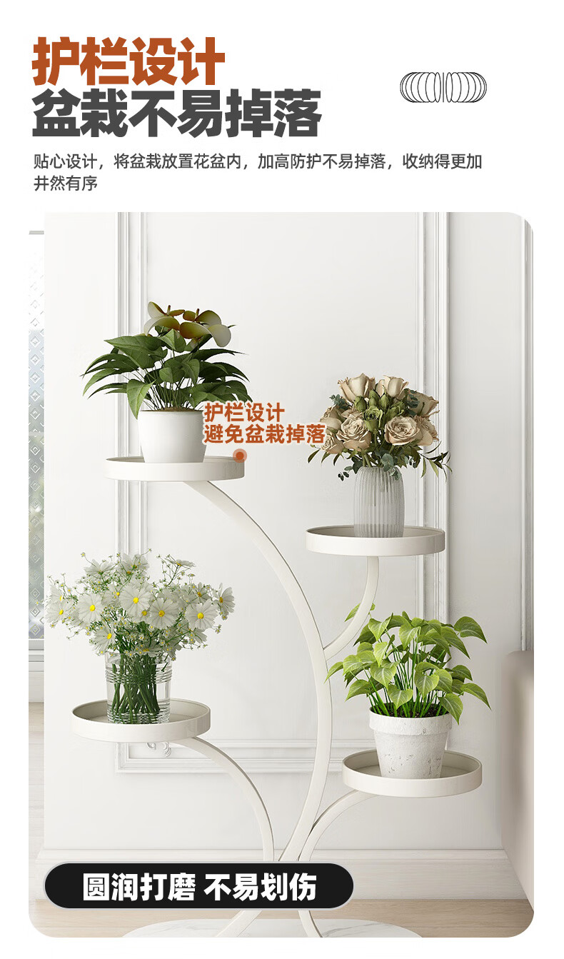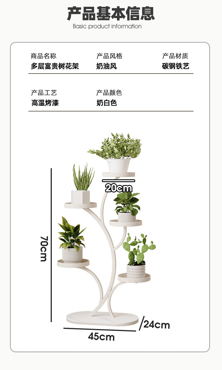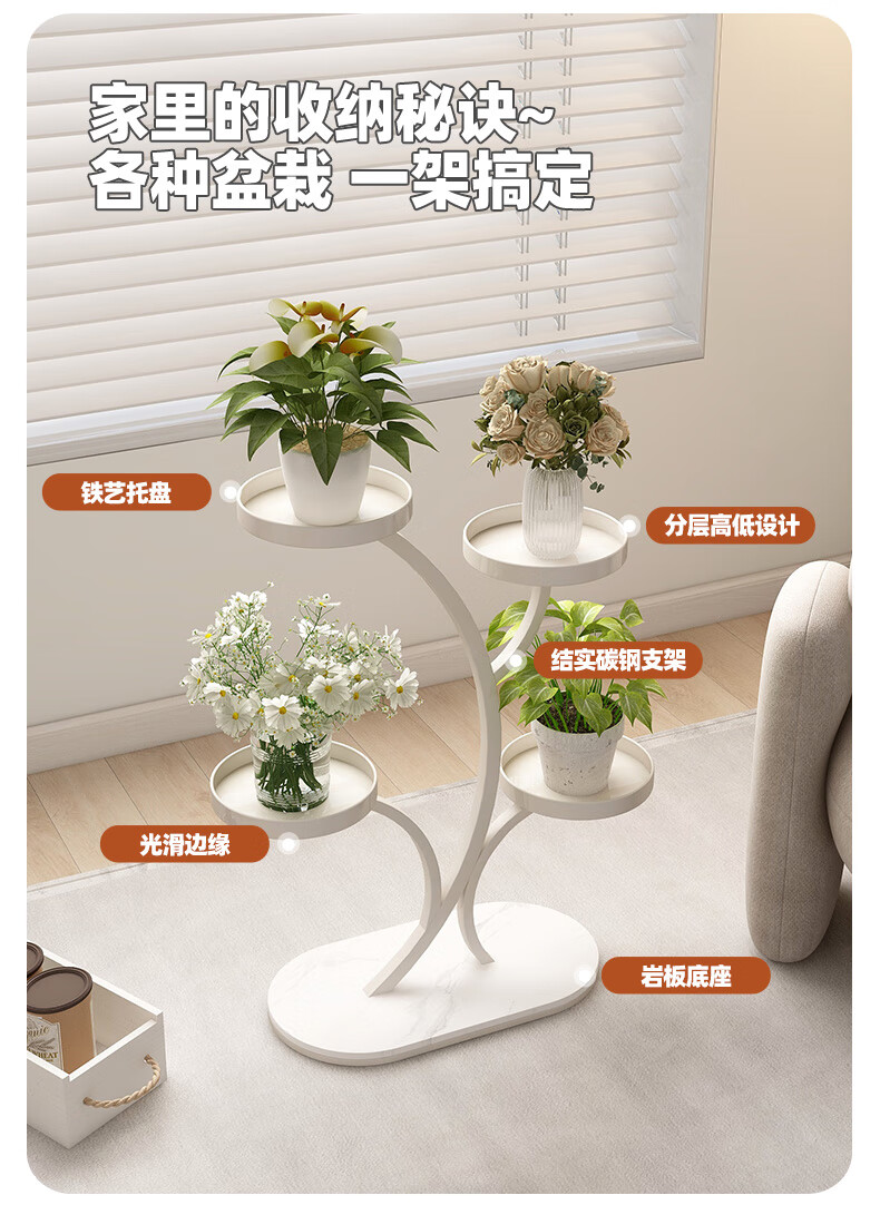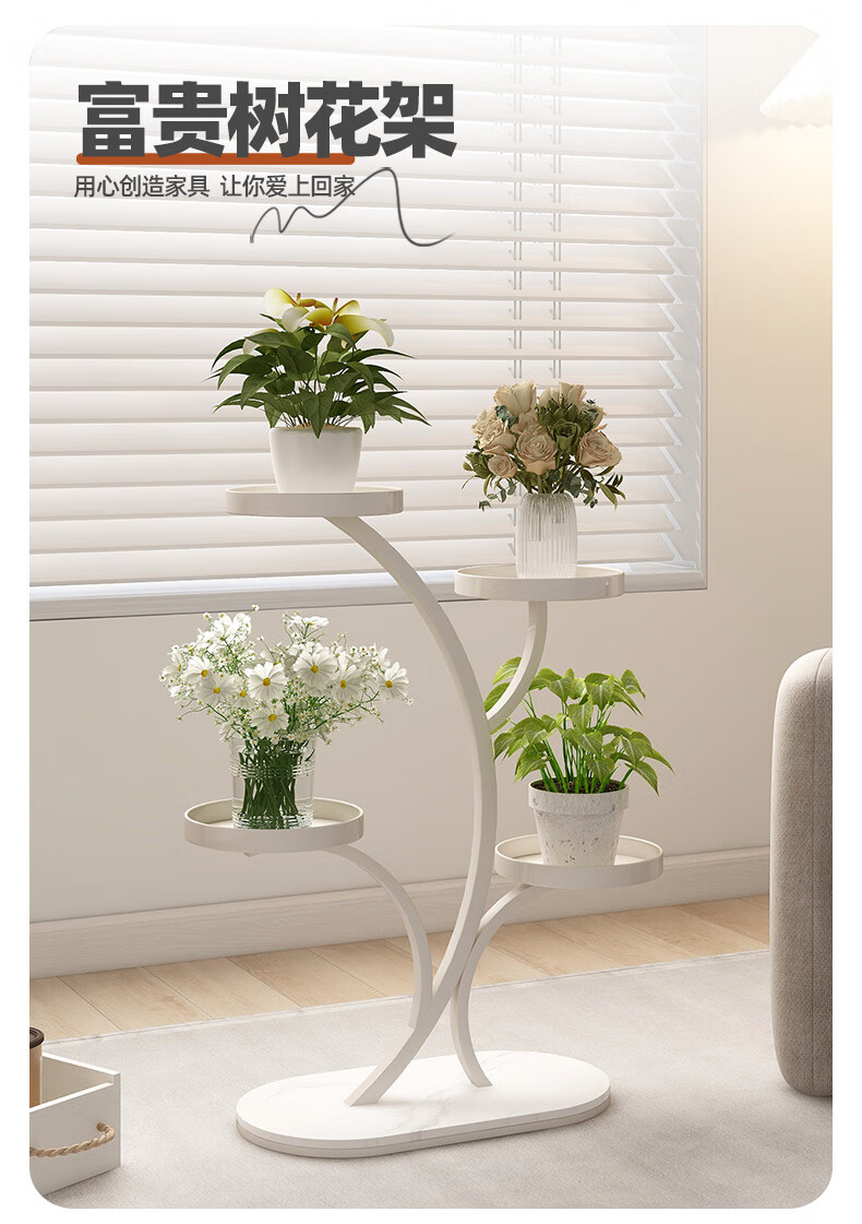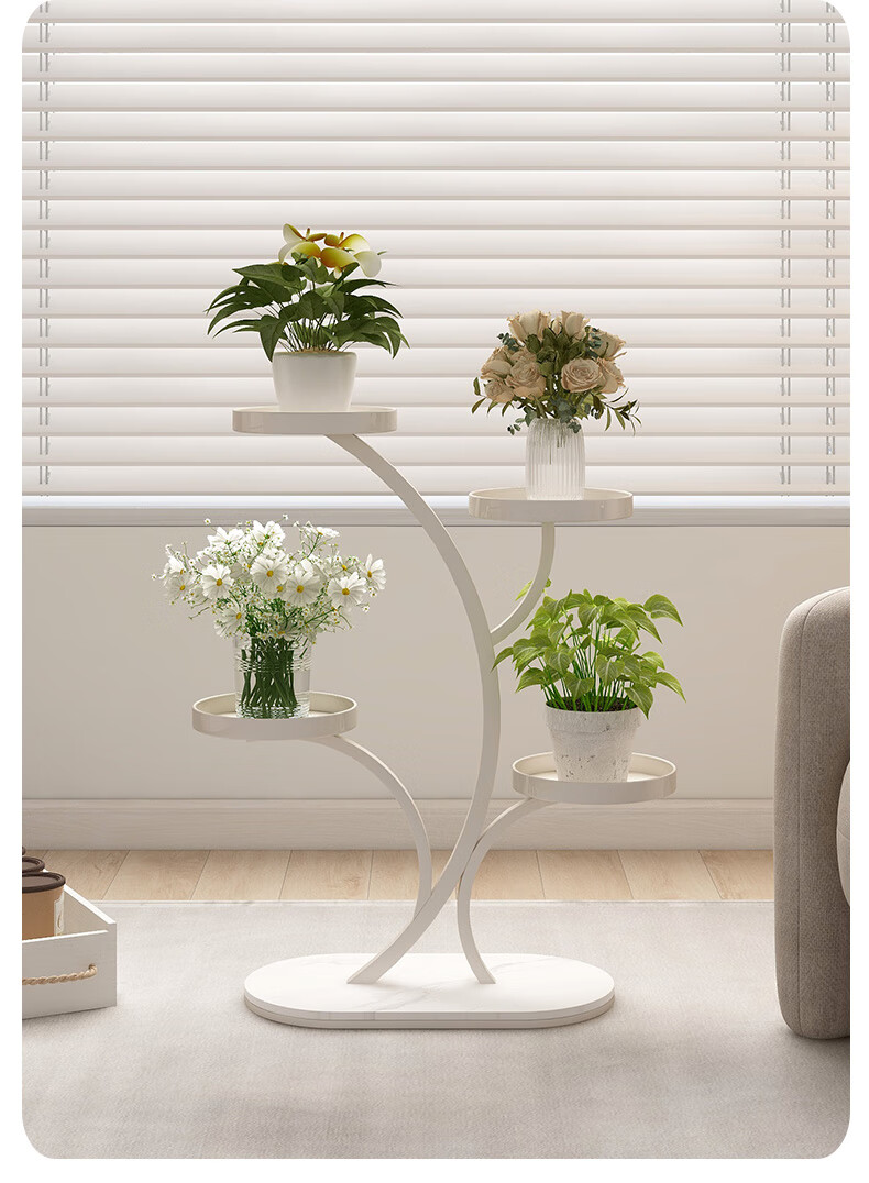 顾家家居(KUKA)现代奶油风花架客厅搭配落地花架DS3468XJ 富贵树花架奶白色四层45*70