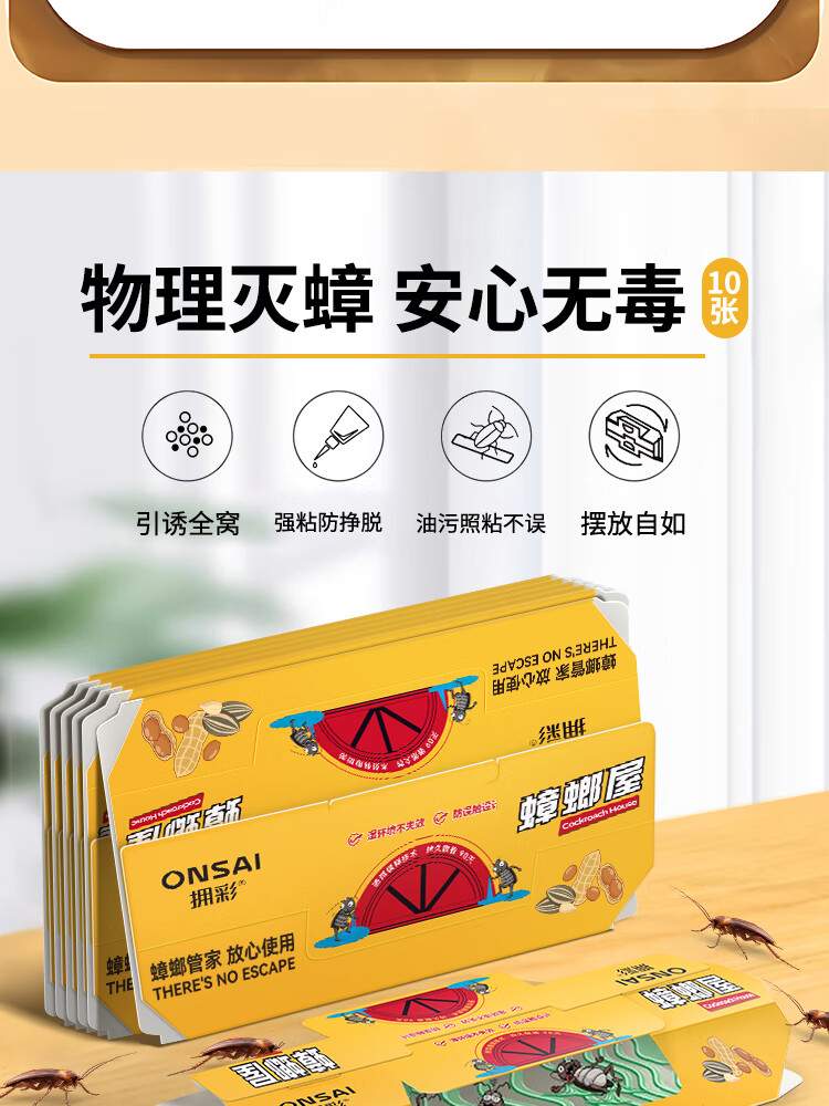 拥彩蟑螂屋10片/盒蟑螂贴家用无毒杀蟑除蟑螂药灭蟑螂神器全窝端