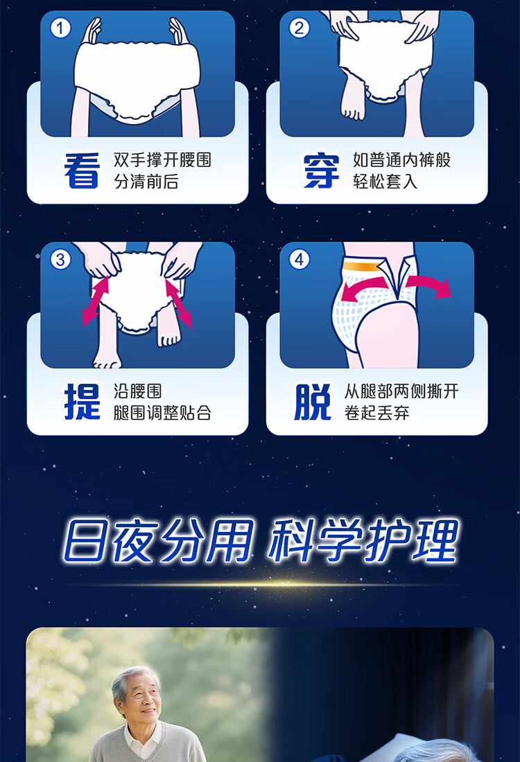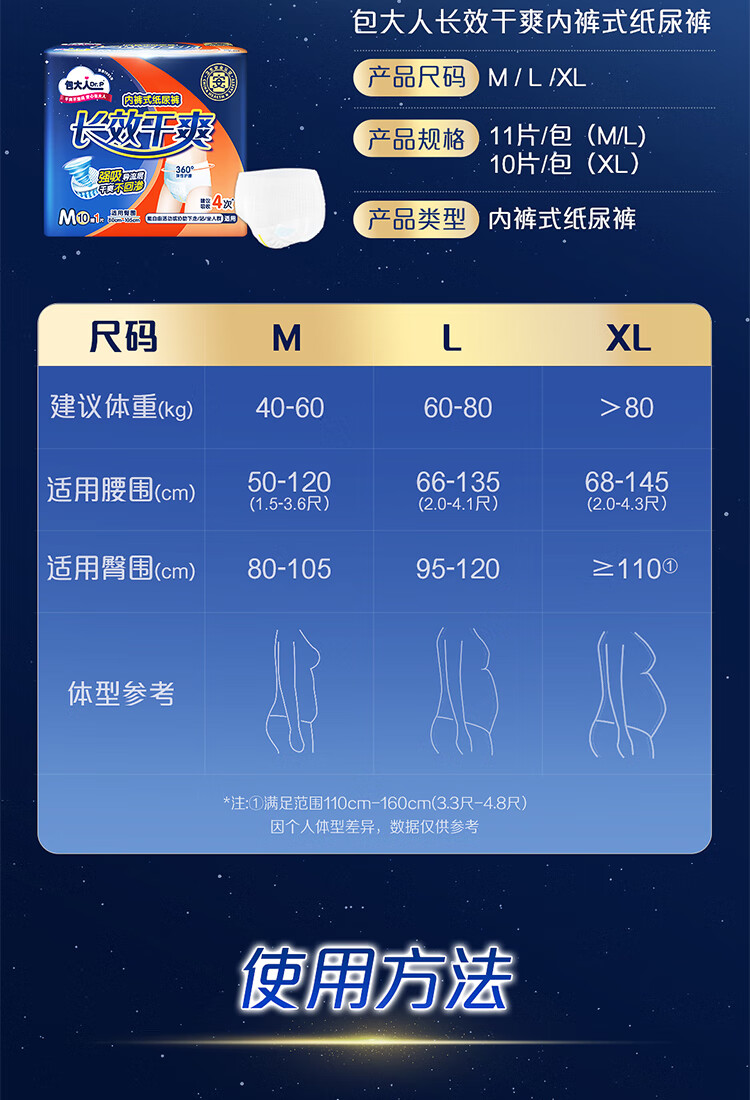 包大人长效干爽成人拉拉裤M66片腰围:50-120cm老年人产妇 内裤型纸尿裤