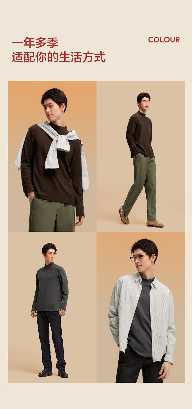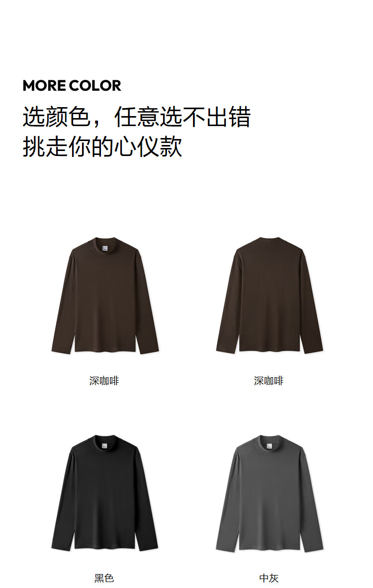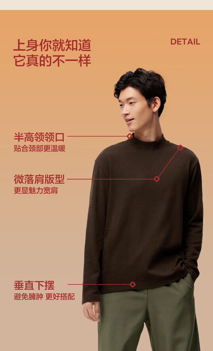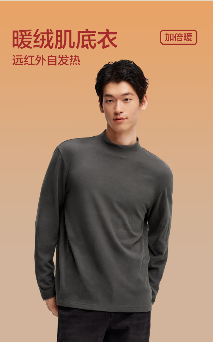 森马长袖T恤男发热半高领保暖内搭冬季纯色打底上衣109724101102