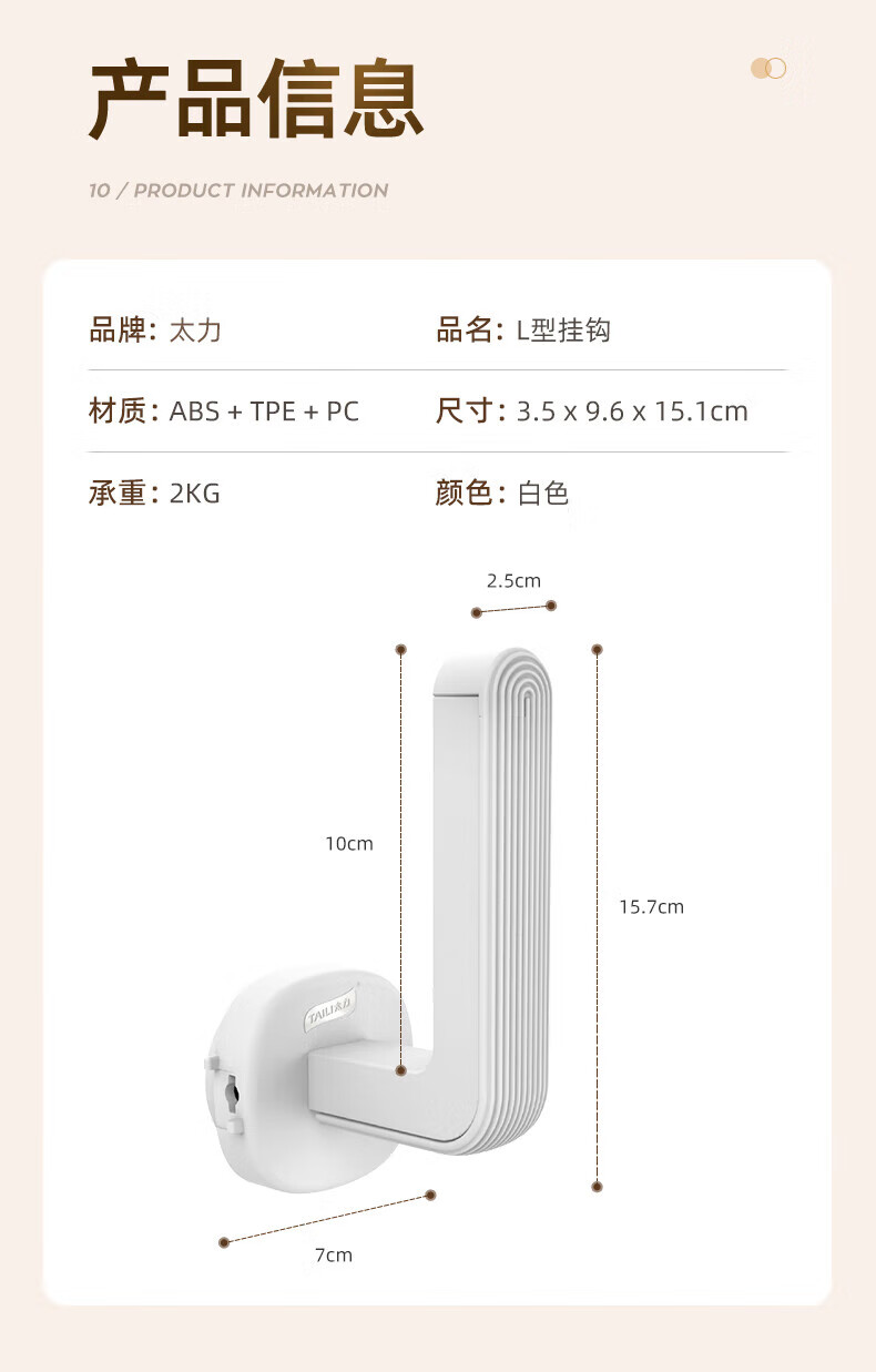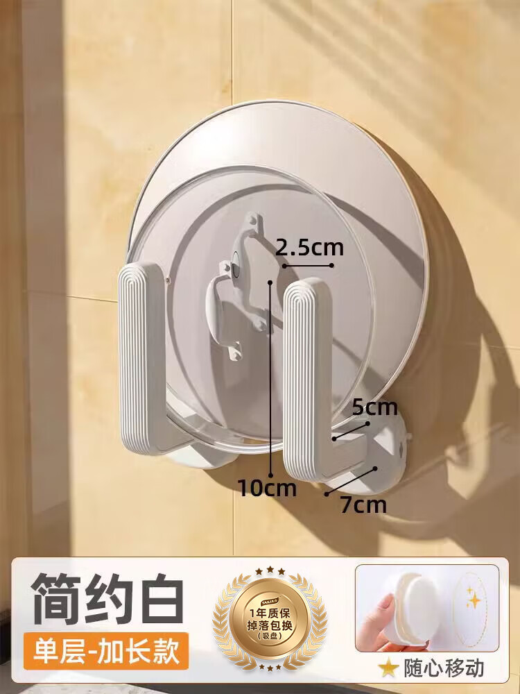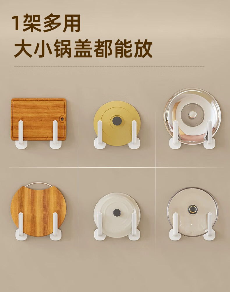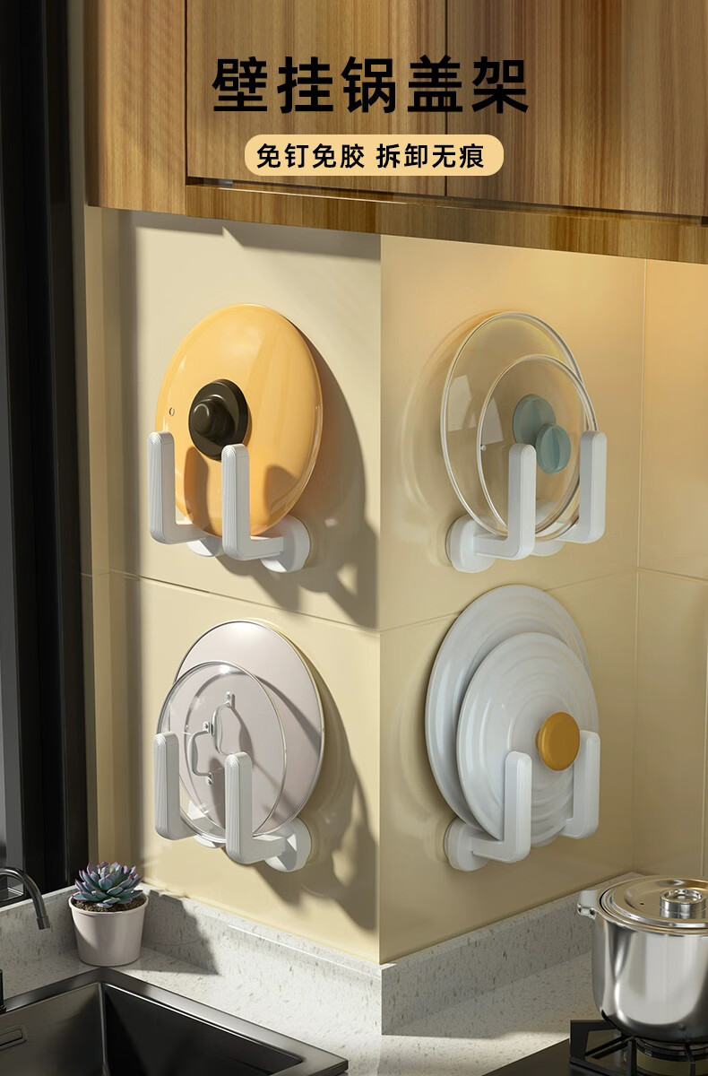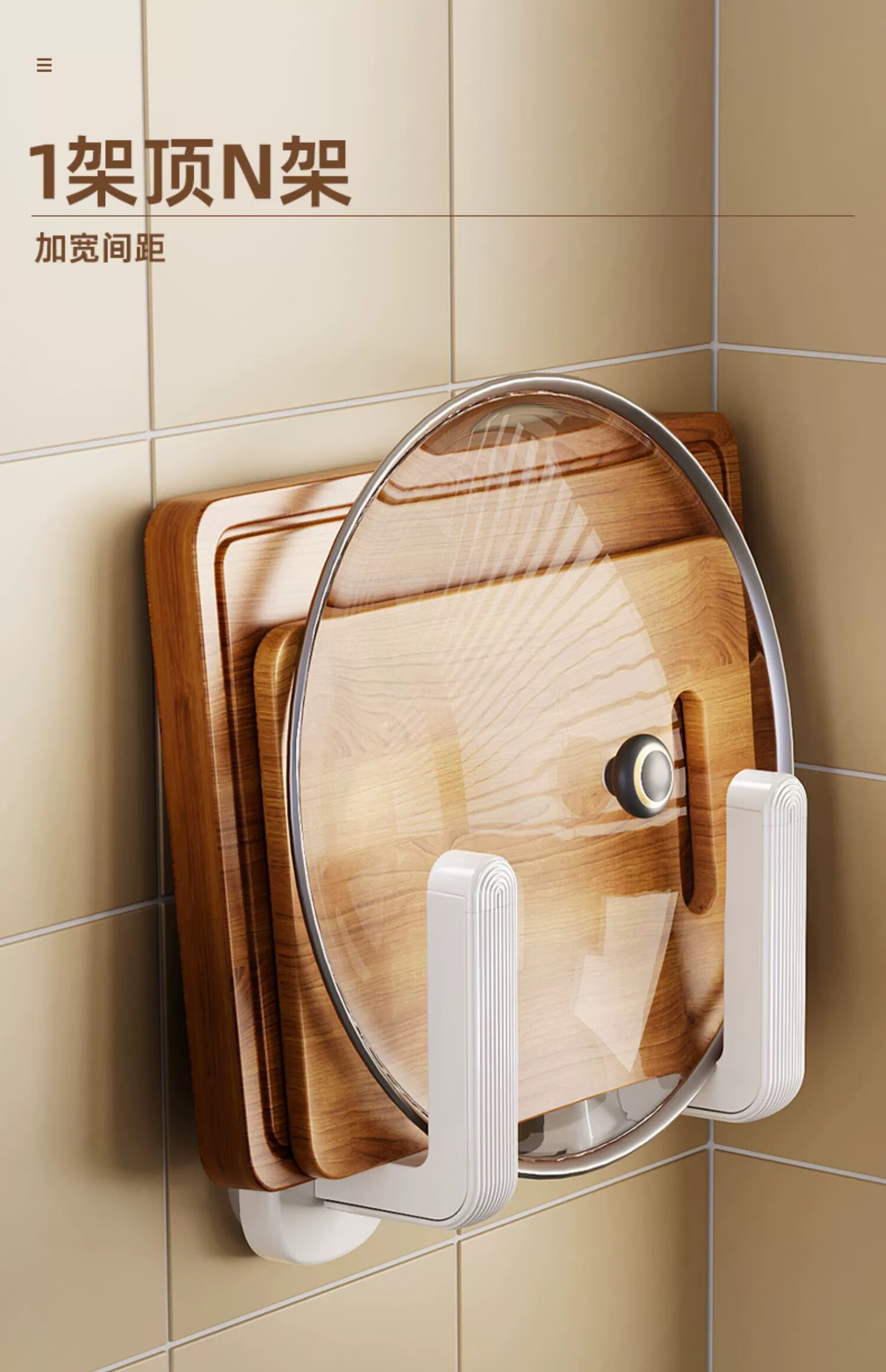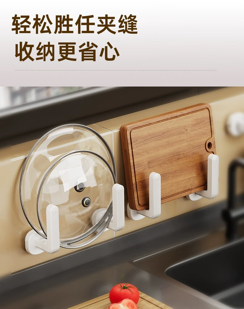 太力吸盘锅盖置物架 锅盖架壁挂免打孔厨房挂钩置物架 砧板架L型2件套