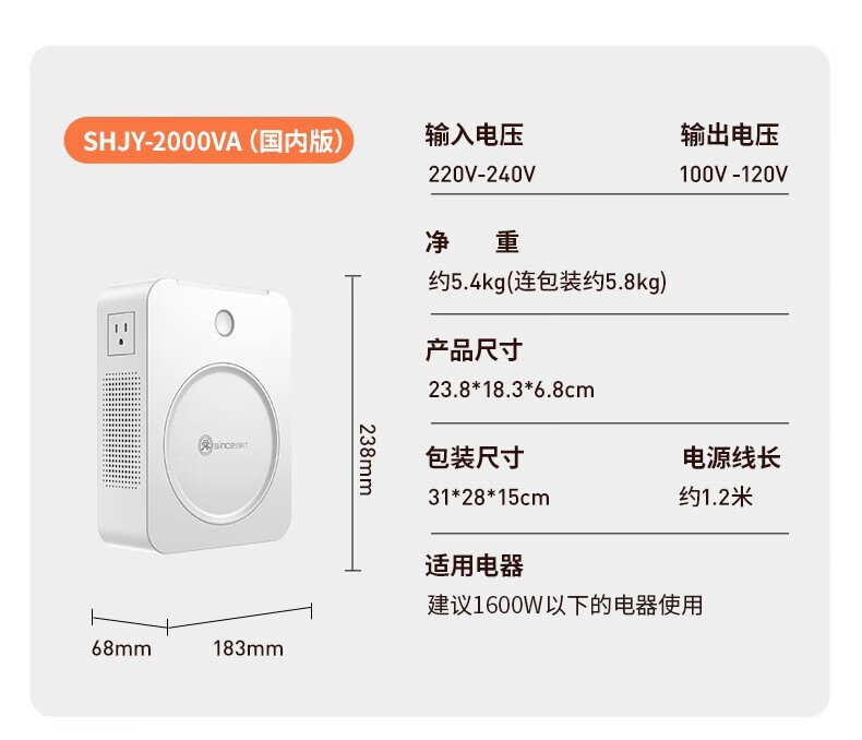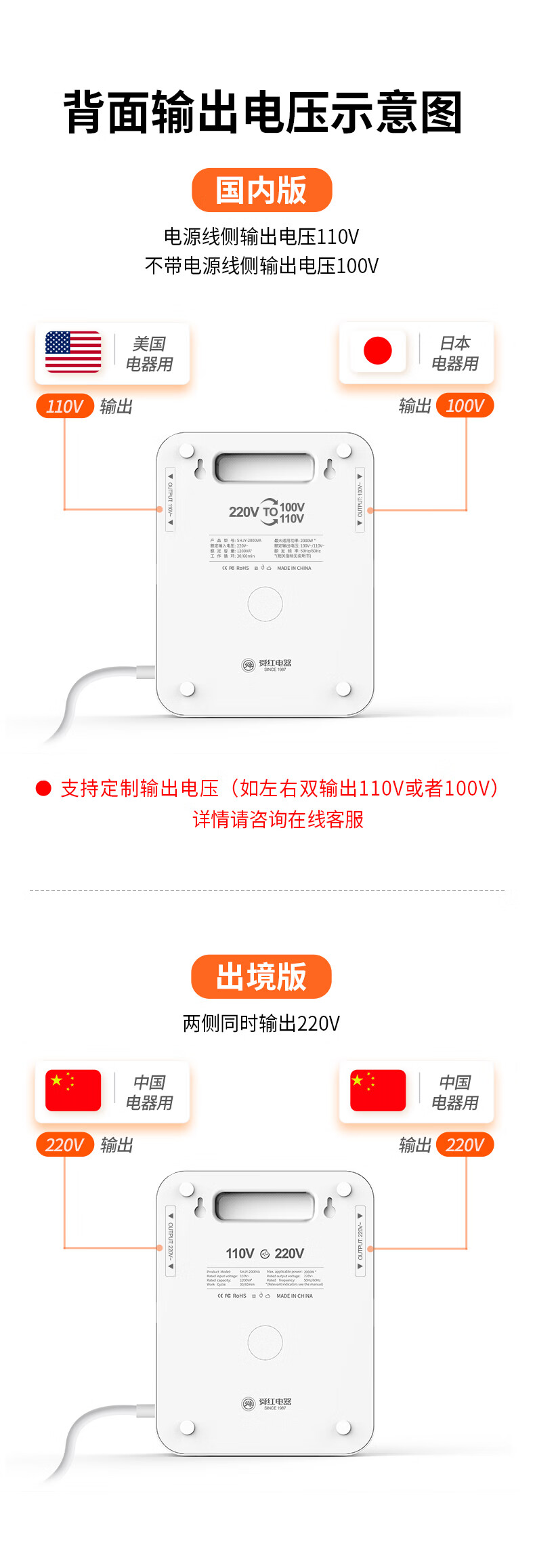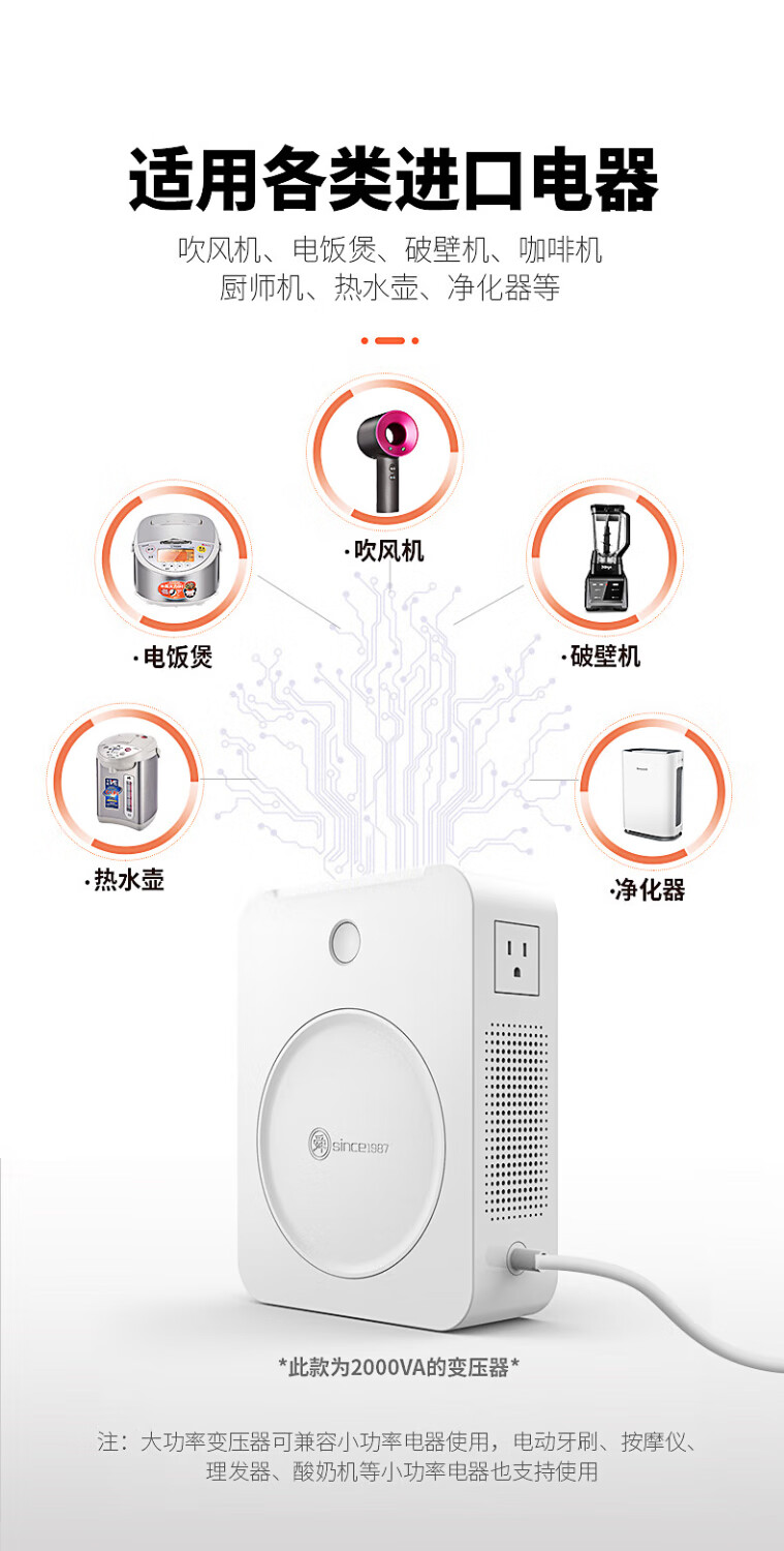 舜 变压器220v转110v日本220v转100v大功率2000w瓦电源电压转换器N2