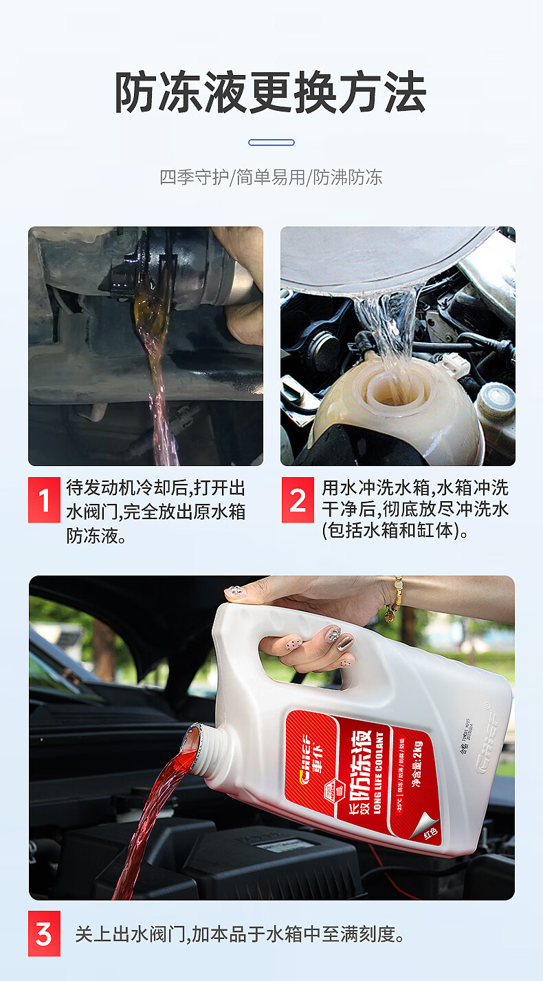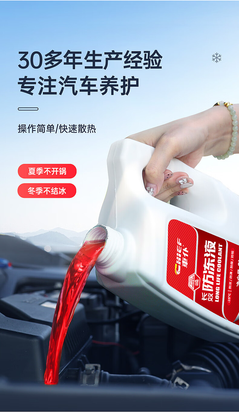 车仆有机长效防冻液专业配方-25℃发动机冷却液红色绿色长效水箱宝