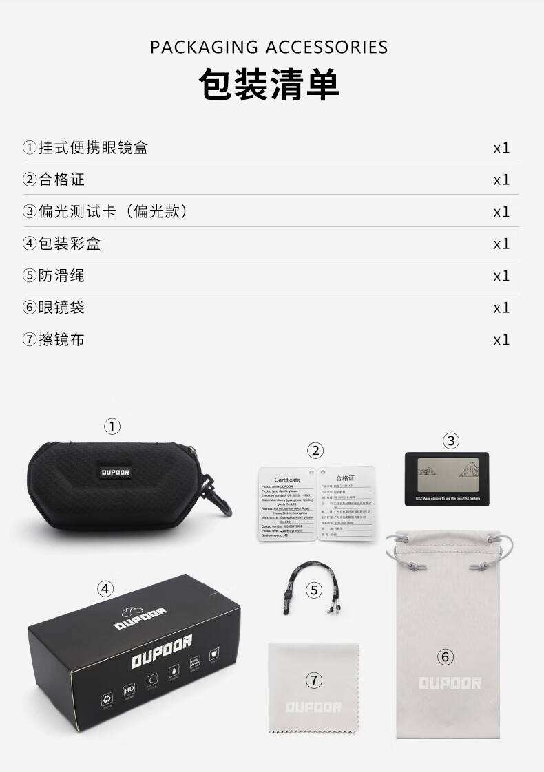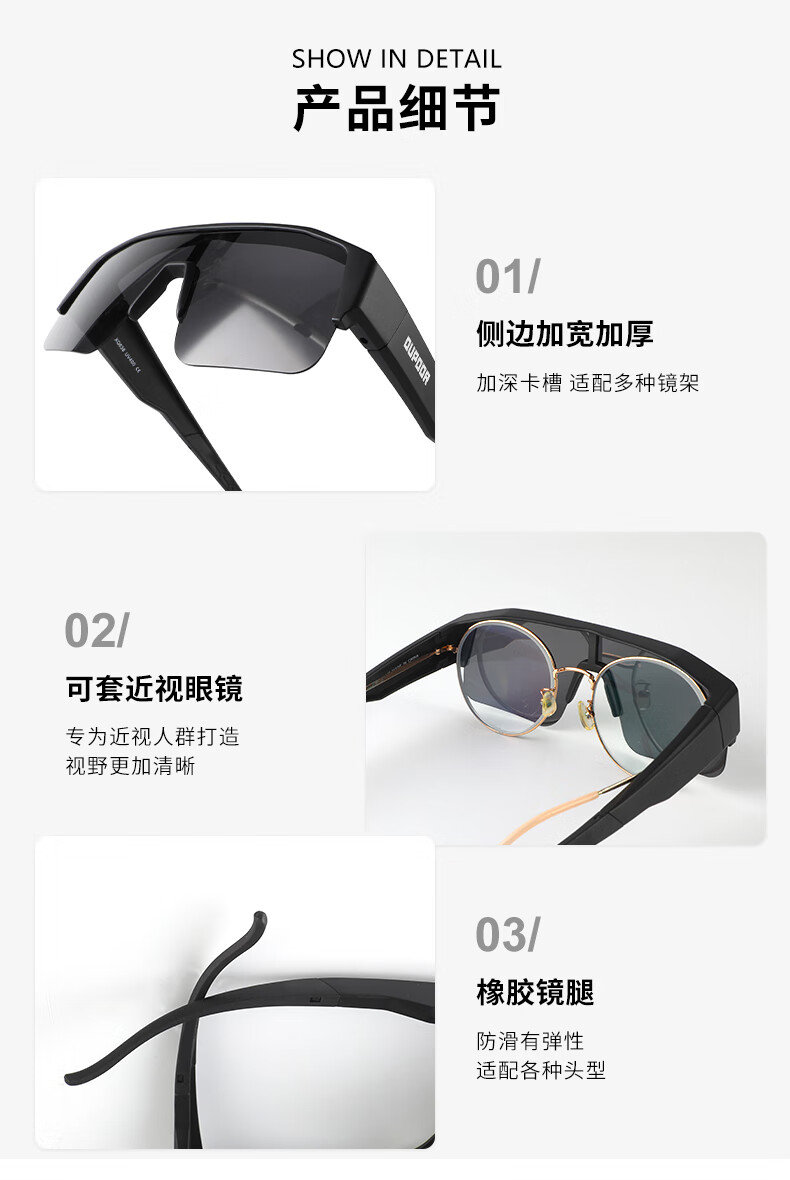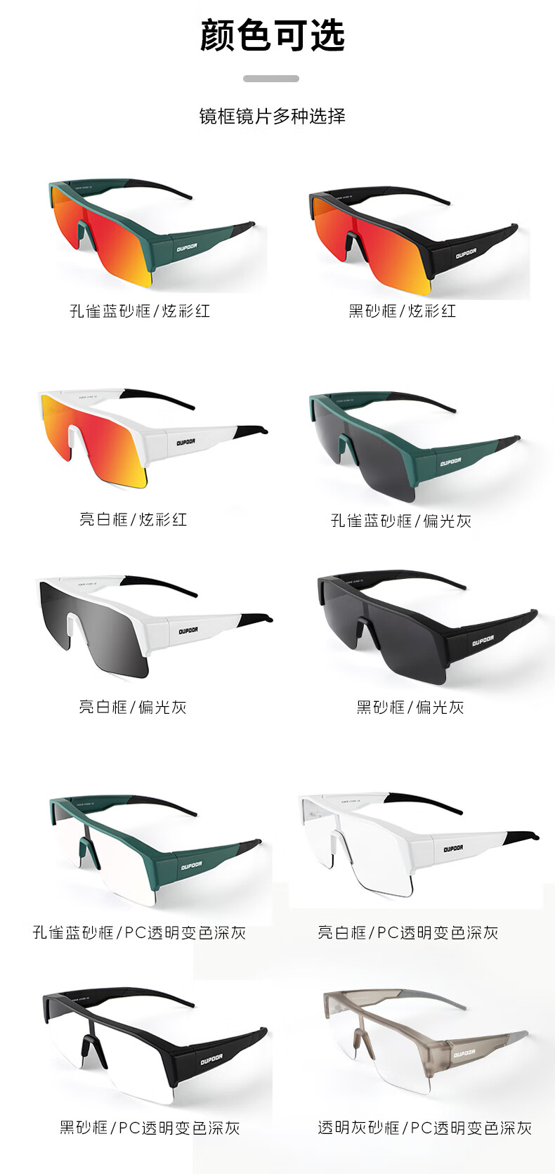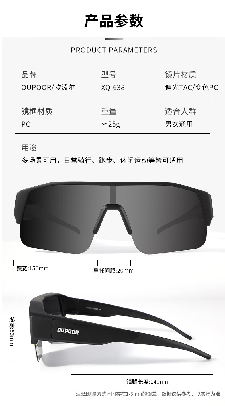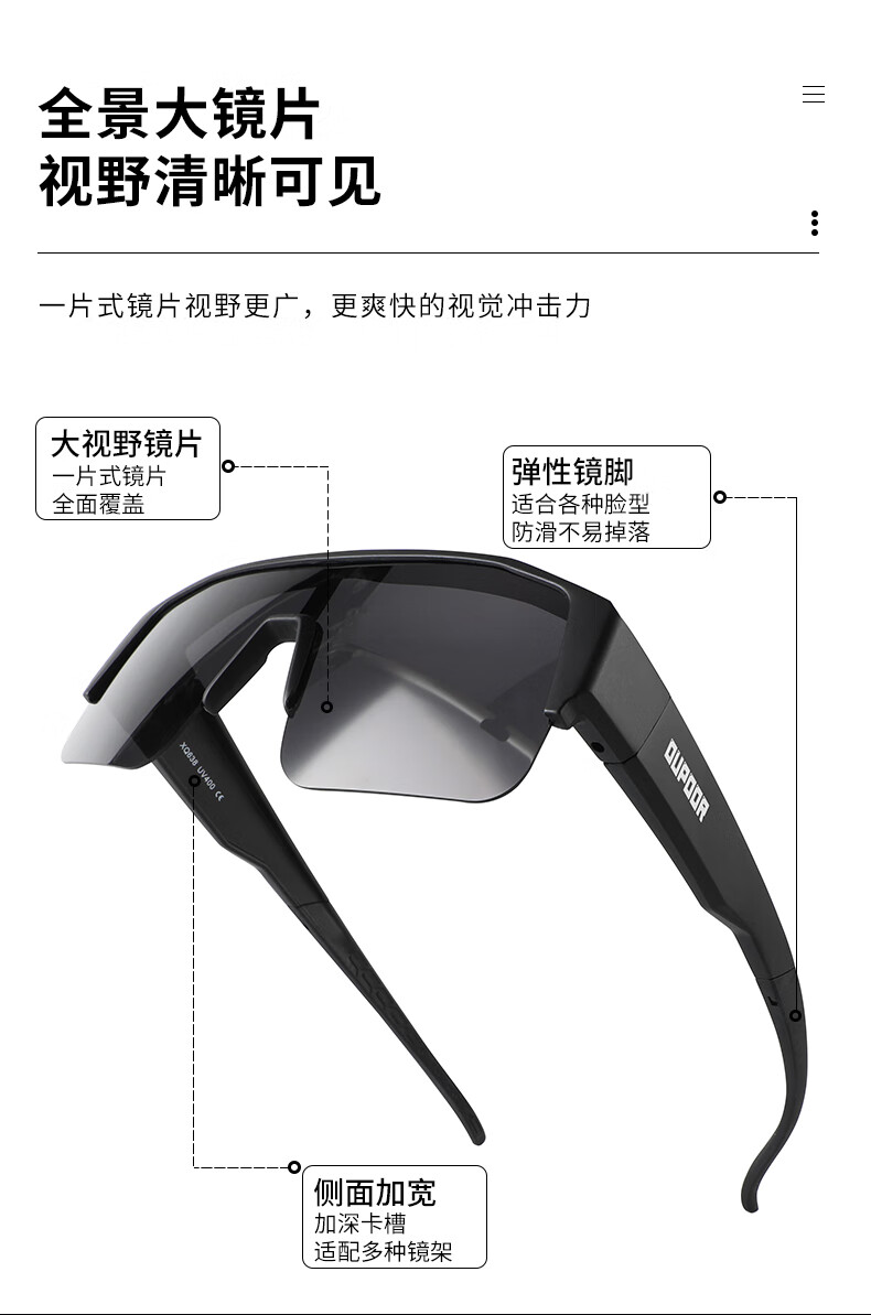 OUPOOR欧泼尔骑行眼镜近视套镜墨镜运动跑步登山开车钓鱼偏光护目防风太阳镜