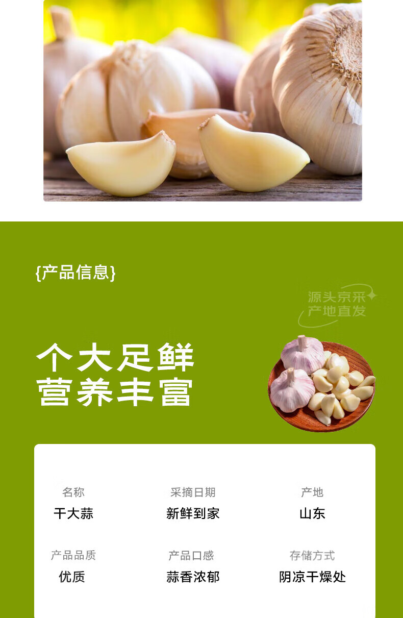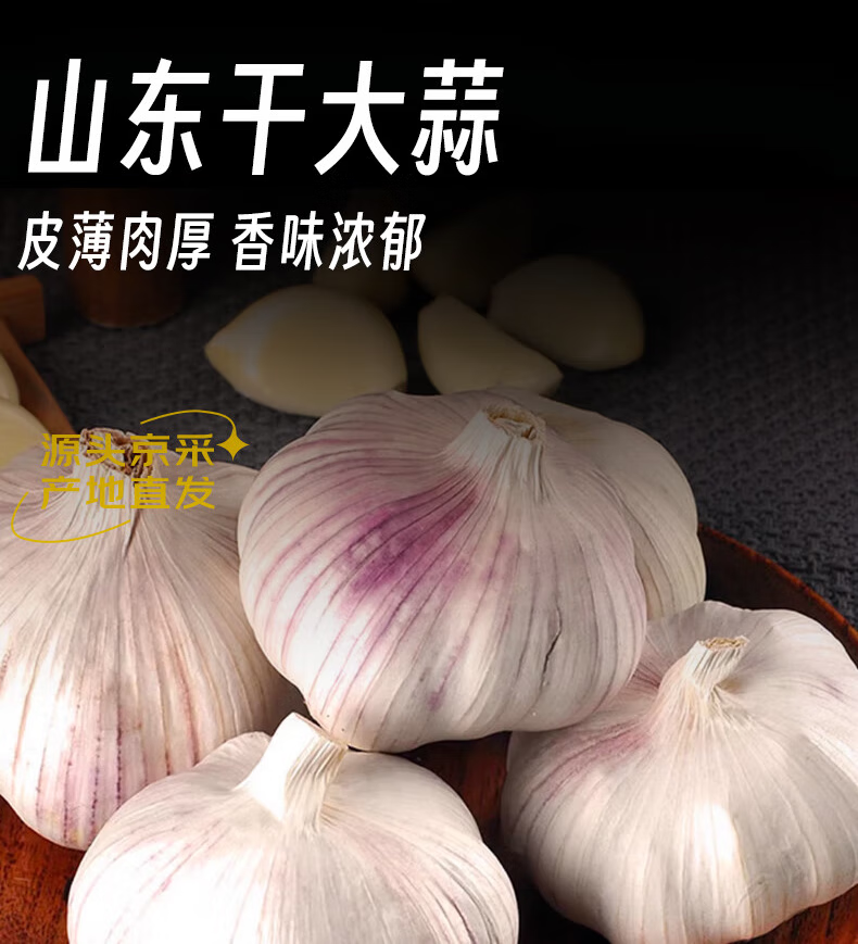 京鲜生山东金乡大蒜带皮新鲜干蒜净重2斤单果5.5cm起 源头直发包邮
