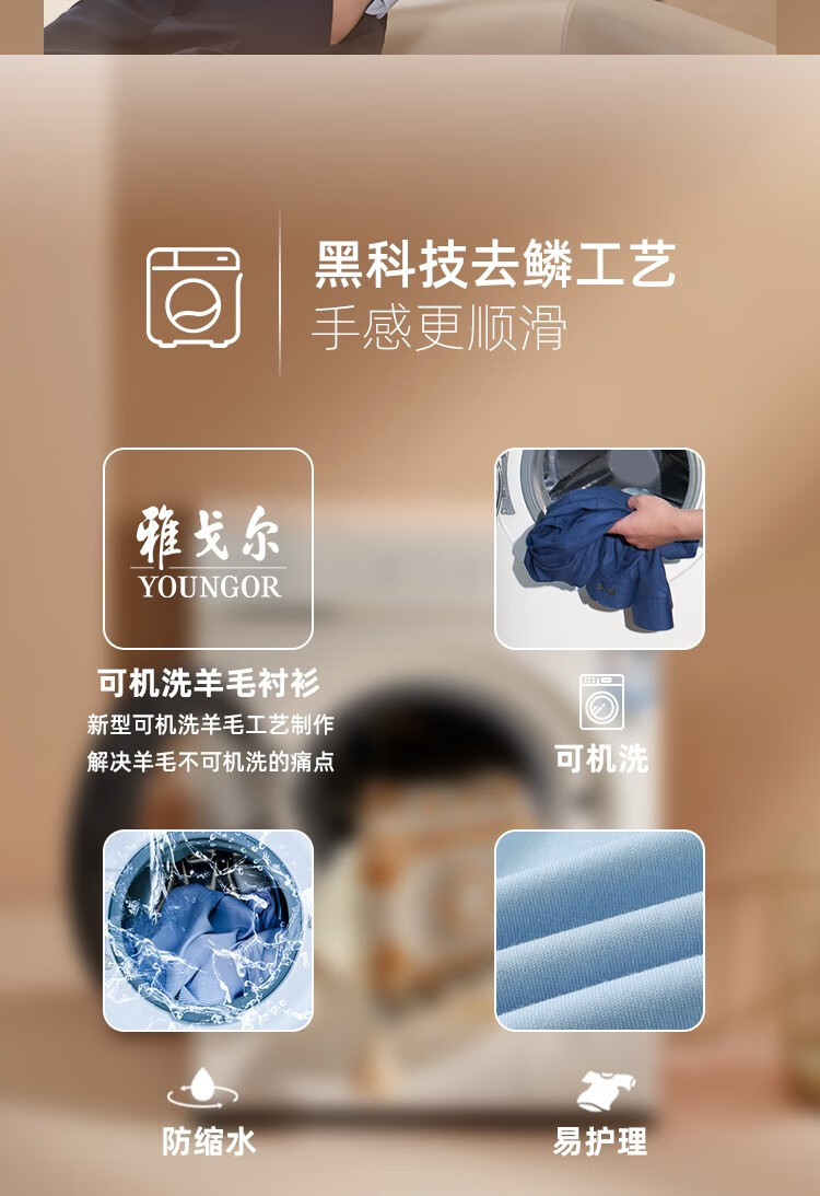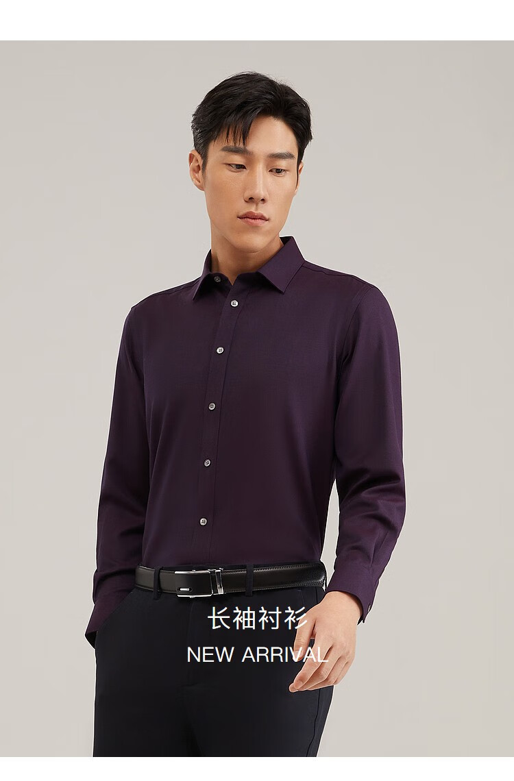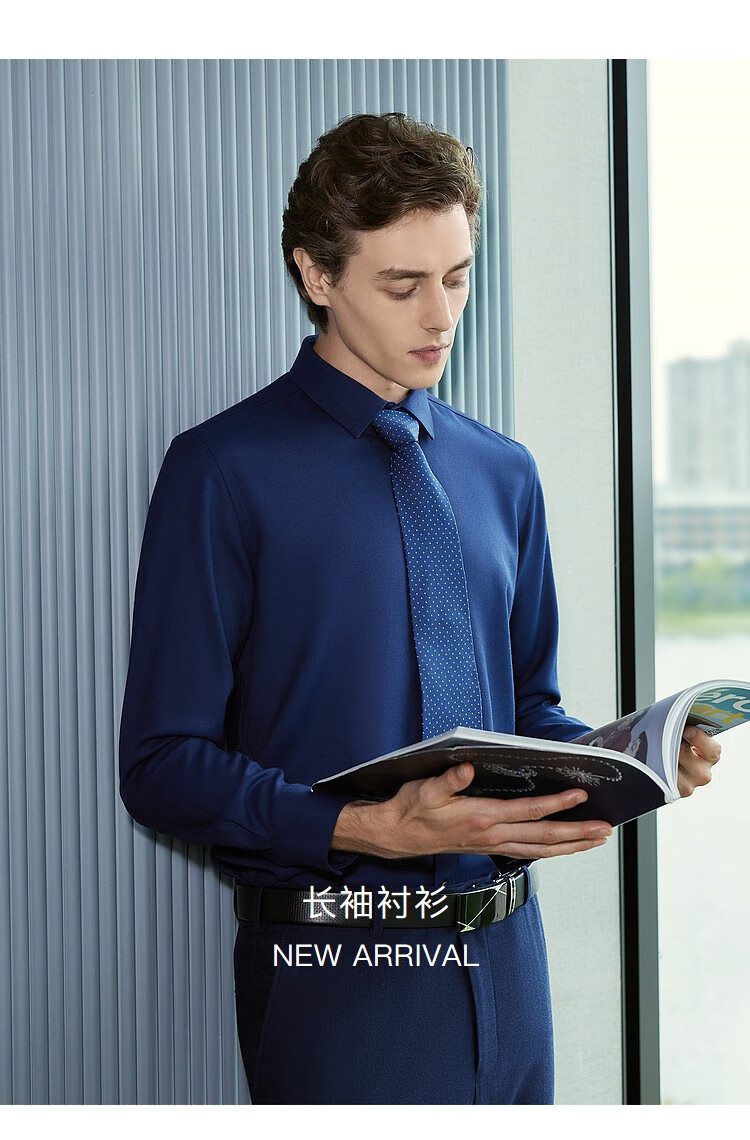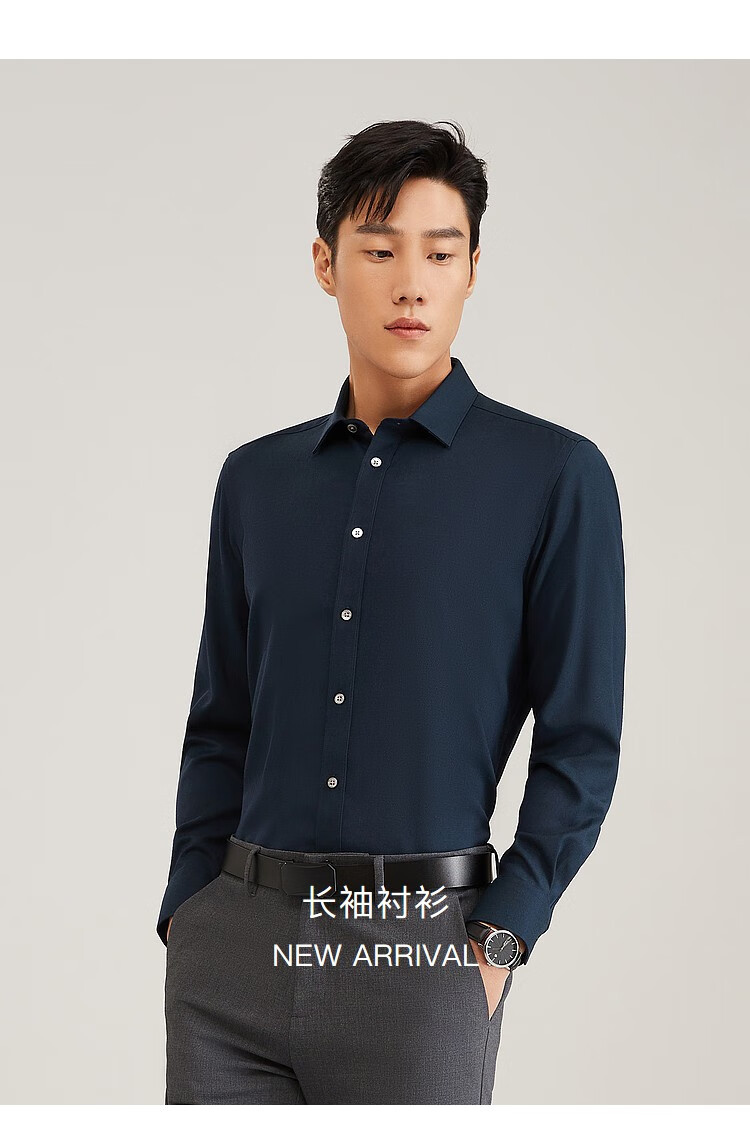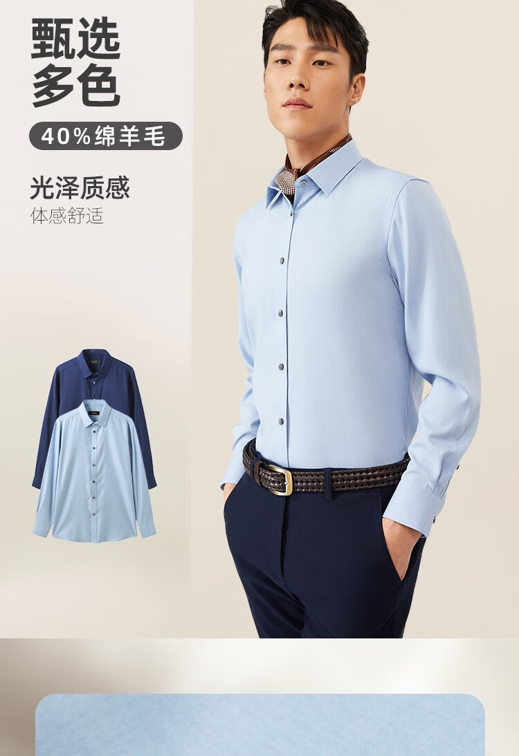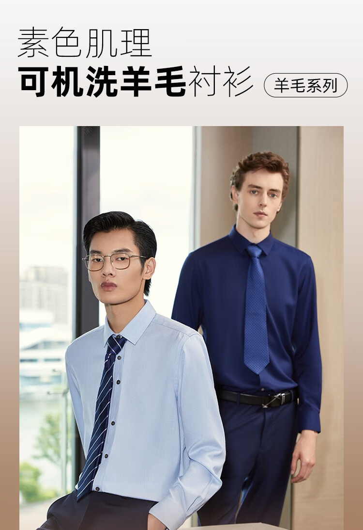 雅戈尔【含40%羊毛可机洗】衬衫男长袖秋冬新高端保暖舒适衬衣商务休闲 深绿 42