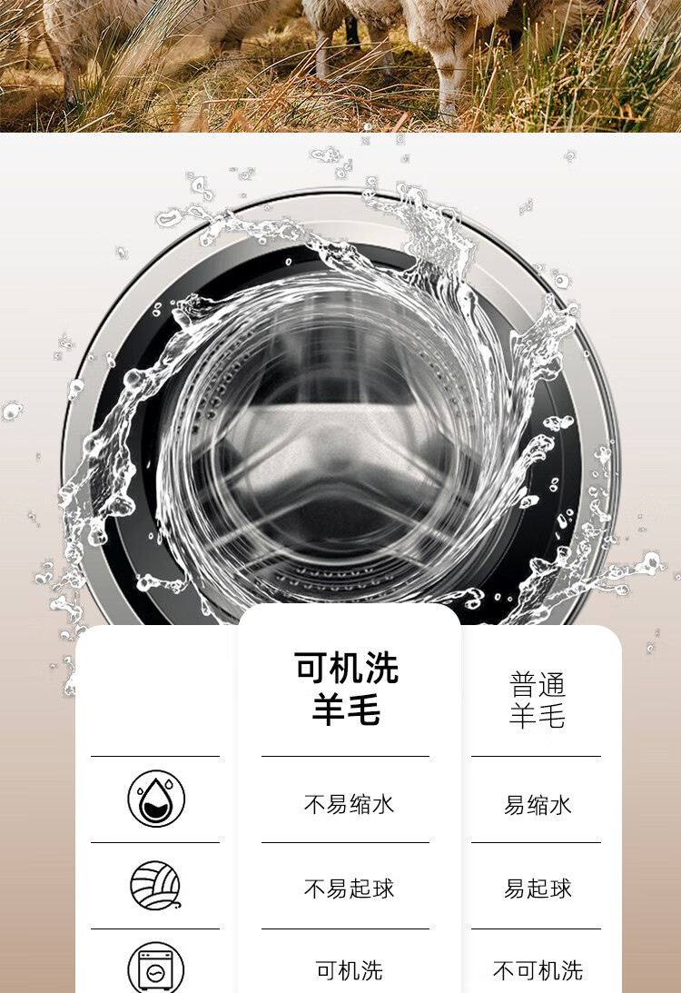 恒源祥【羊毛+羊绒】无缝一体圆领羊毛衫上衣女秋冬基础针织衫女装毛衣 杏色 S /160/84A