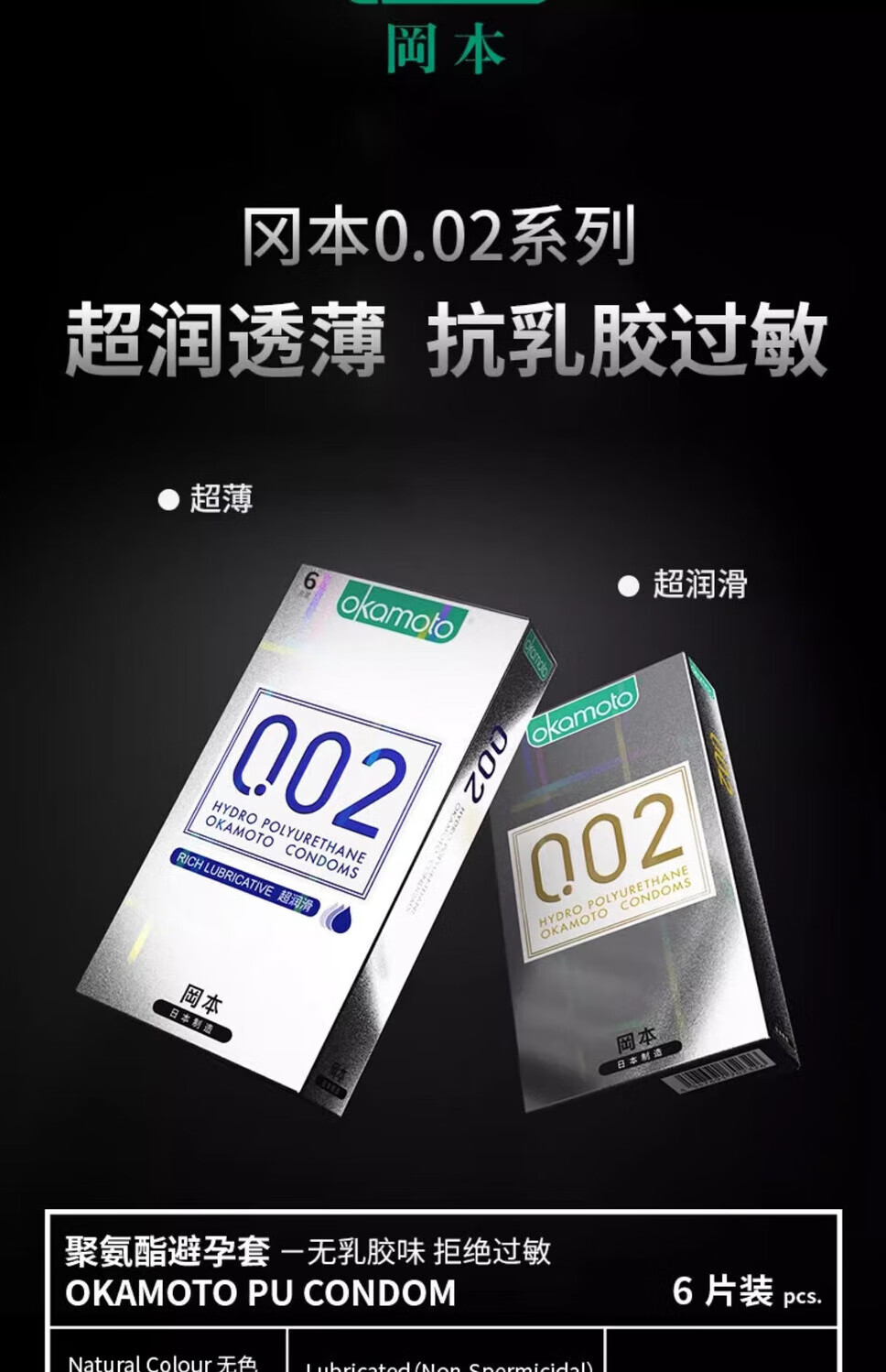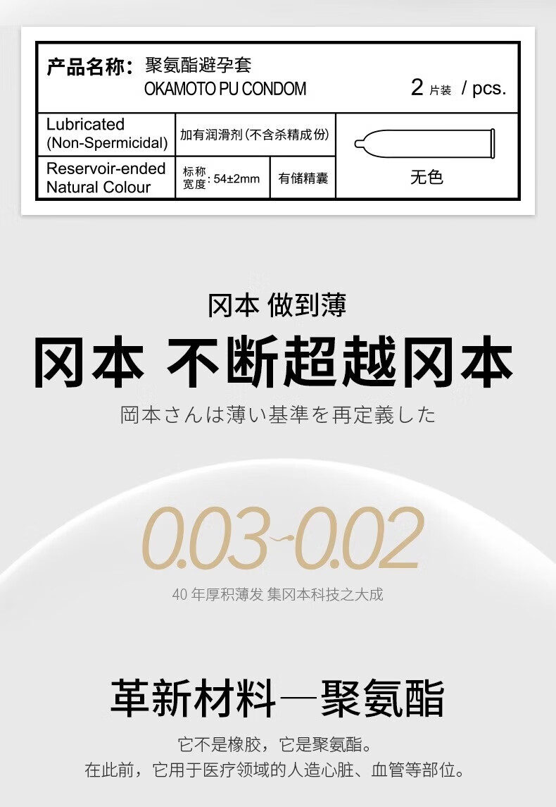 冈本(OKAMOTO)002超润滑型001套0.02男大号聚氨酯55号日本进口bytt 【大号55】冈本0.02聚氨酯2只