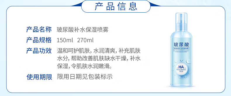 【精选直发】玻尿酸保湿喷雾保湿锁水面部肌肤护理爽肤水可 150ml