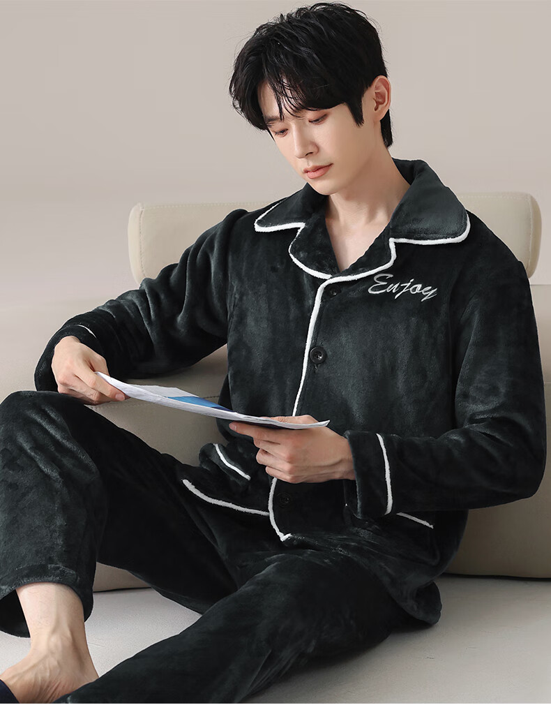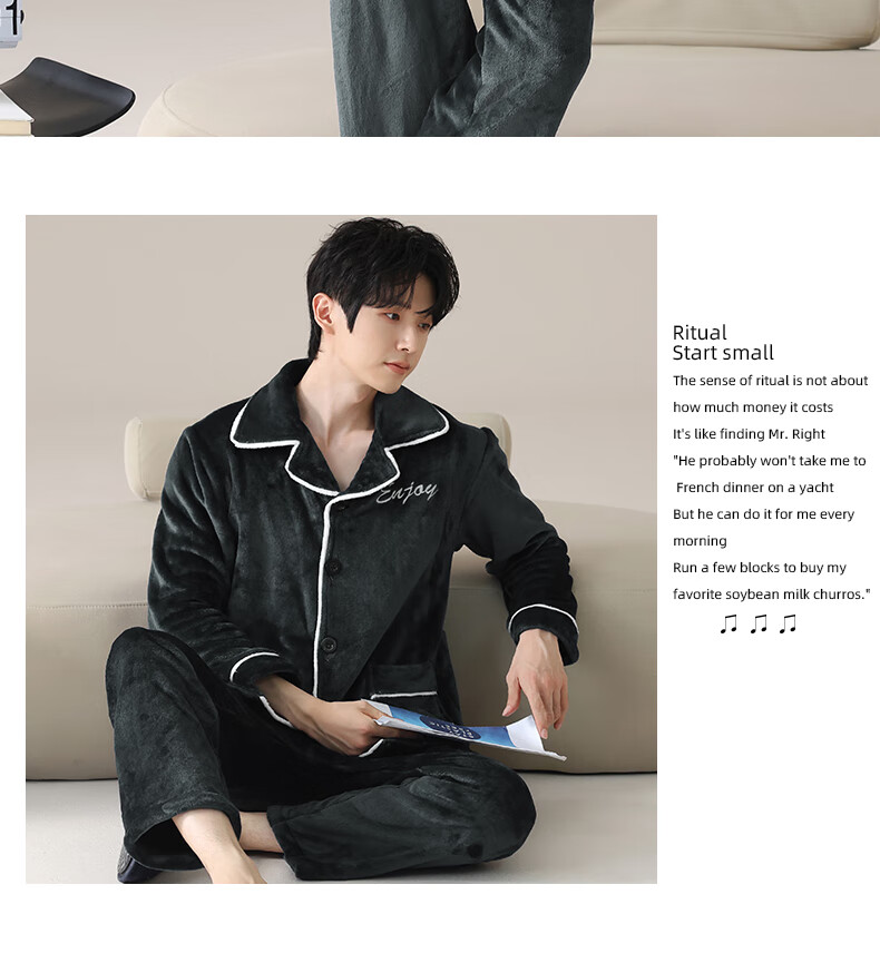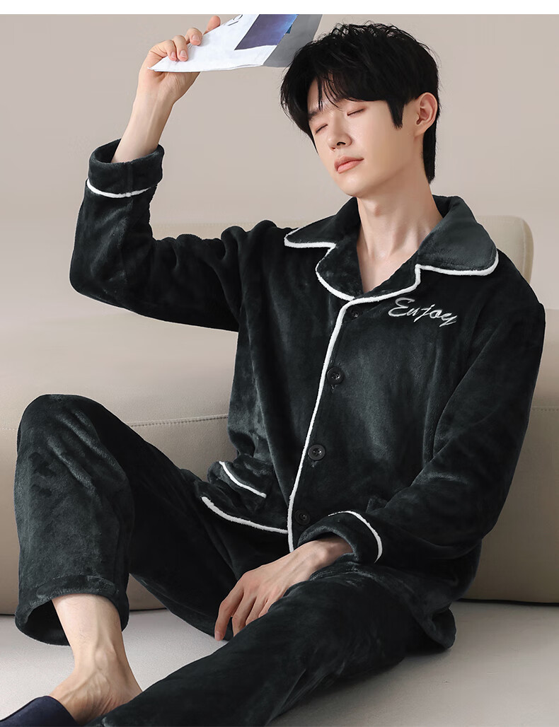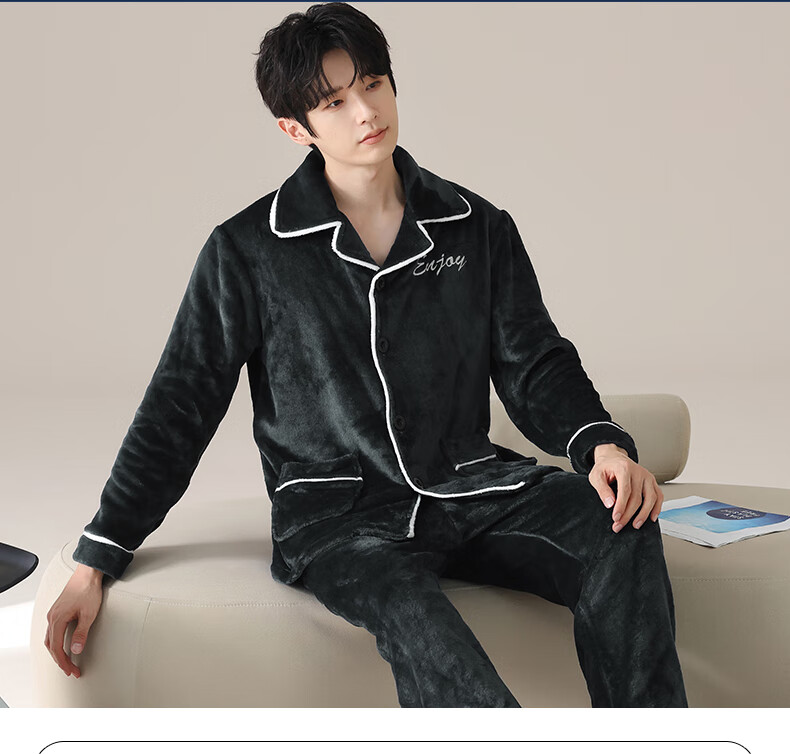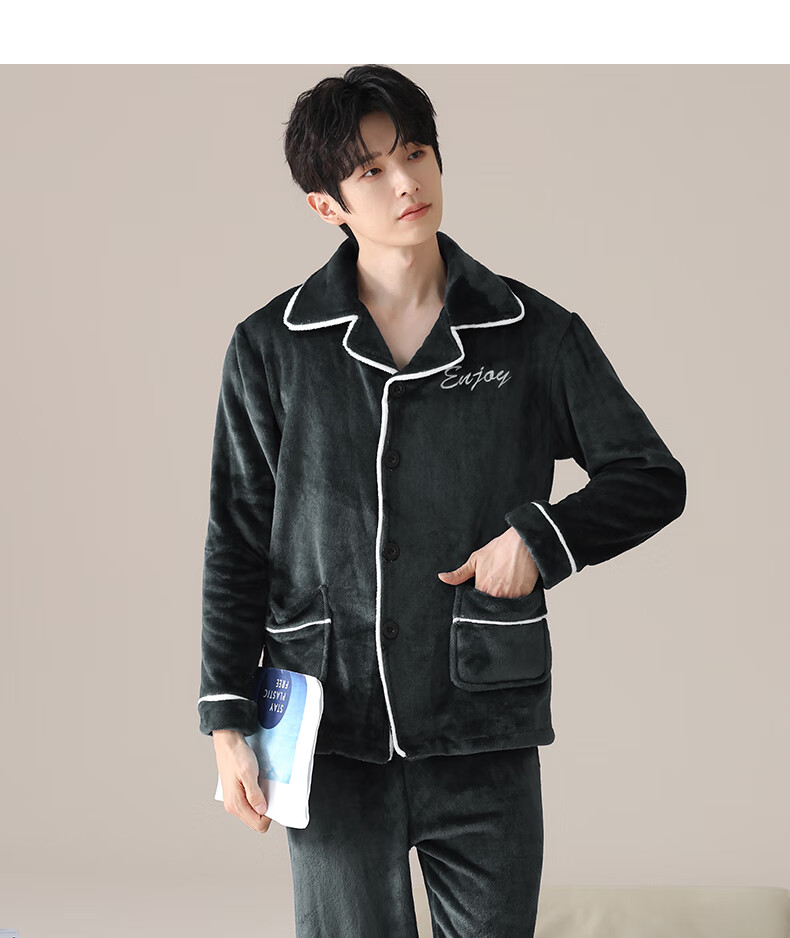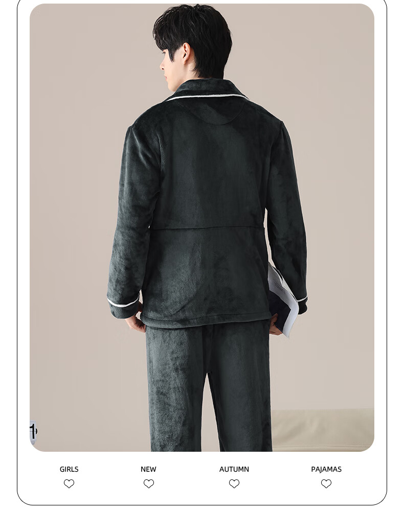 猫人珊瑚绒男士睡衣男冬季2025新款加绒加厚可外穿法兰绒家居服冬 WR1523男卡其色 3XL
