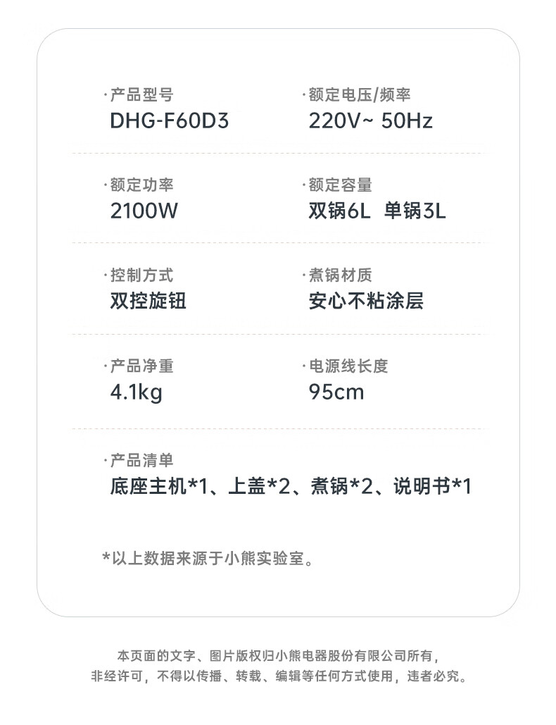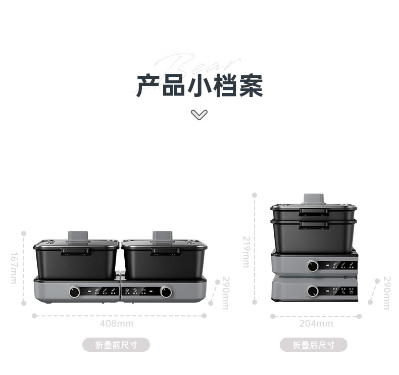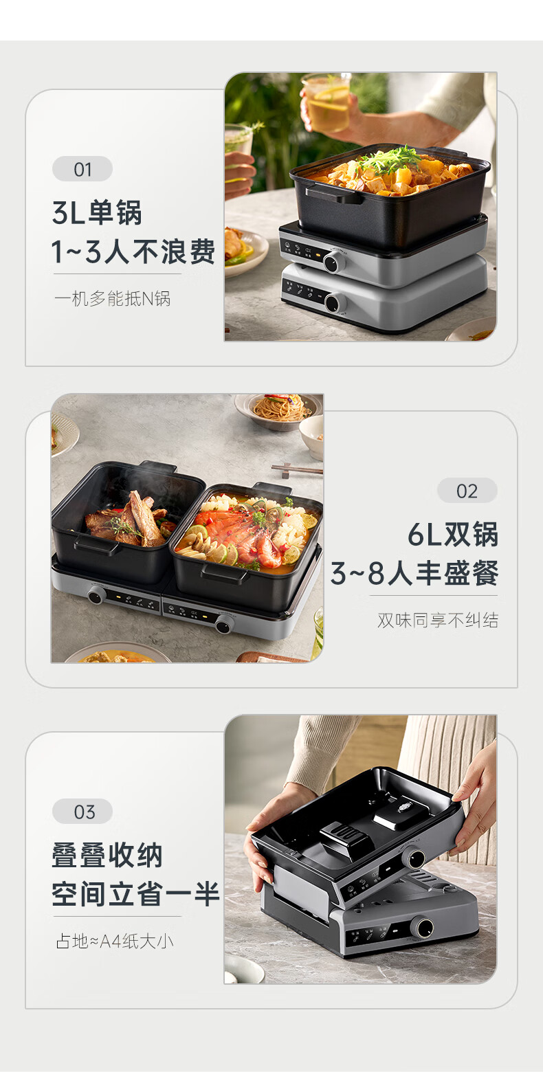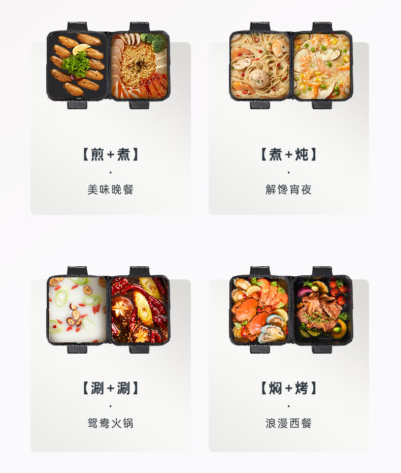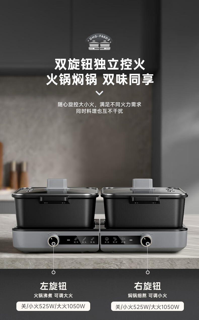 小熊(Bear)电火锅火锅专用锅分区控温鸳鸯锅家用分体多功能一锅多用电热锅独立双锅F60D3 6L叠叠锅1.0火锅版