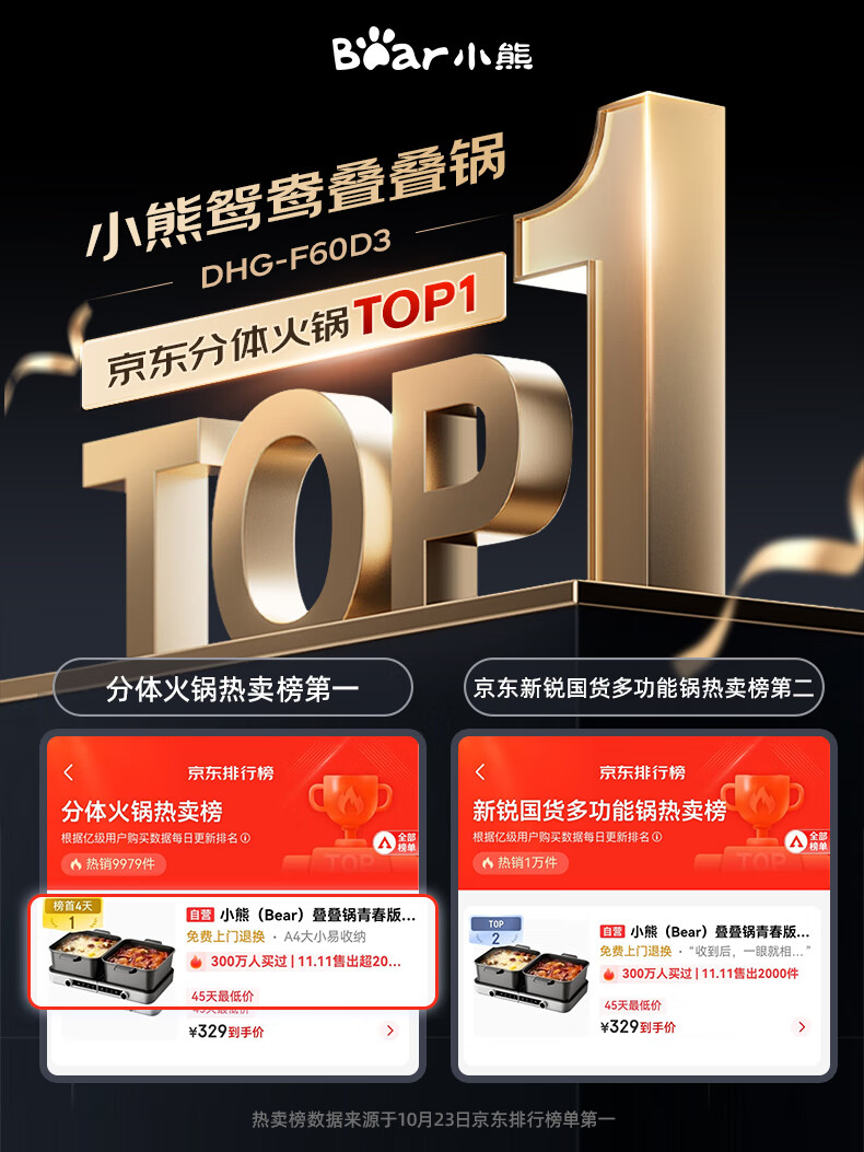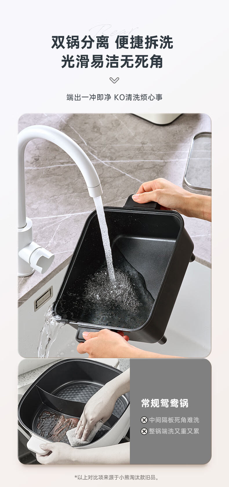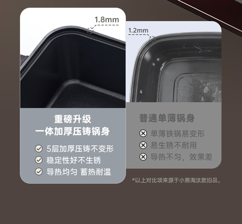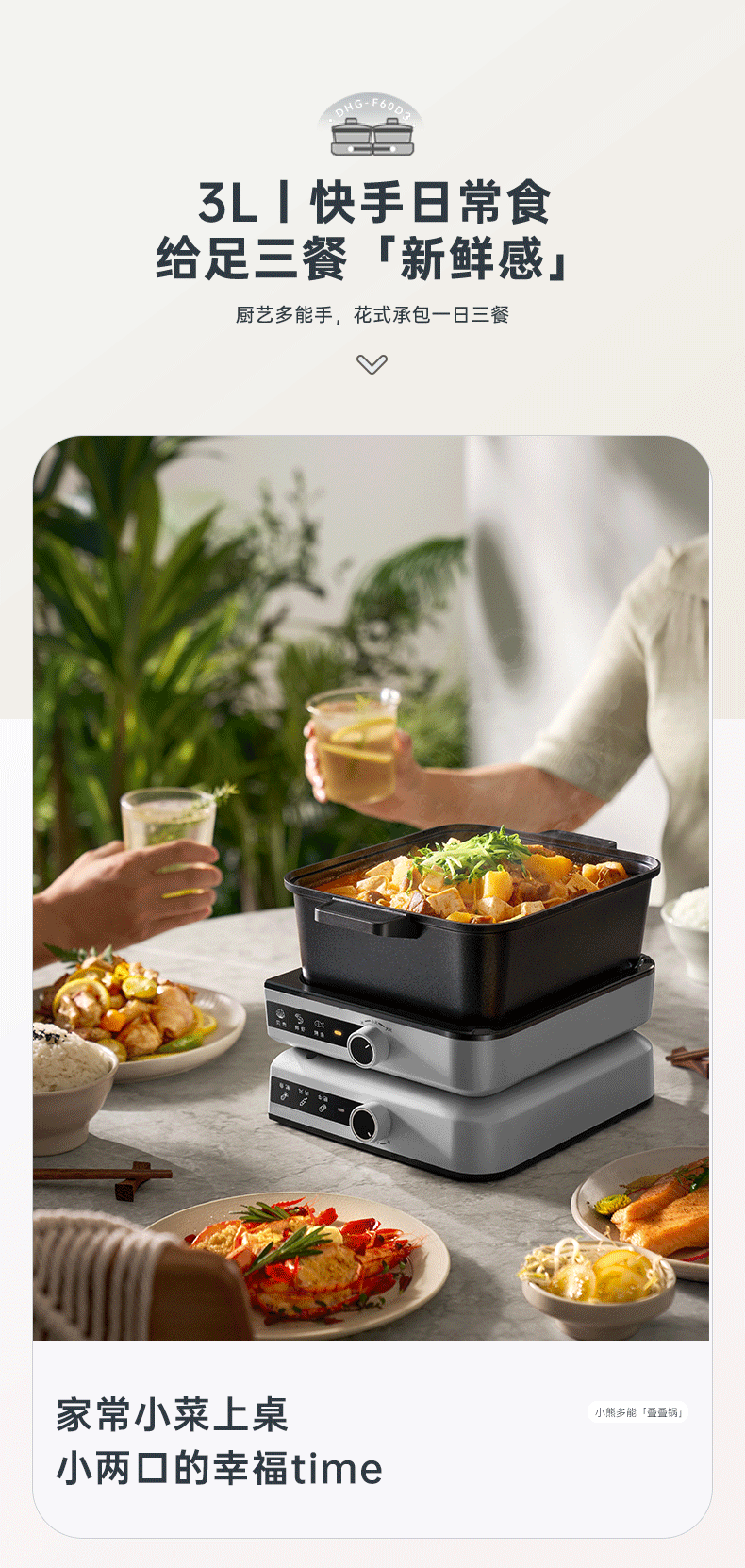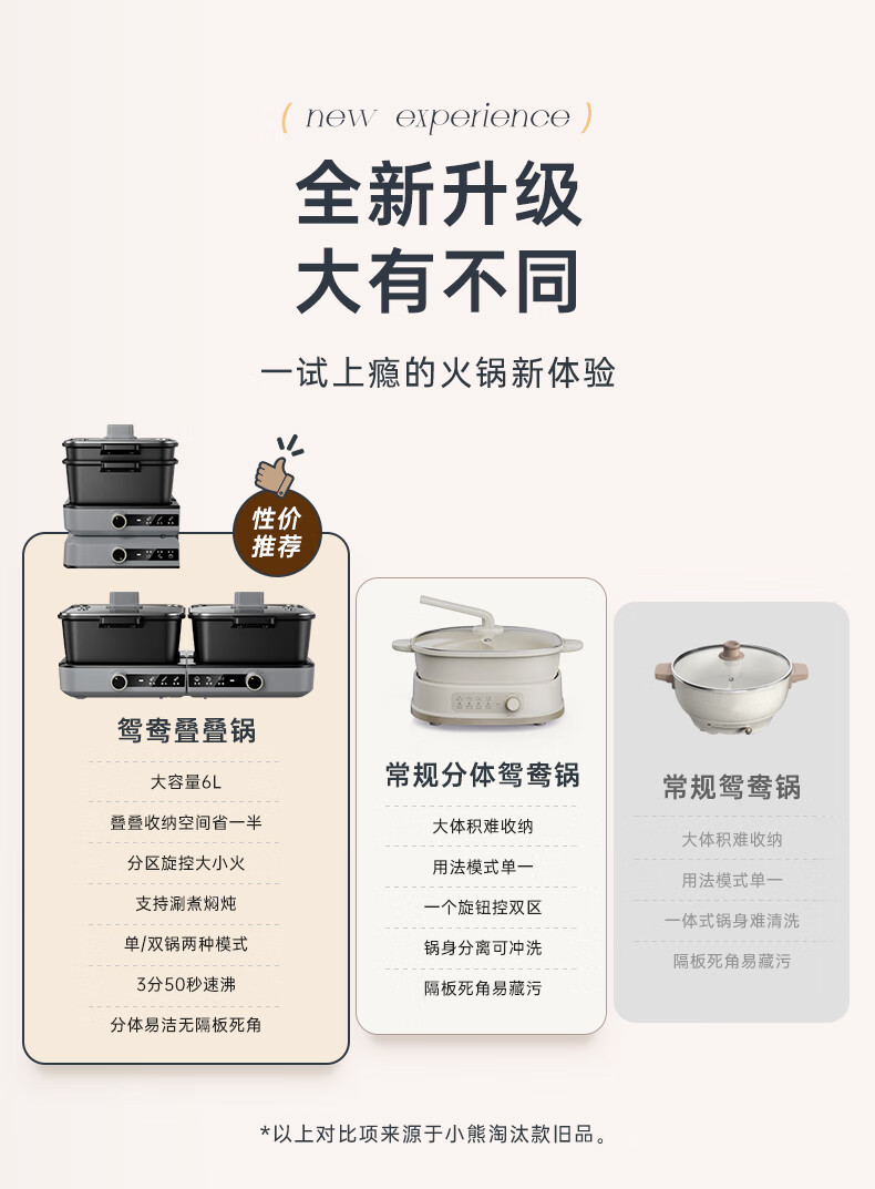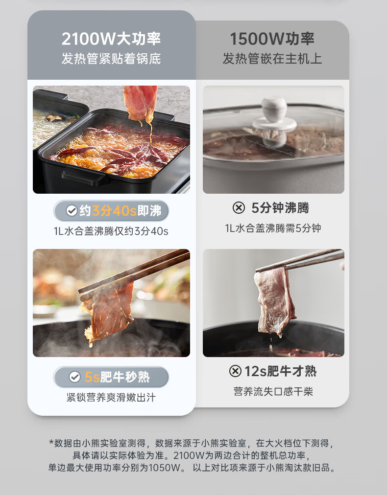 小熊(Bear)电火锅火锅专用锅分区控温鸳鸯锅家用分体多功能一锅多用电热锅独立双锅F60D3 6L叠叠锅1.0火锅版