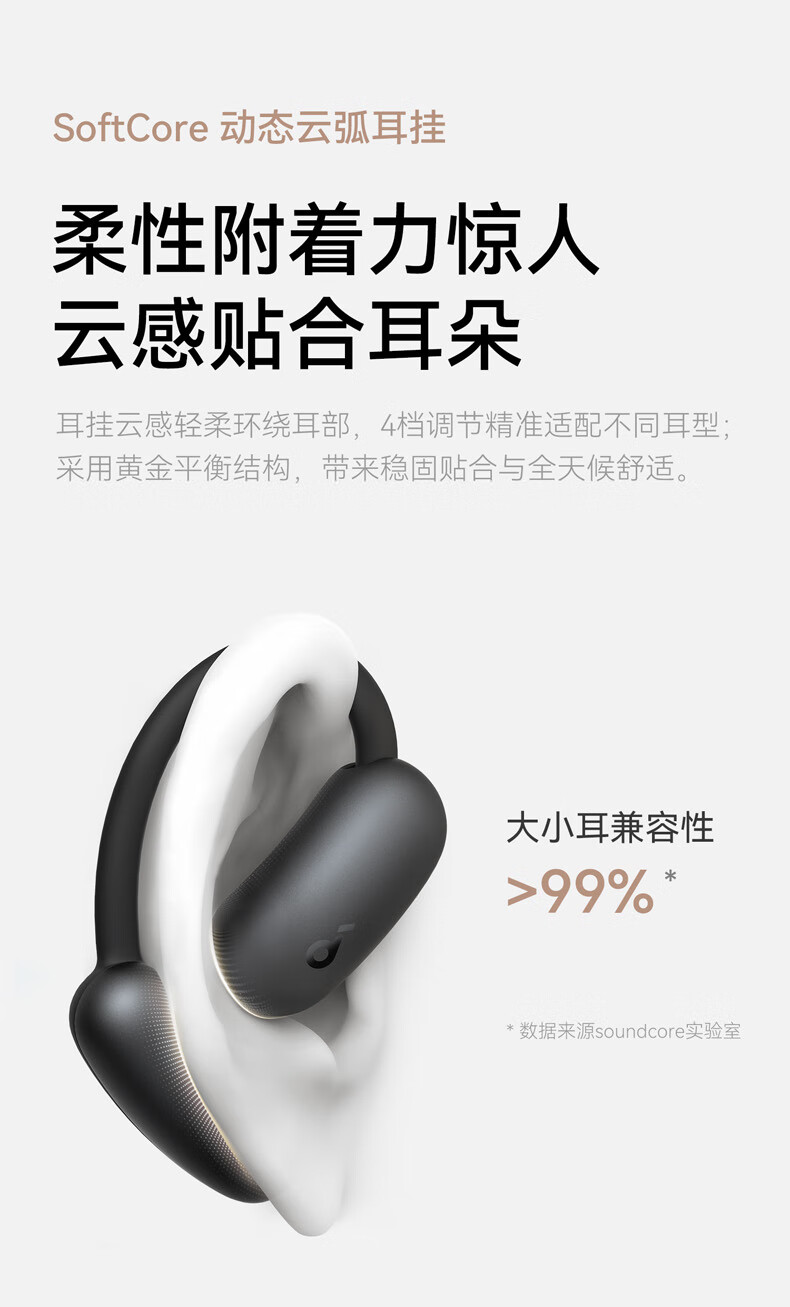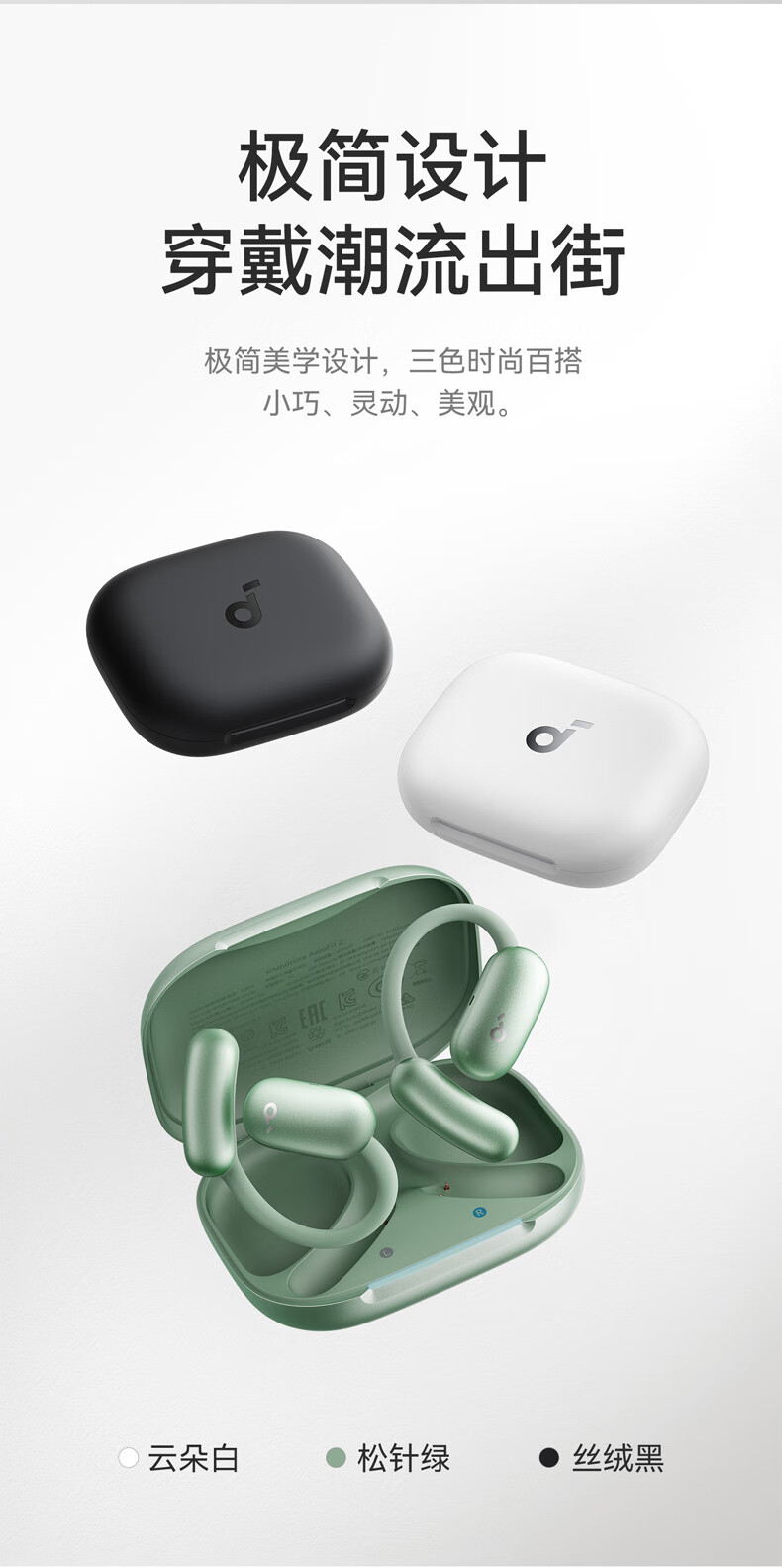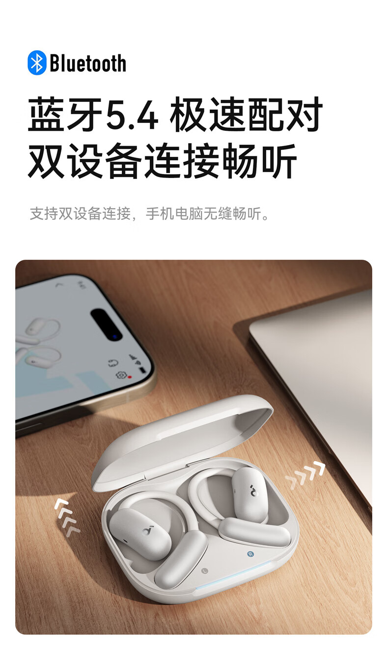 声阔(SoundCore)飞跃线Air开放式耳机挂耳式AI智能翻译不入耳无线蓝牙运动跑步适用苹果华为小米白色