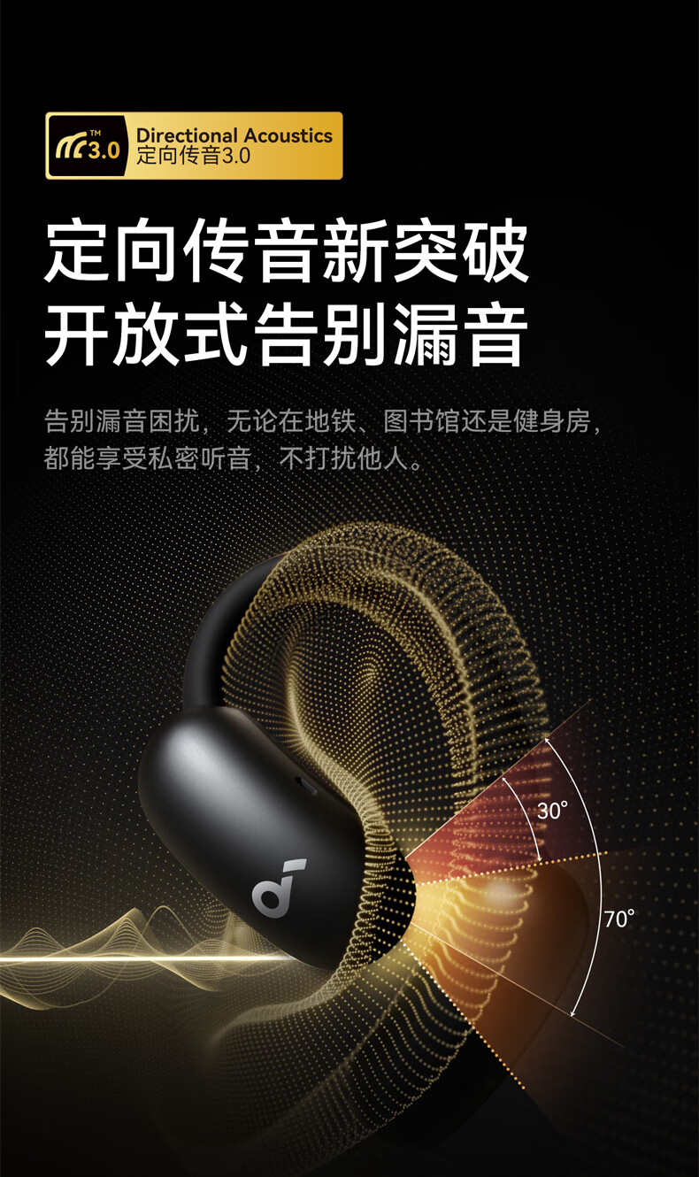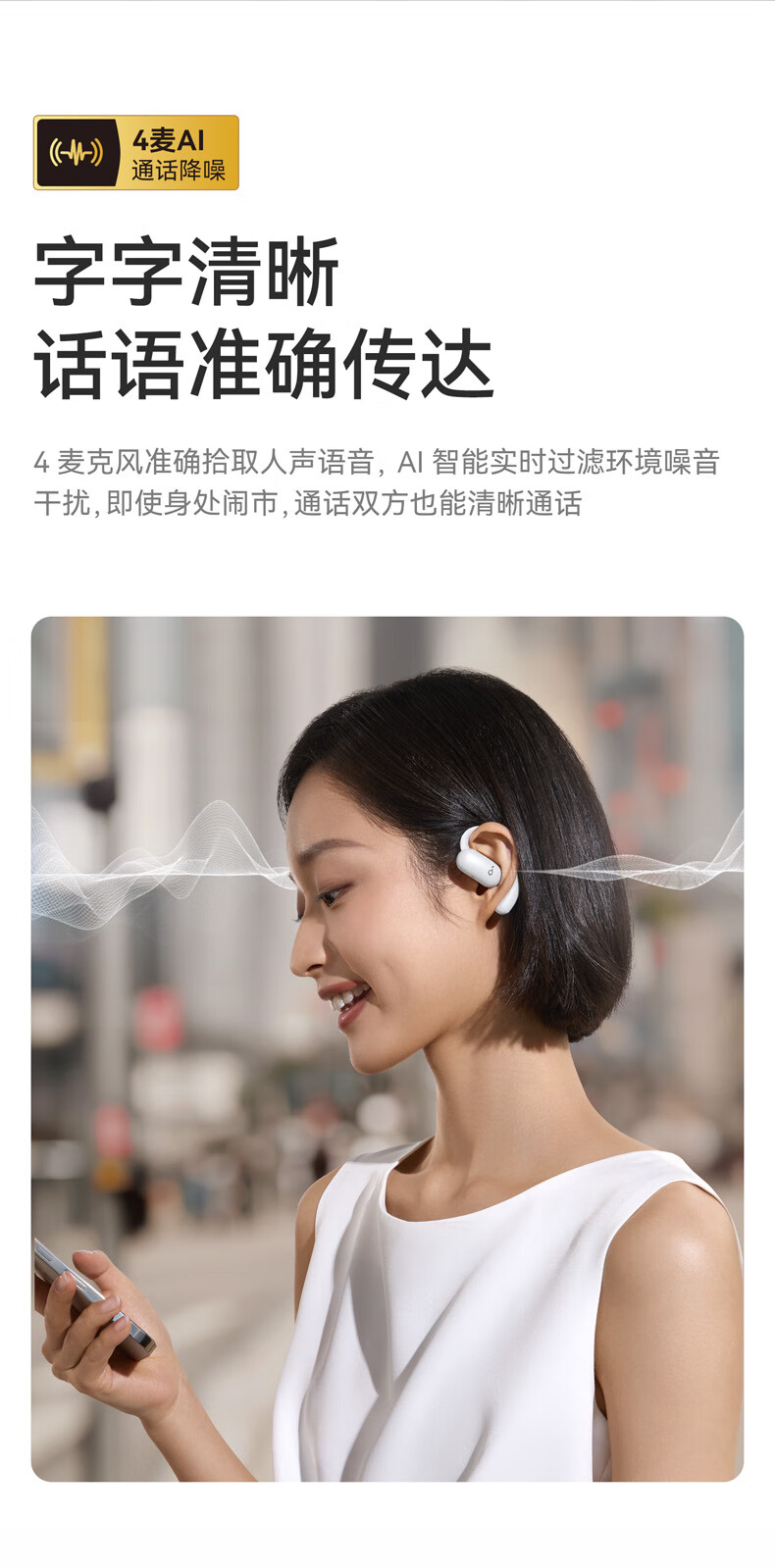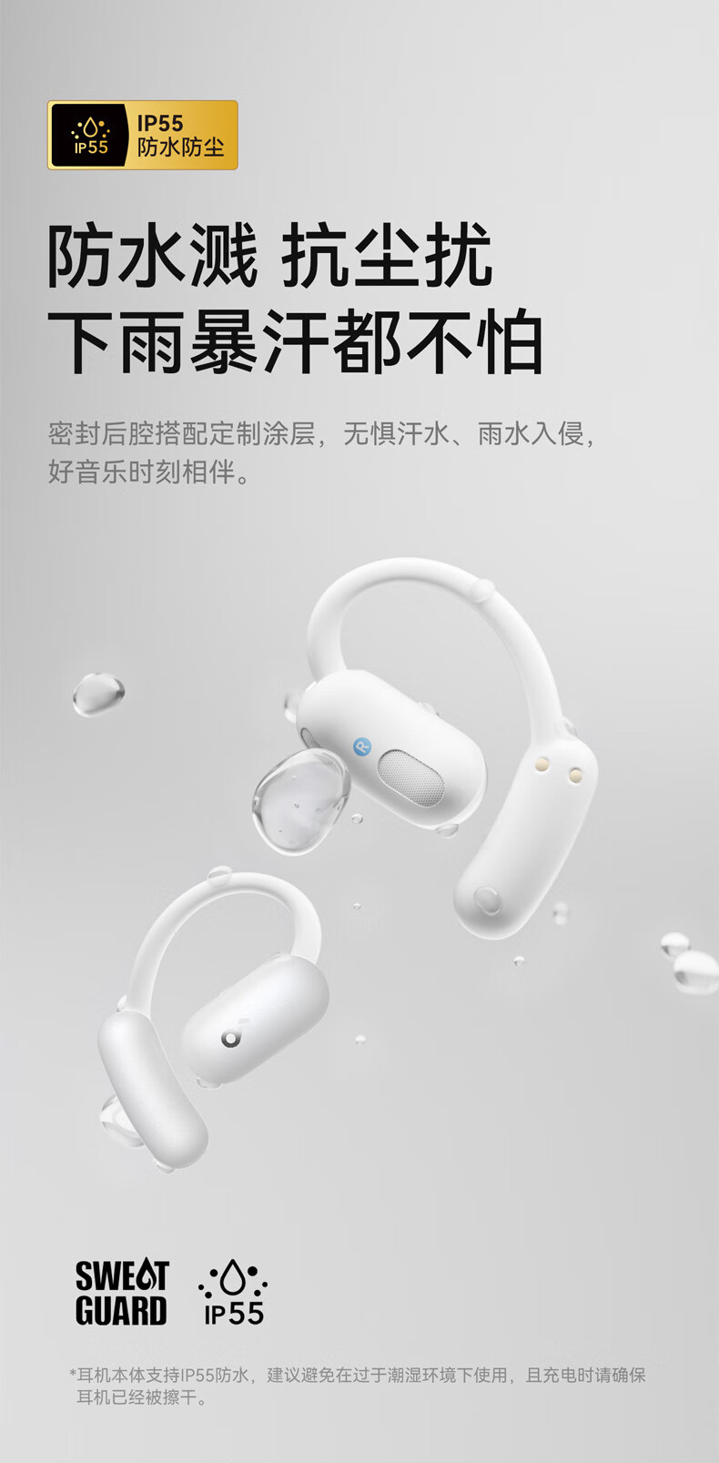 声阔(SoundCore)飞跃线Air开放式耳机挂耳式AI智能翻译不入耳无线蓝牙运动跑步适用苹果华为小米白色