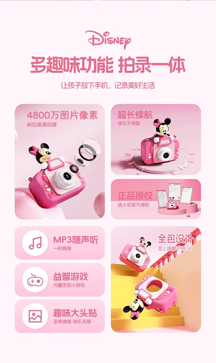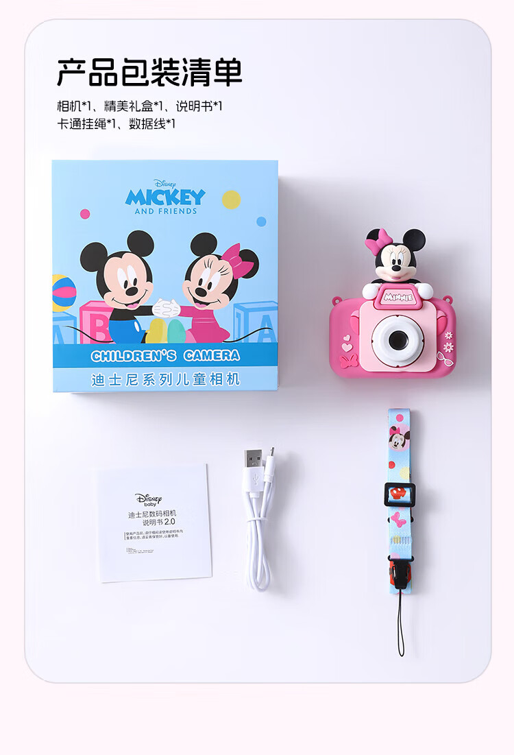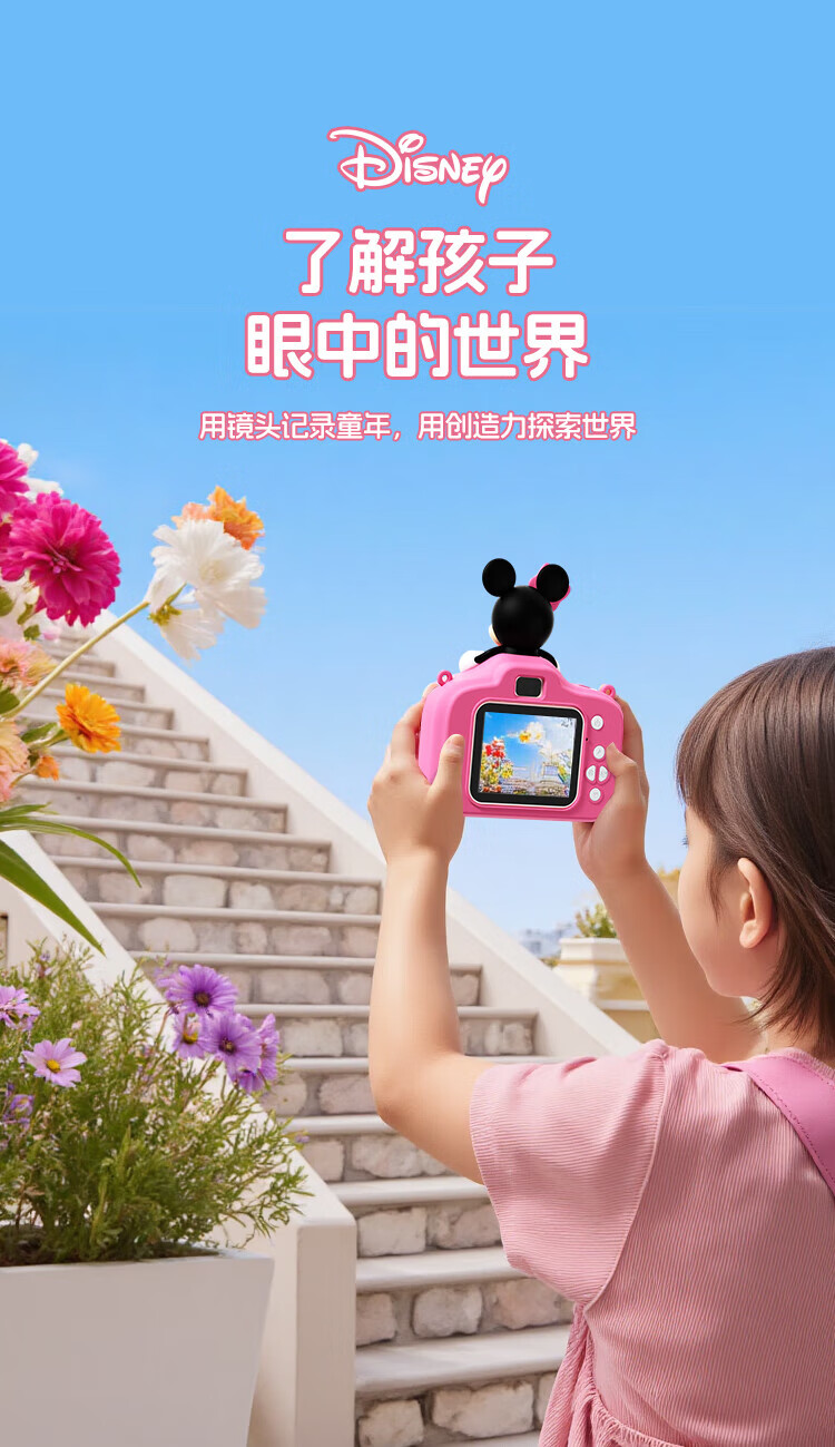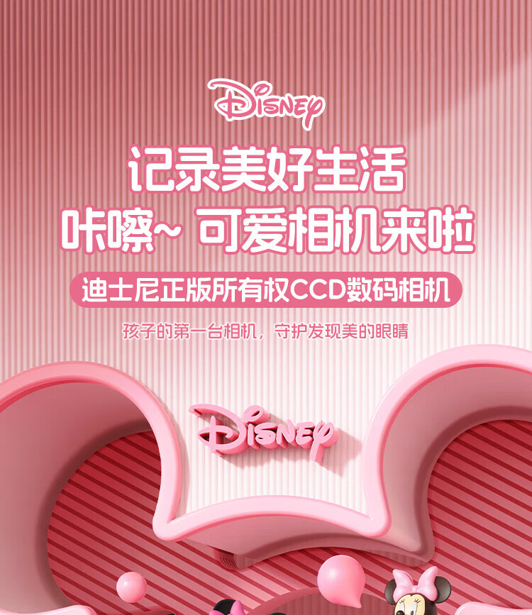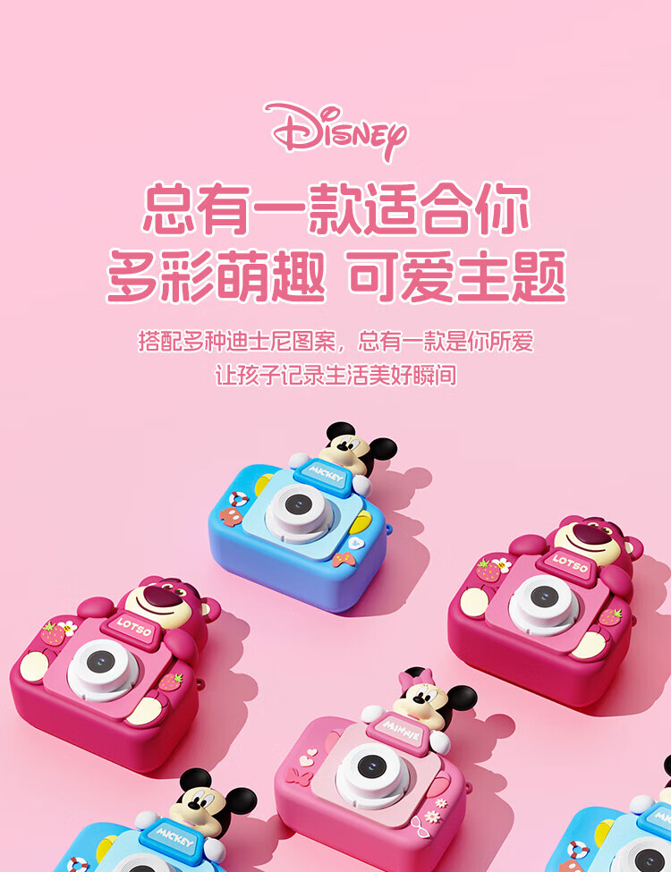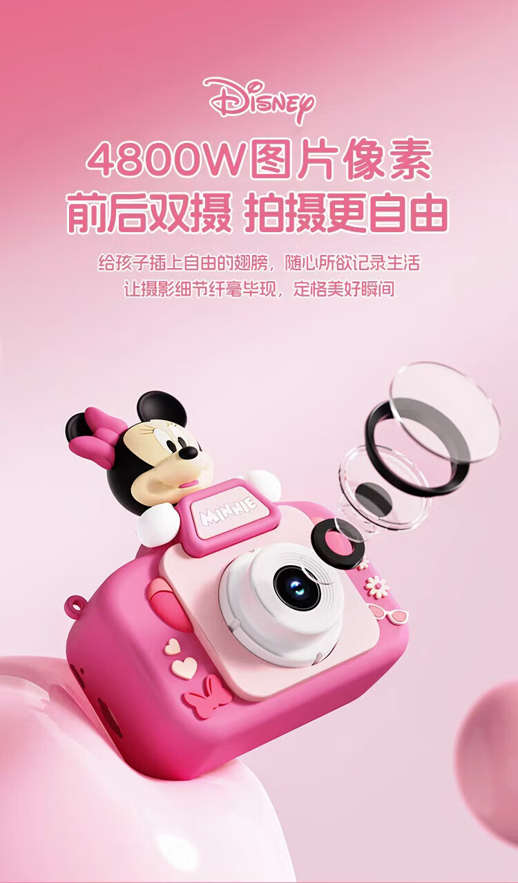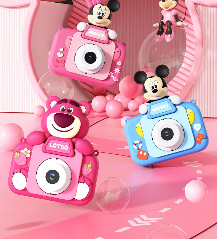 迪士尼儿童相机数码照相机拍照旅游专用手持便携ccd平替前后录像玩具生日男女孩礼盒礼物 X12草莓熊