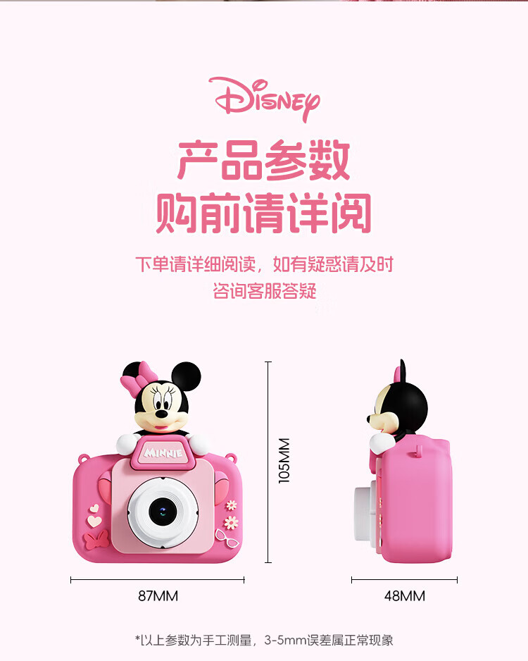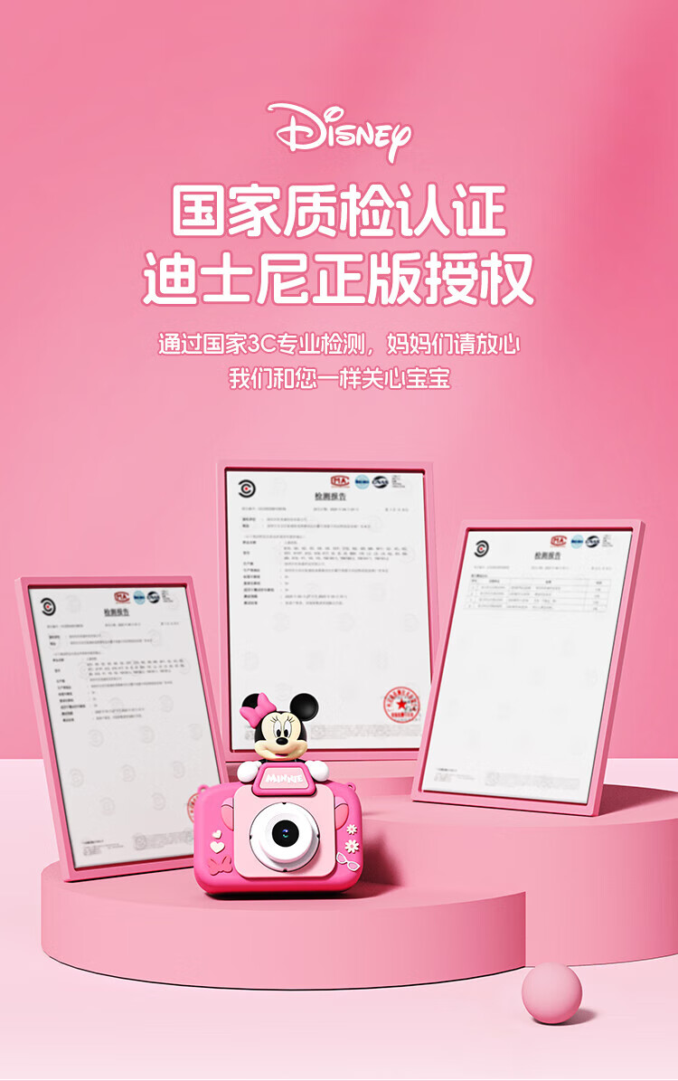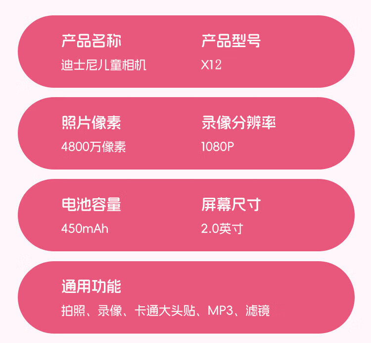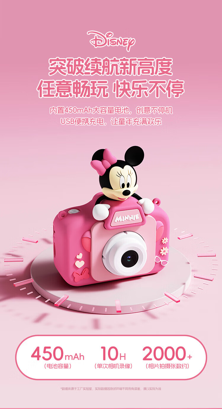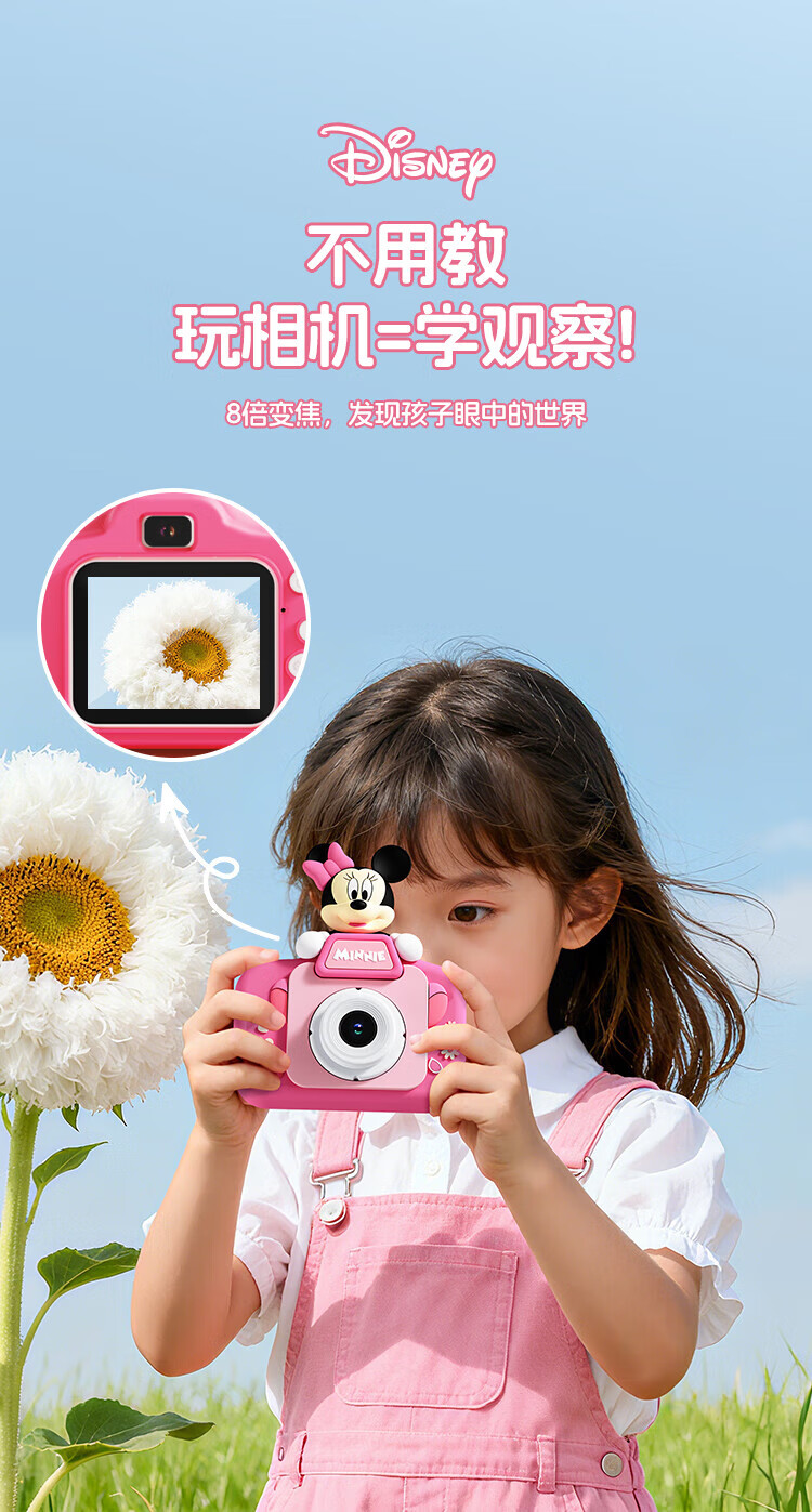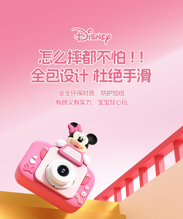 迪士尼儿童相机数码照相机拍照旅游专用手持便携ccd平替前后录像玩具生日男女孩礼盒礼物 X12草莓熊