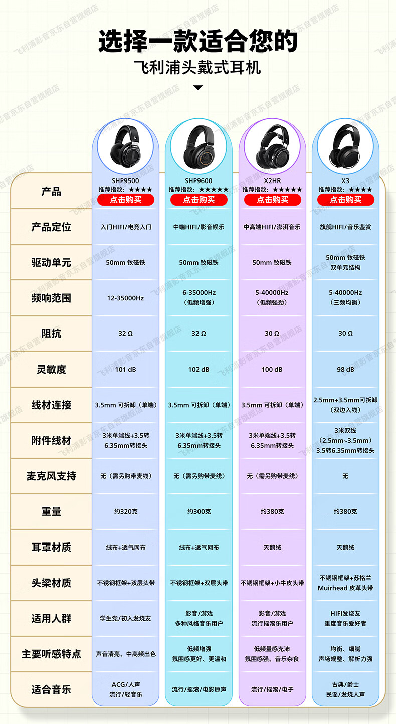 飞利浦(PHILIPS)头戴式有线耳机旗舰舒适HiFi高保真音乐游戏电竞电脑安卓苹果华为小米手机直推双11双十一X2HR