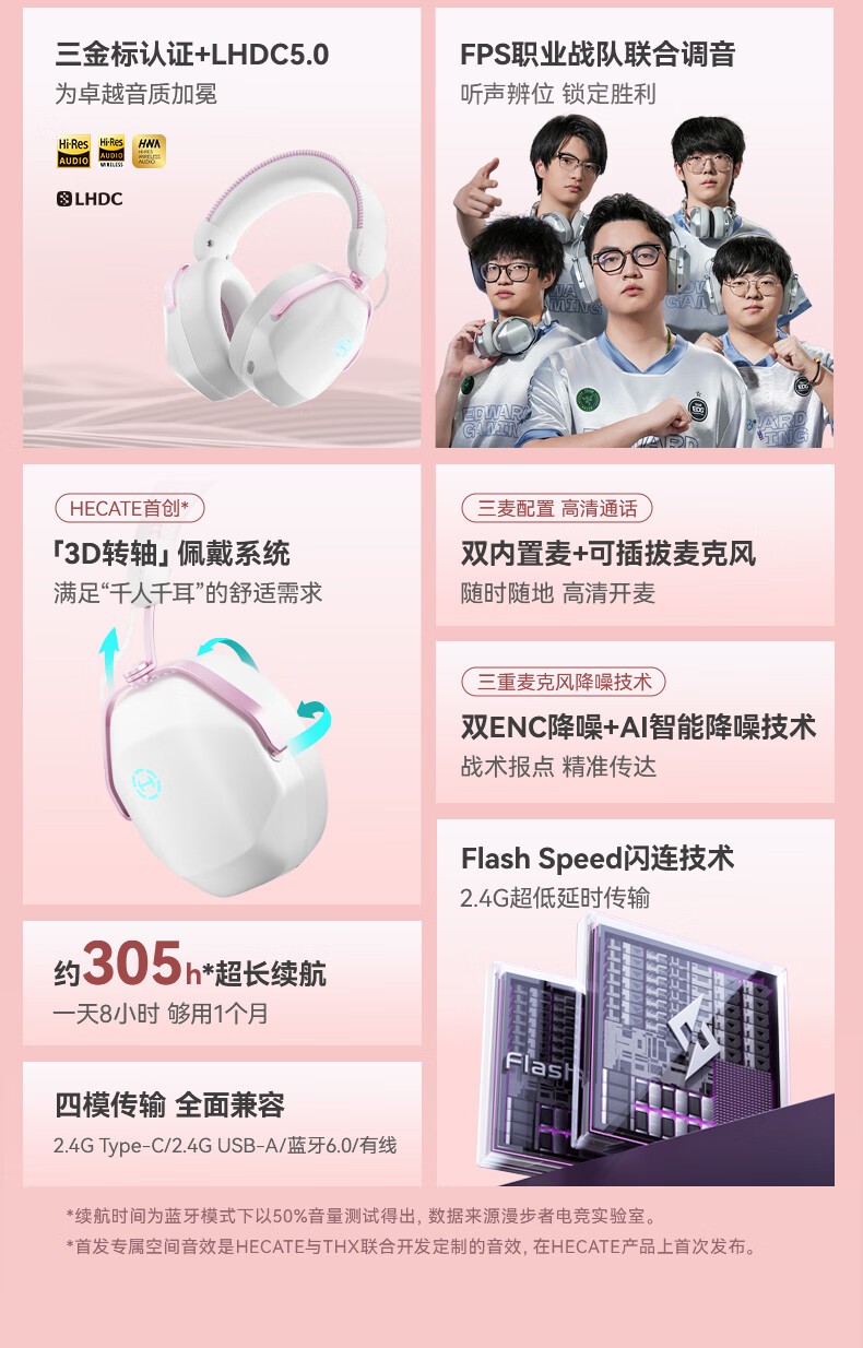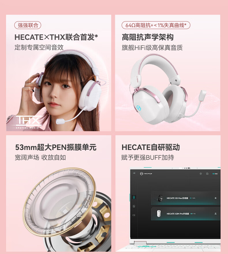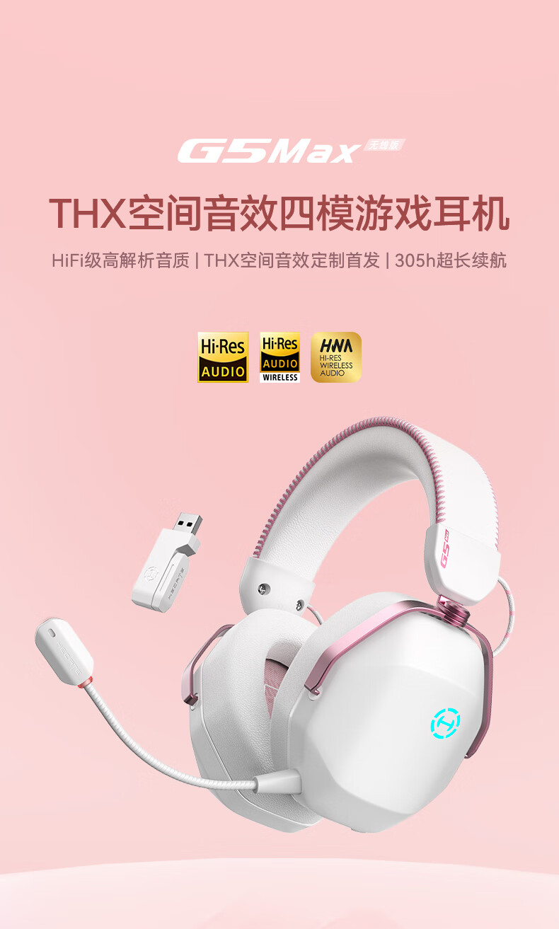 漫步者(EDIFIER)HECATE G5Max无线版2.4G有线蓝牙四模THX音效头戴式耳机电竞游戏电脑无线专用三角洲FPS吃鸡雾光粉