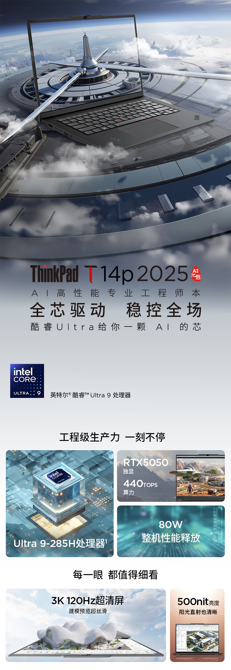 ThinkPad【国家补贴20%】T14p AIPC酷睿Ultra9 14.5英寸高性能工程师笔记本电脑32G 1TB RTX5050商务办公本