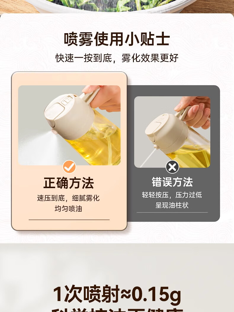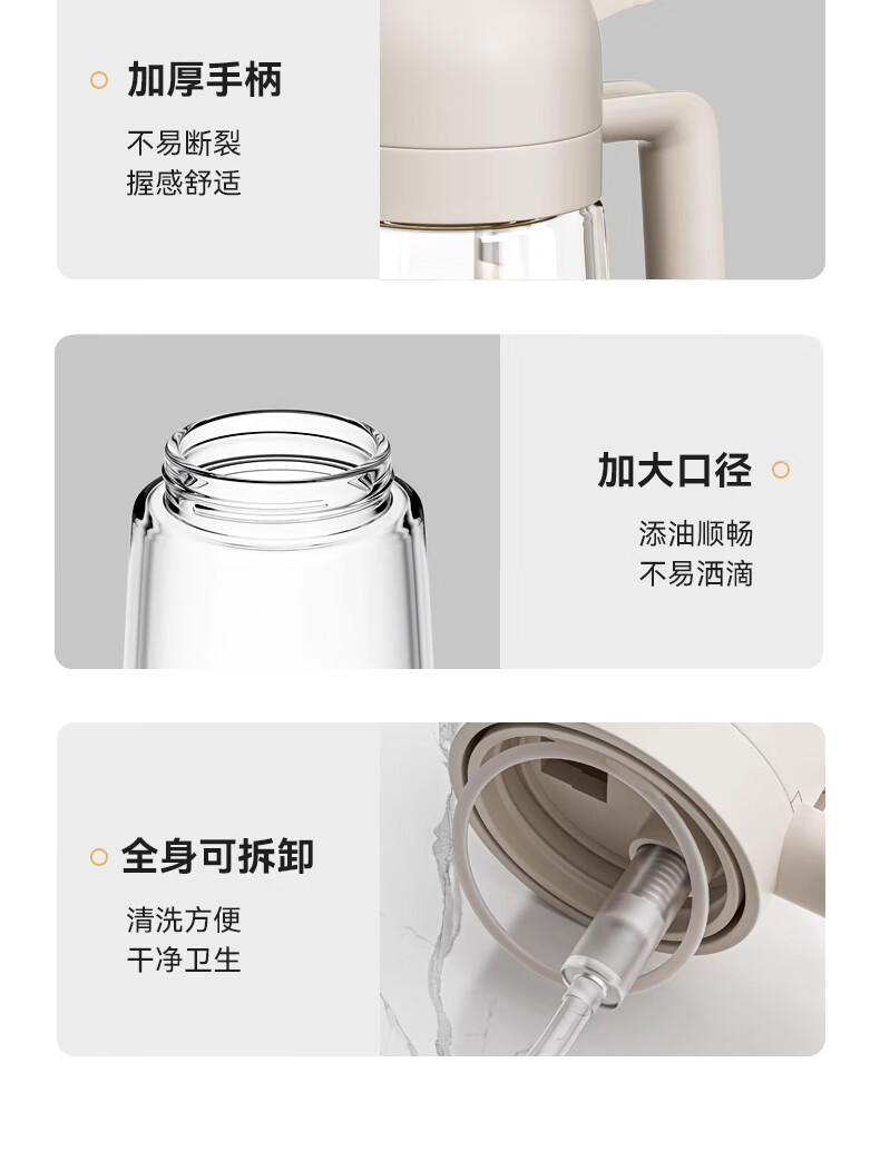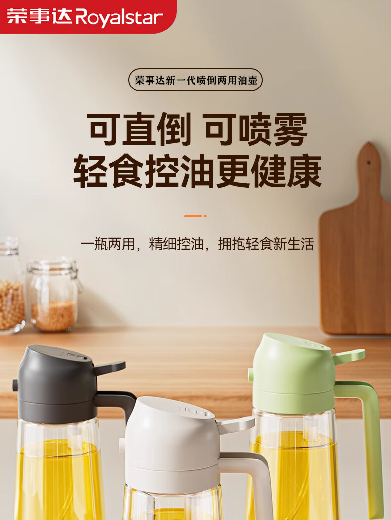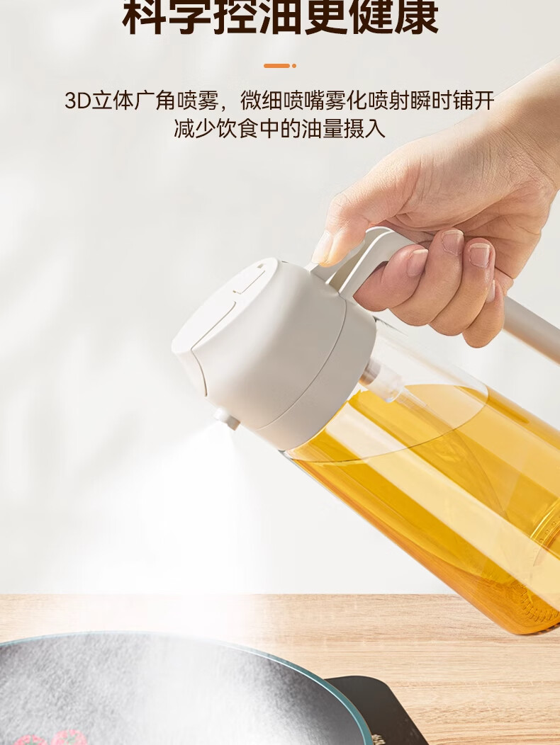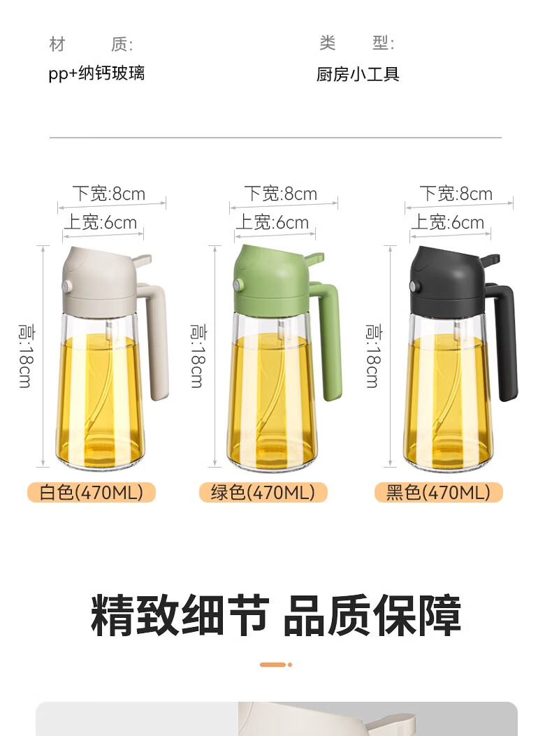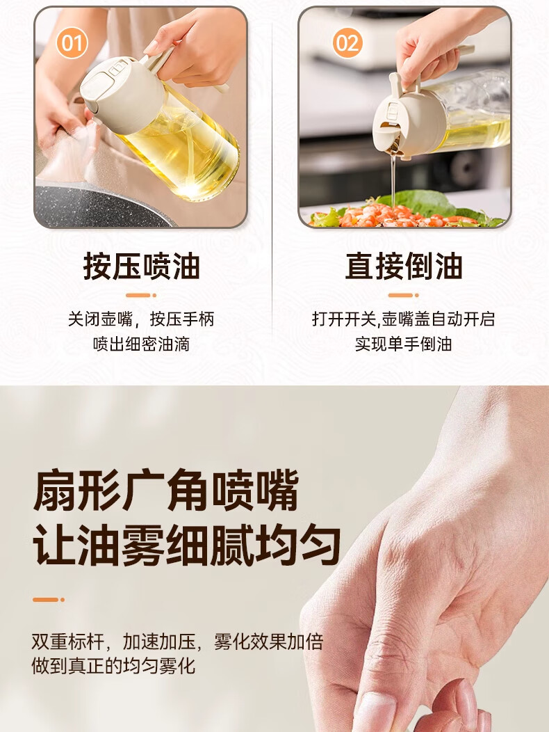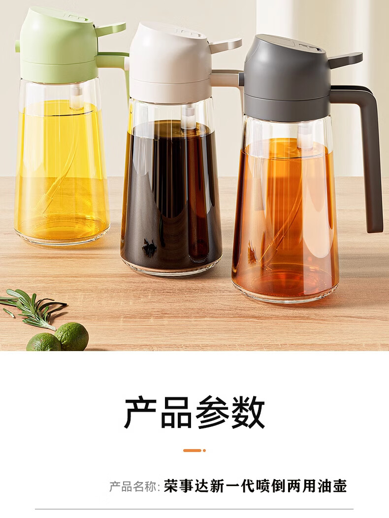 荣事达喷油壶厨房家用防漏油罐空气炸锅雾化喷倒两用食用油玻璃壶 白色-1只装-喷倒一体-470毫升;