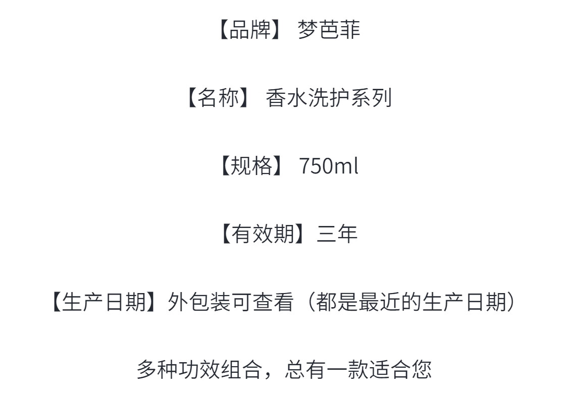 梦芭菲香水洗发水 男女洗发露解决干枯柔顺清爽 清爽型洗发乳 750ml