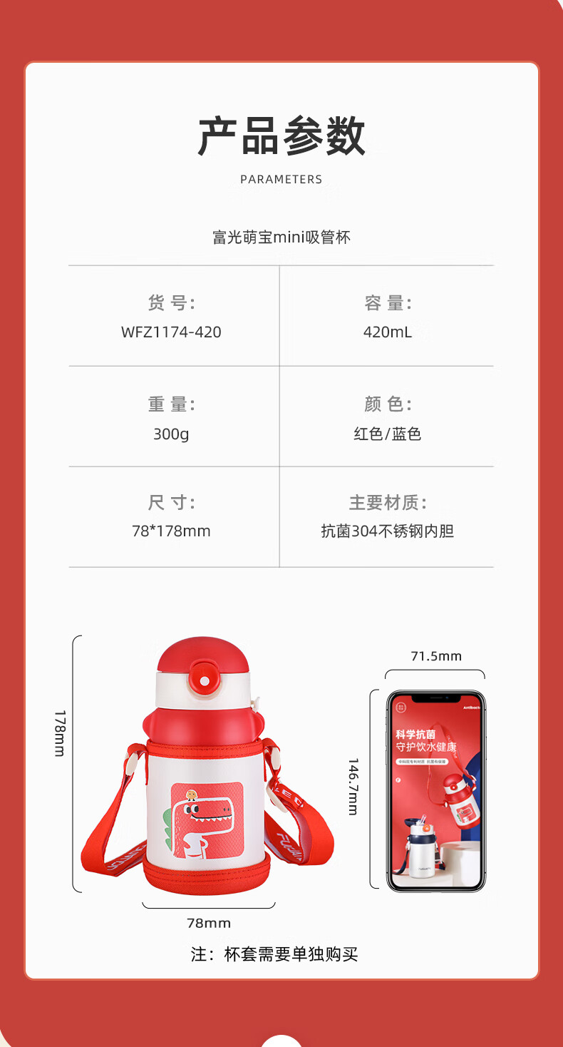 富光儿童保温杯壶抗菌304不锈钢大容量便携水杯男女小学生宝宝水杯子